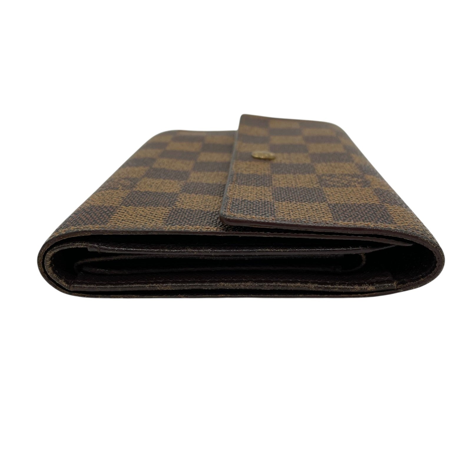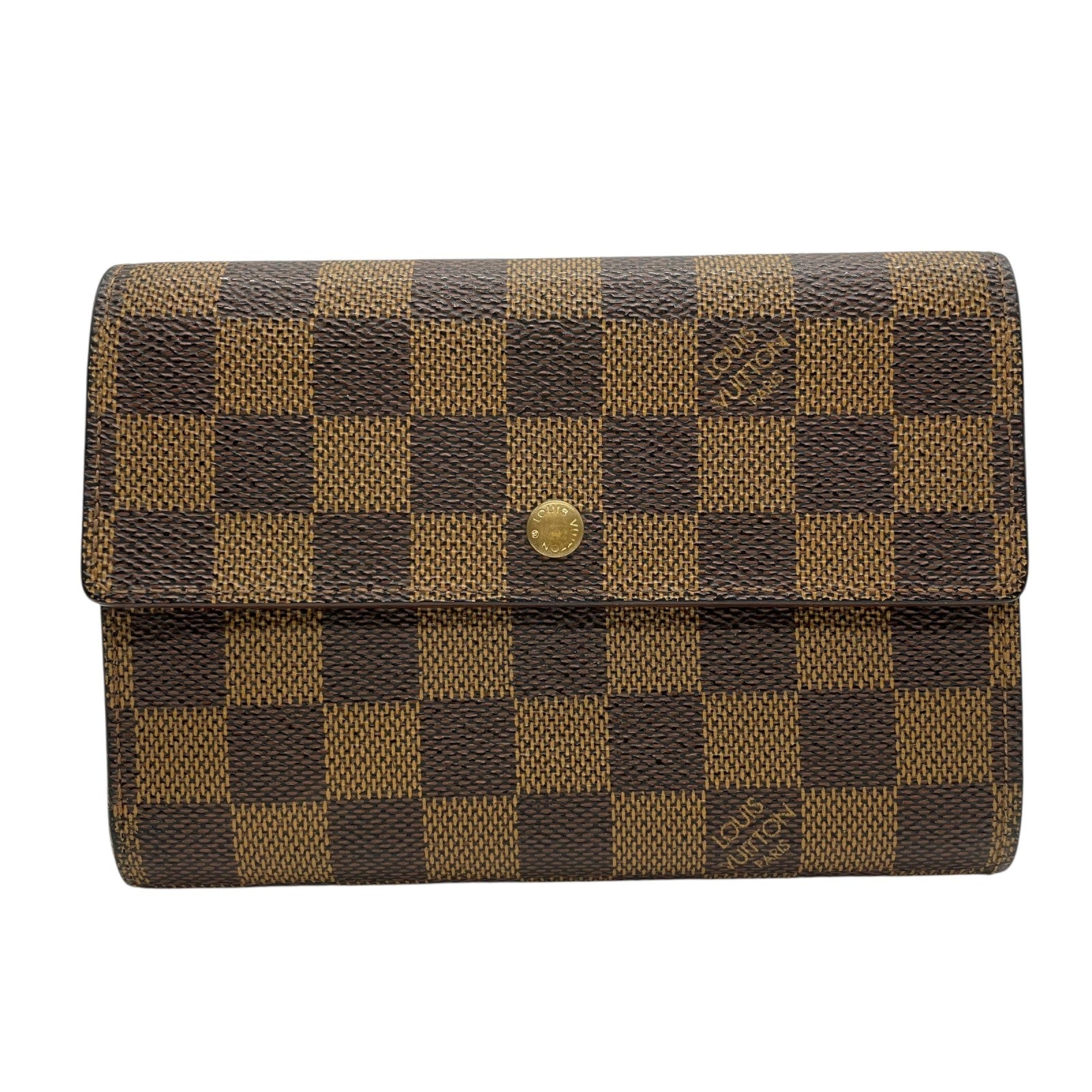 LOUIS VUITTON ルイヴィトン ダミエ エベヌ ポルト トレゾール エテュイ パピエ 三つ折り財布 N61202 茶 ブラウン PVC レザー ゴールド金具 メンズ レディース W3