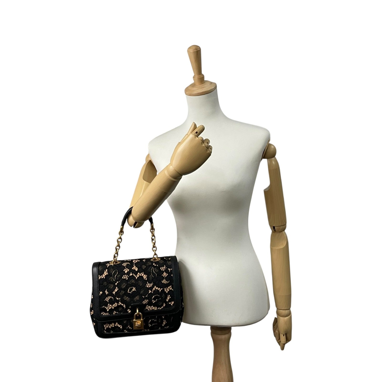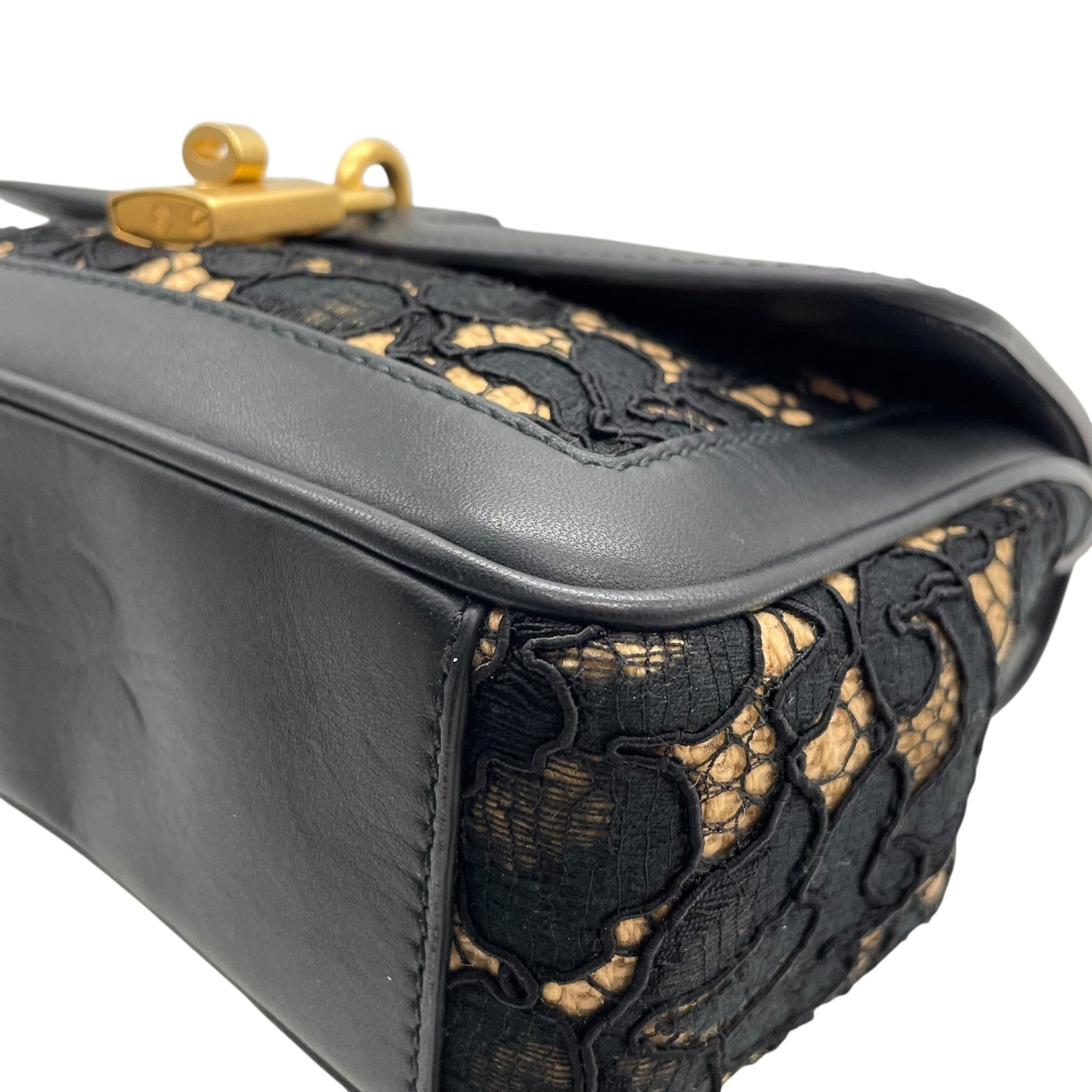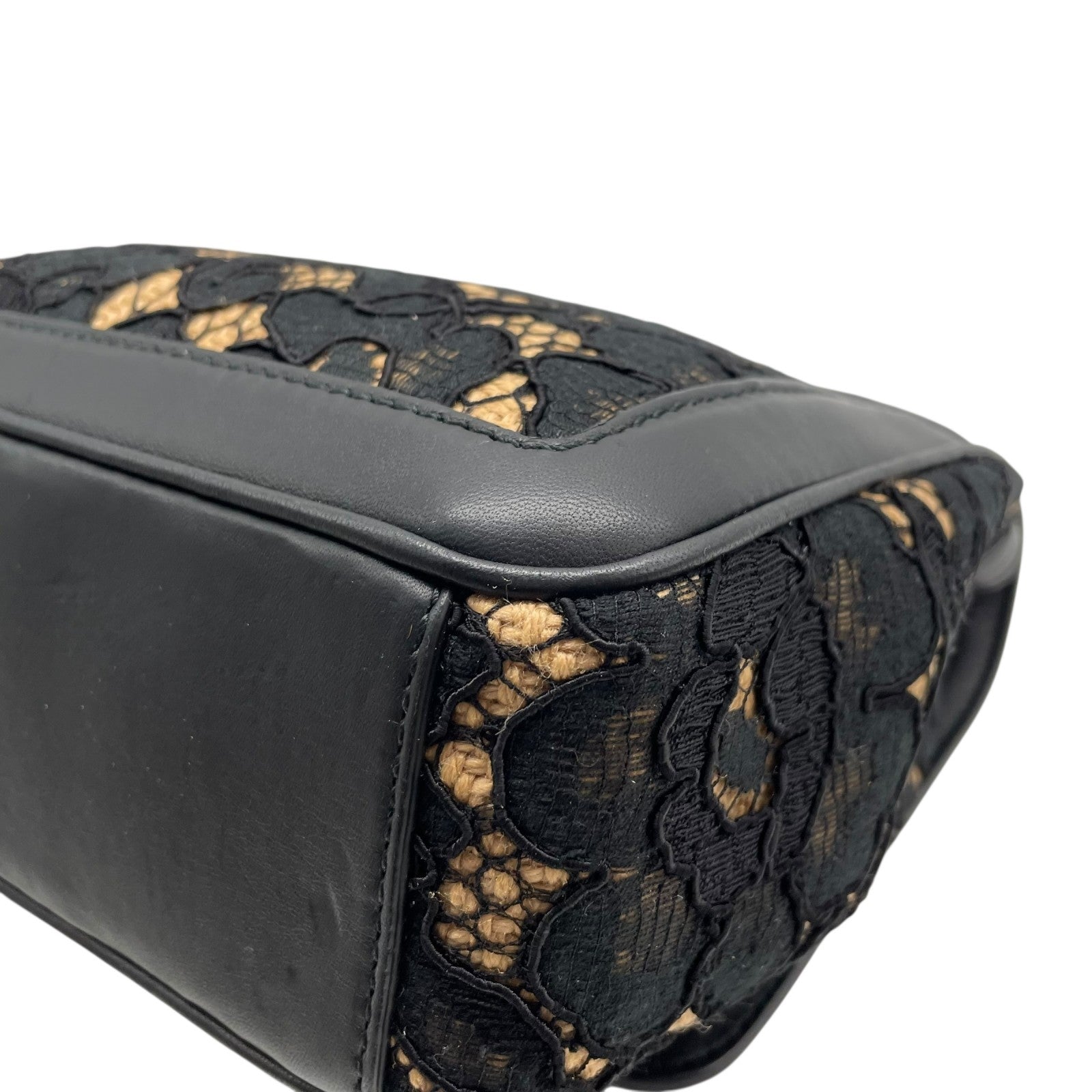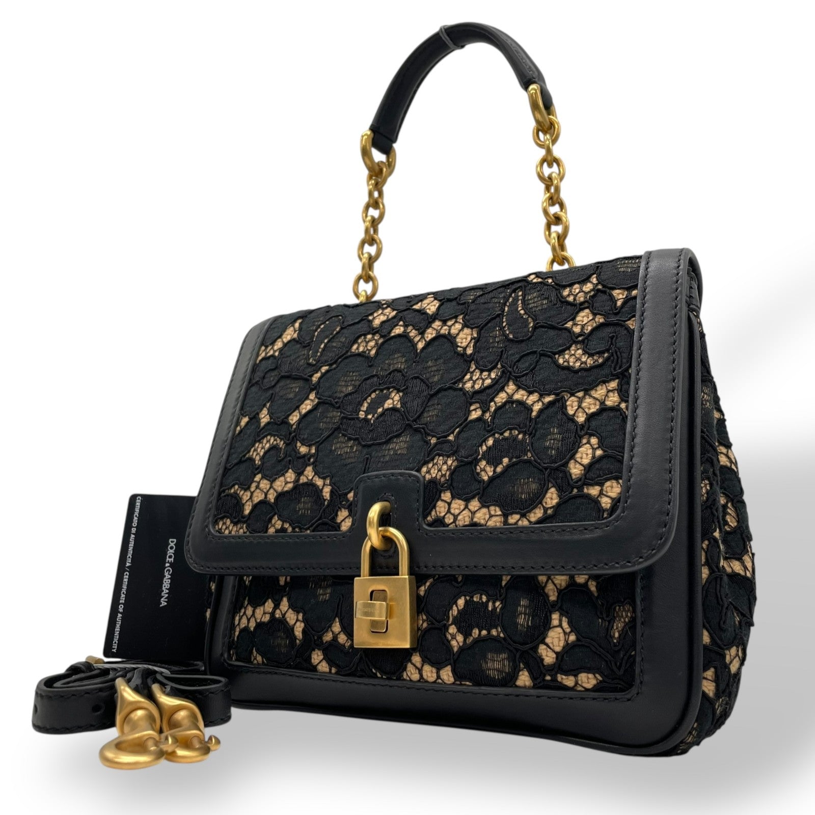 極美品 DOLCE&GABBANA ドルチェ&ガッバーナ ドルガバ Miss Dolce 2WAY ハンドバッグ ショルダーバッグ レース レザー ベージュ ブラック 黒 レディース D&G ゴールド金具 パドロック 斜め掛け可 内側レオパード C