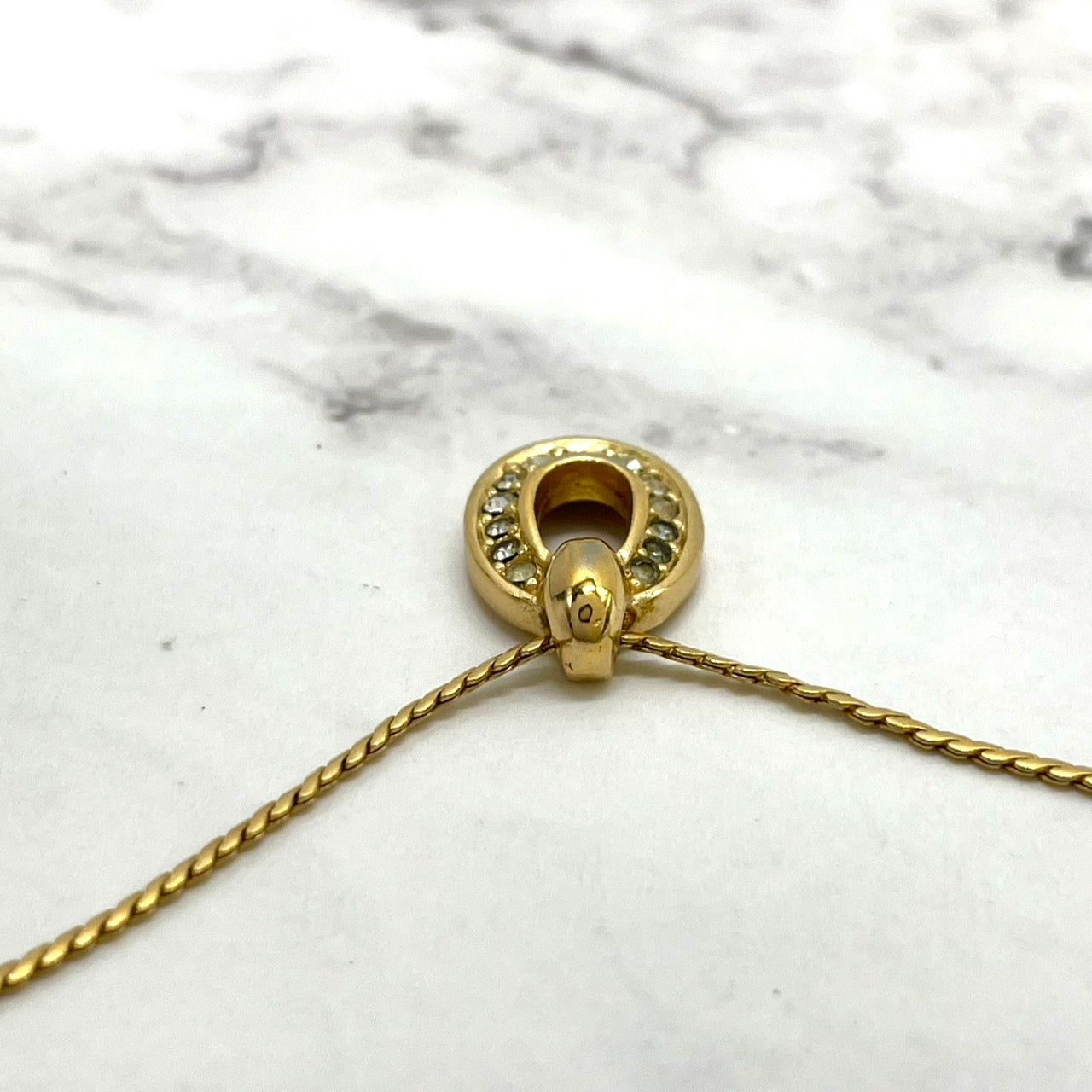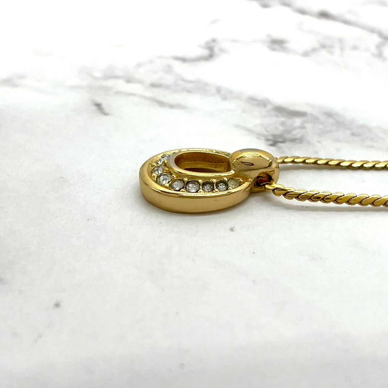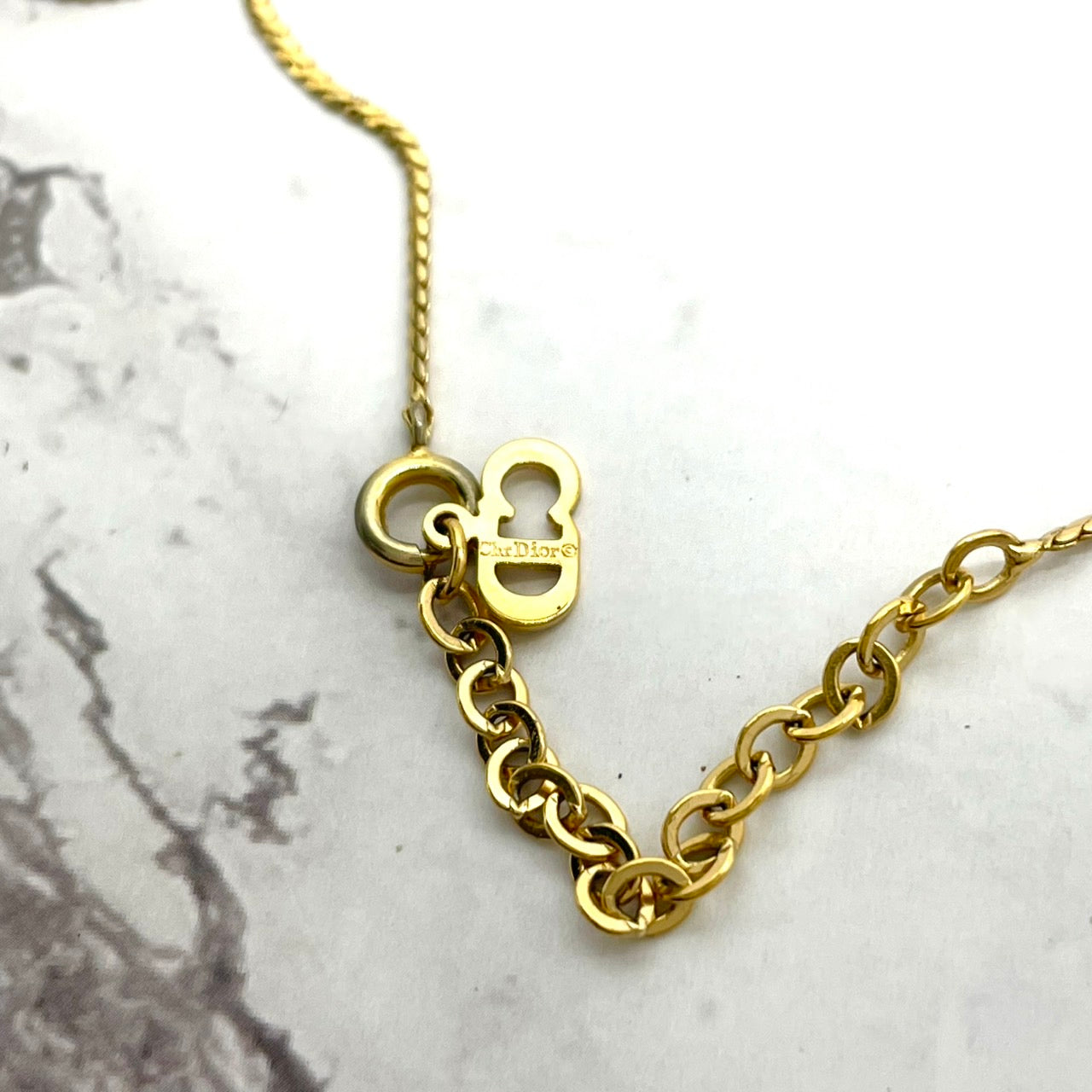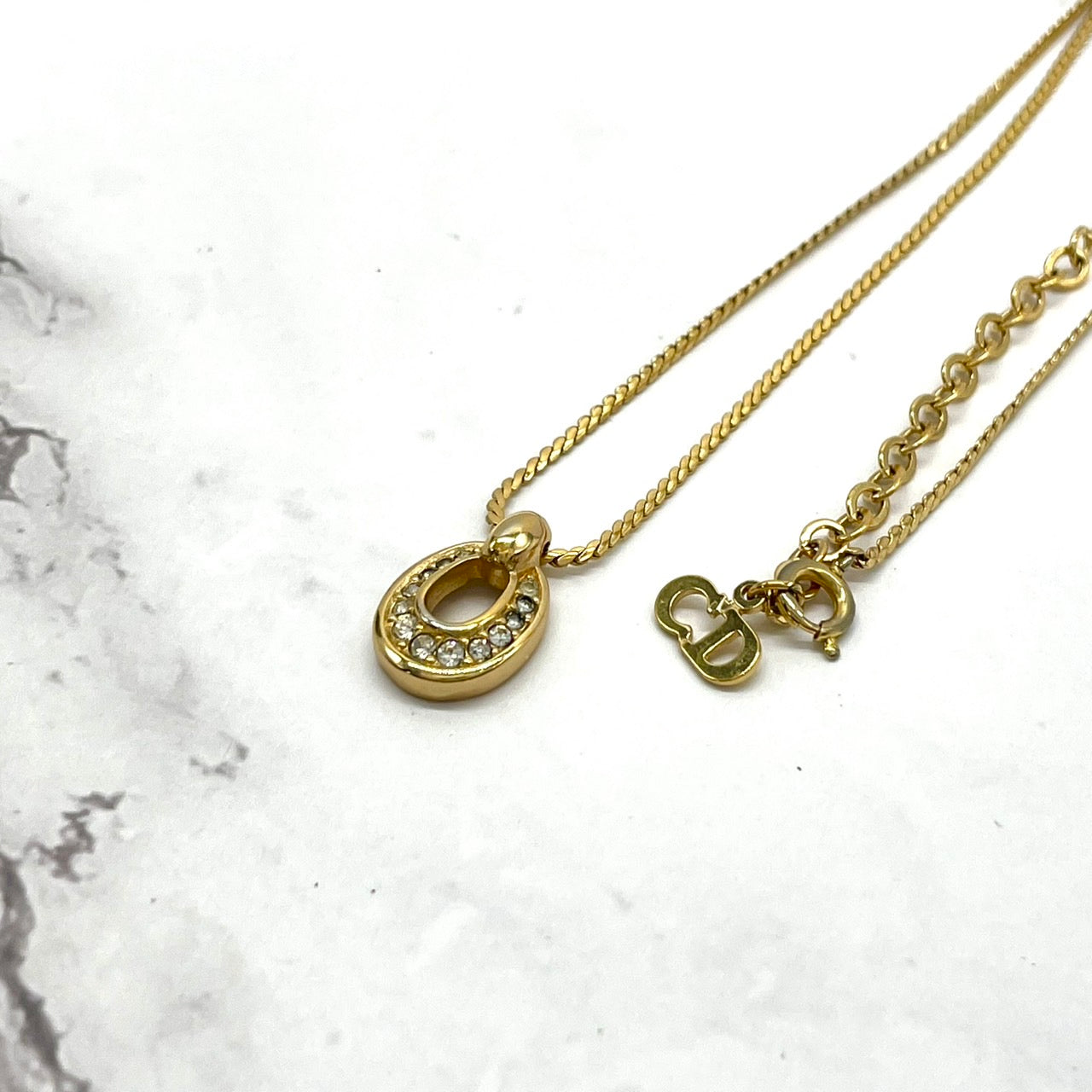 美品 Christian Dior クリスチャンディオール ヴィンテージ ネックレス ラインストーン ペンダント ゴールドカラー アジャスター CDロゴ ジュエリー アクセサリー I1