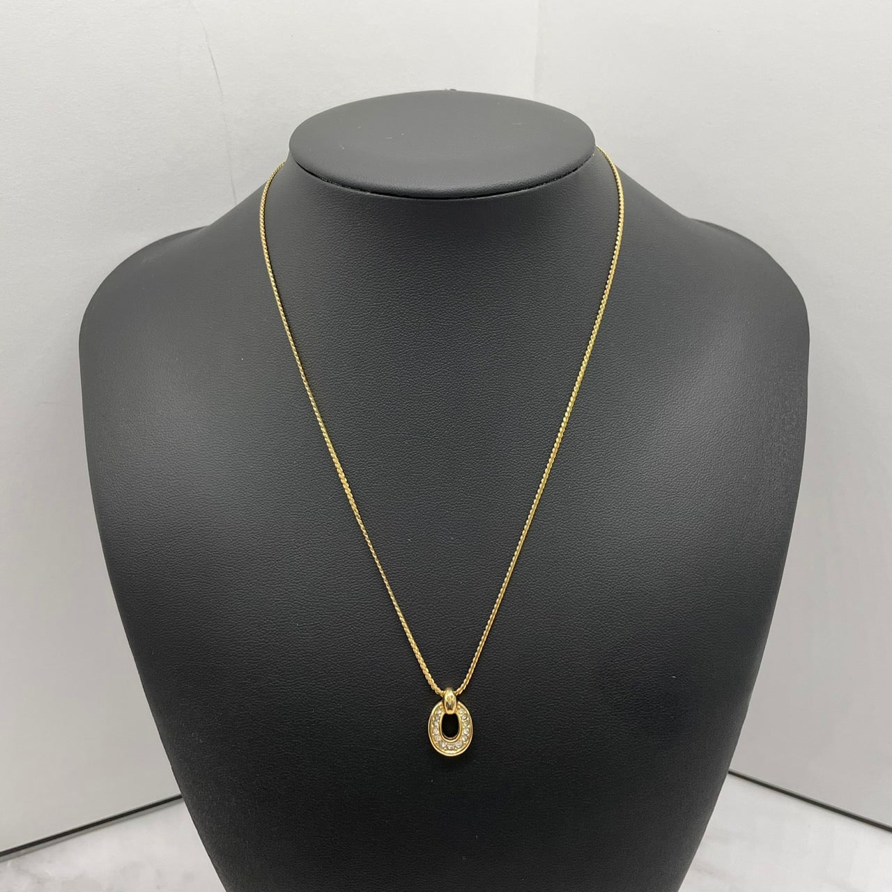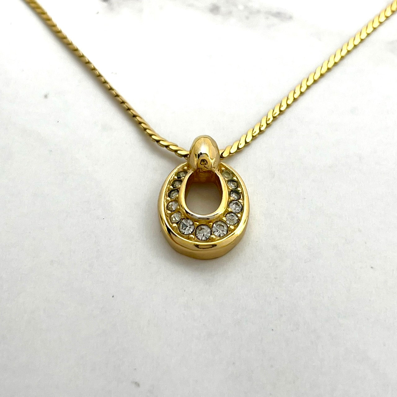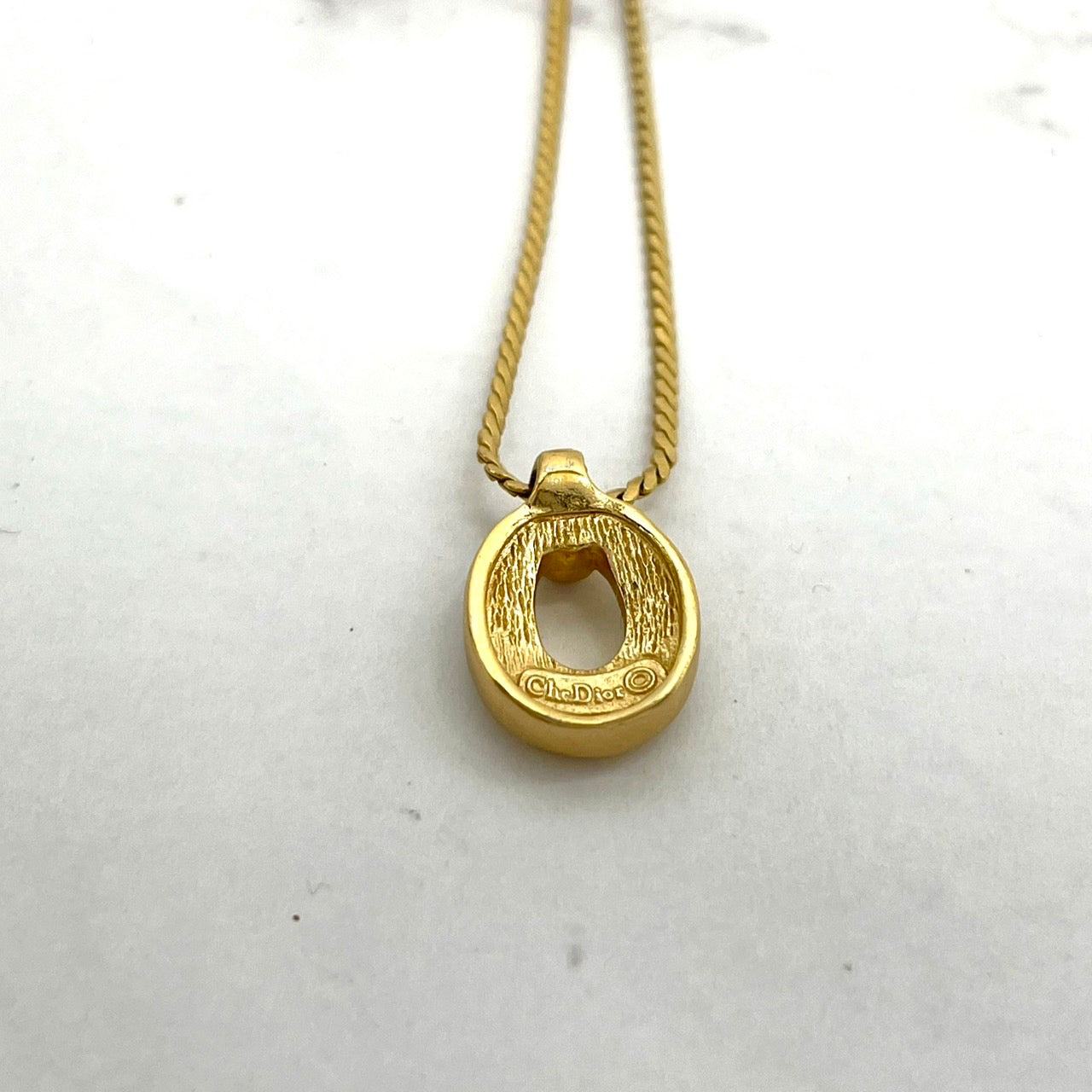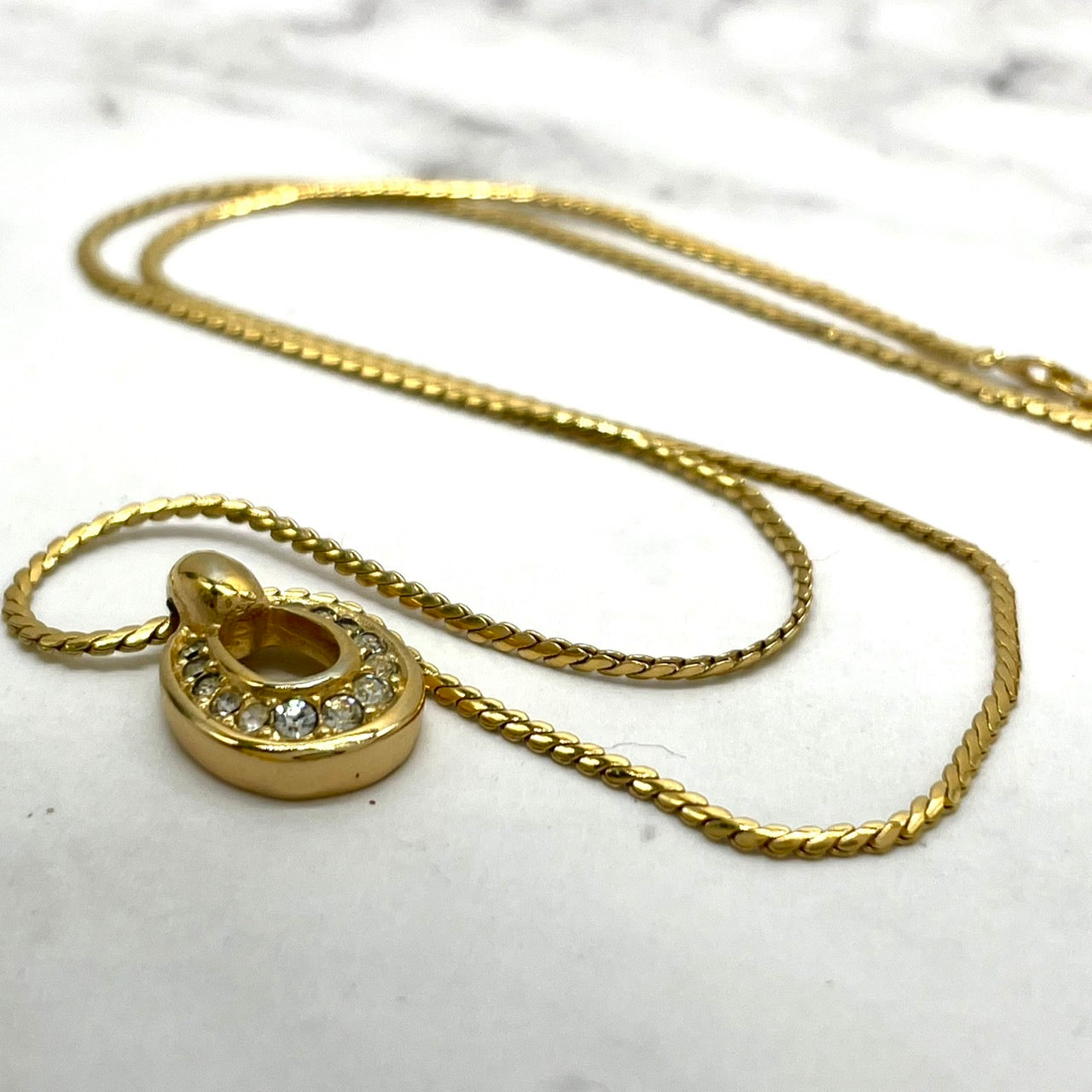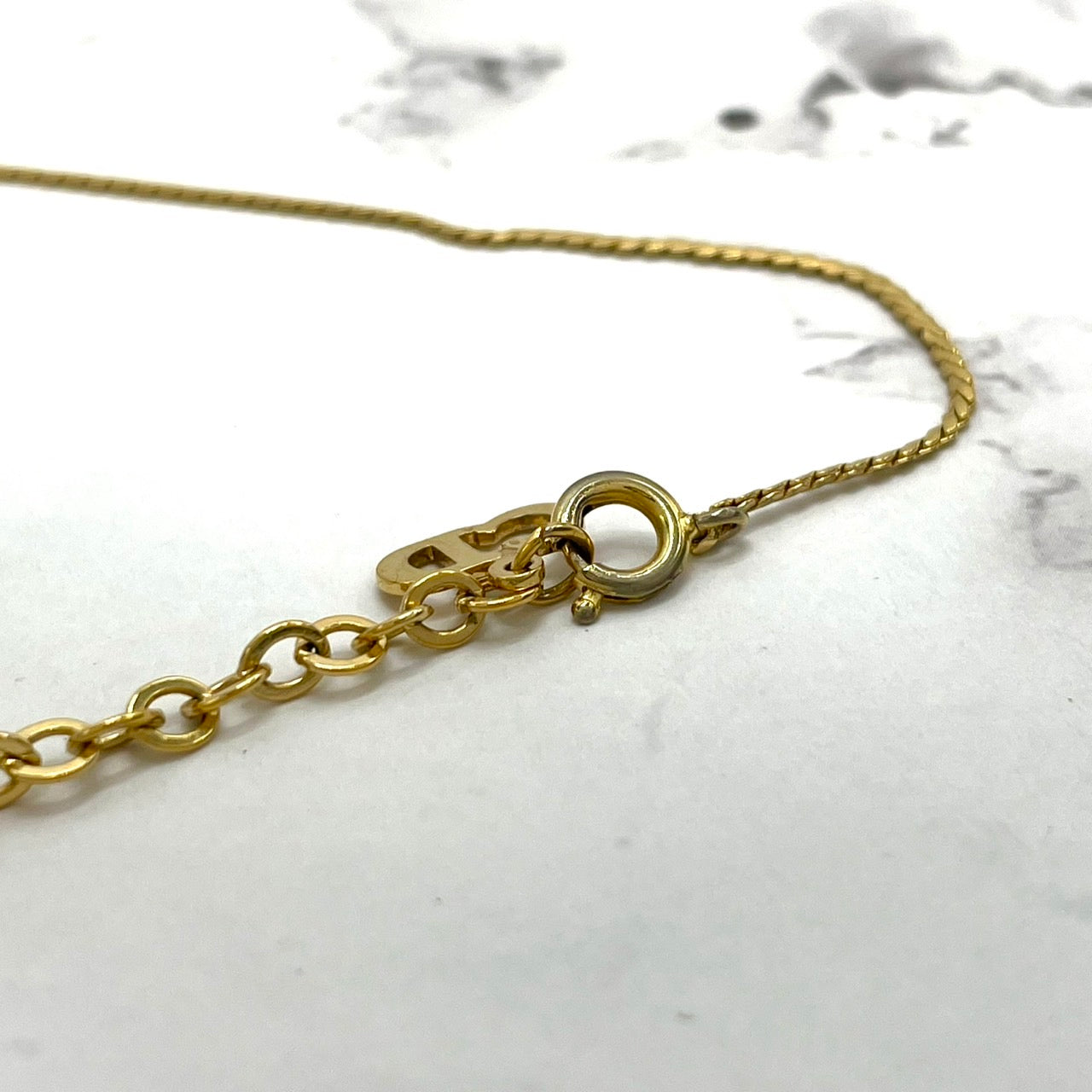 美品 Christian Dior クリスチャンディオール ヴィンテージ ネックレス ラインストーン ペンダント ゴールドカラー アジャスター CDロゴ ジュエリー アクセサリー I1