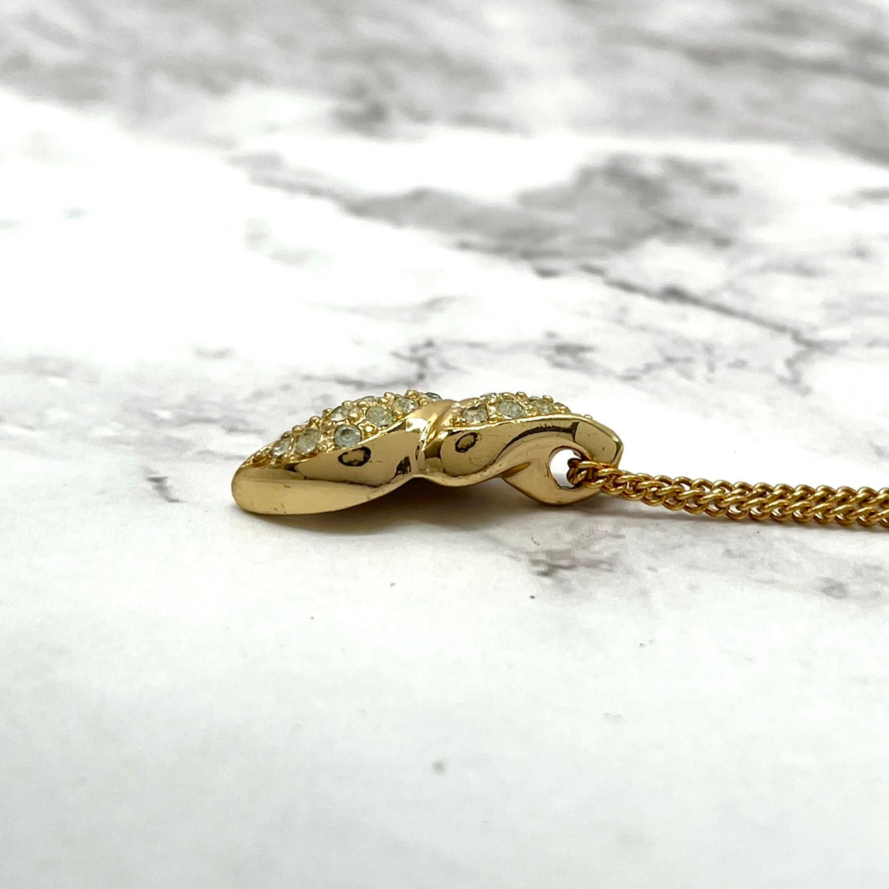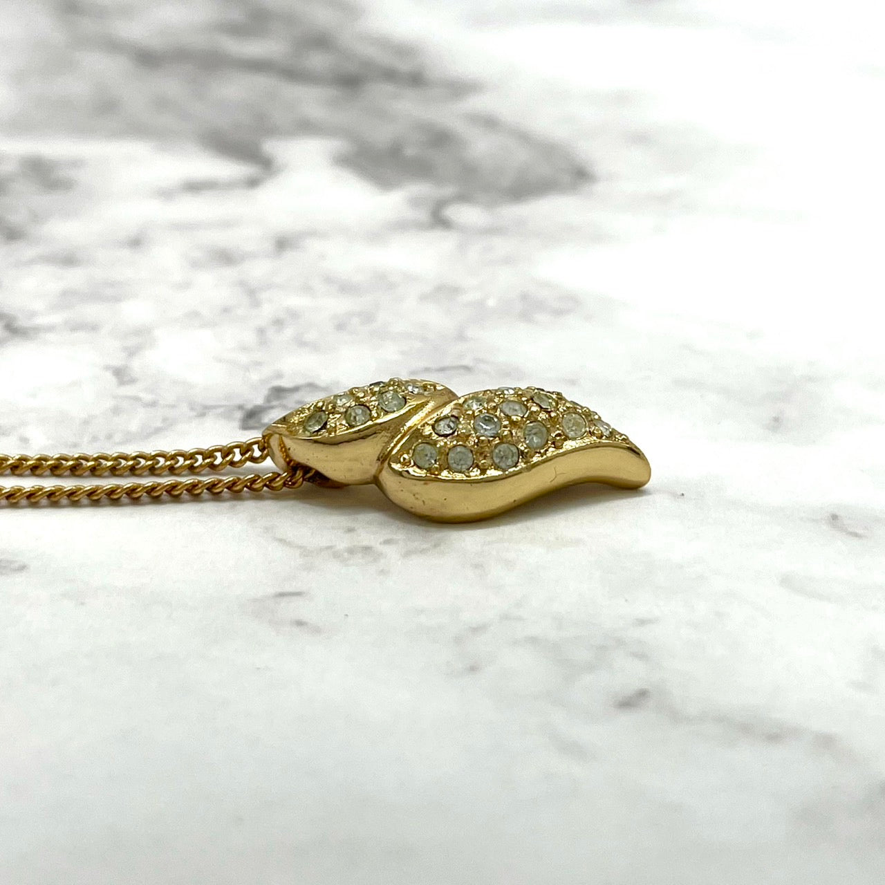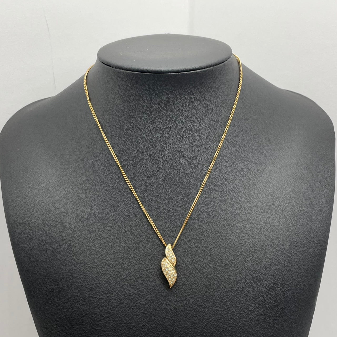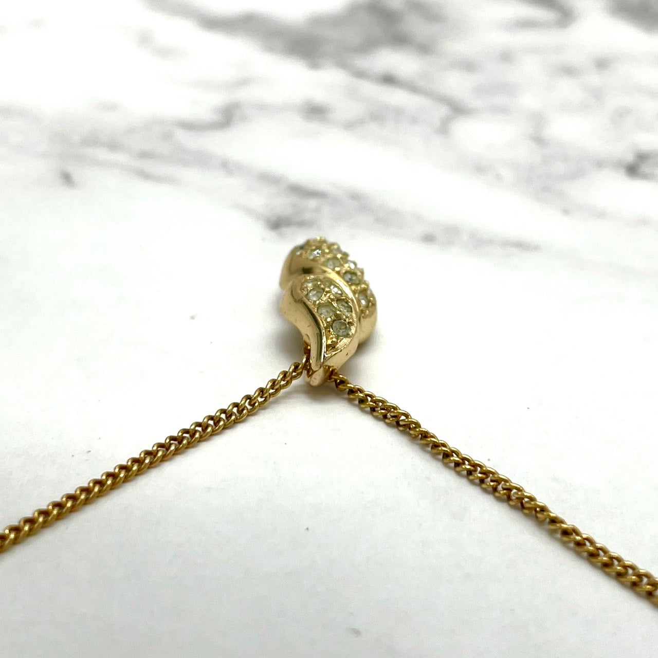 美品 Christian Dior クリスチャンディオール ヴィンテージ ネックレス ラインストーン ツイストモチーフ ペンダント ゴールドカラー CDロゴ ジュエリー アクセサリー レディース I1