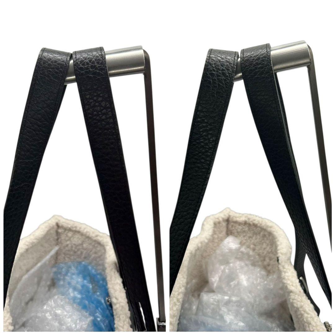 美品 フルラ トートバッグ 黒 ボア A4収納 レザー FURLA T6 本革 ハンドバッグ ブラック ロゴ ムートン 肩掛け可 ワンショルダー 自立可