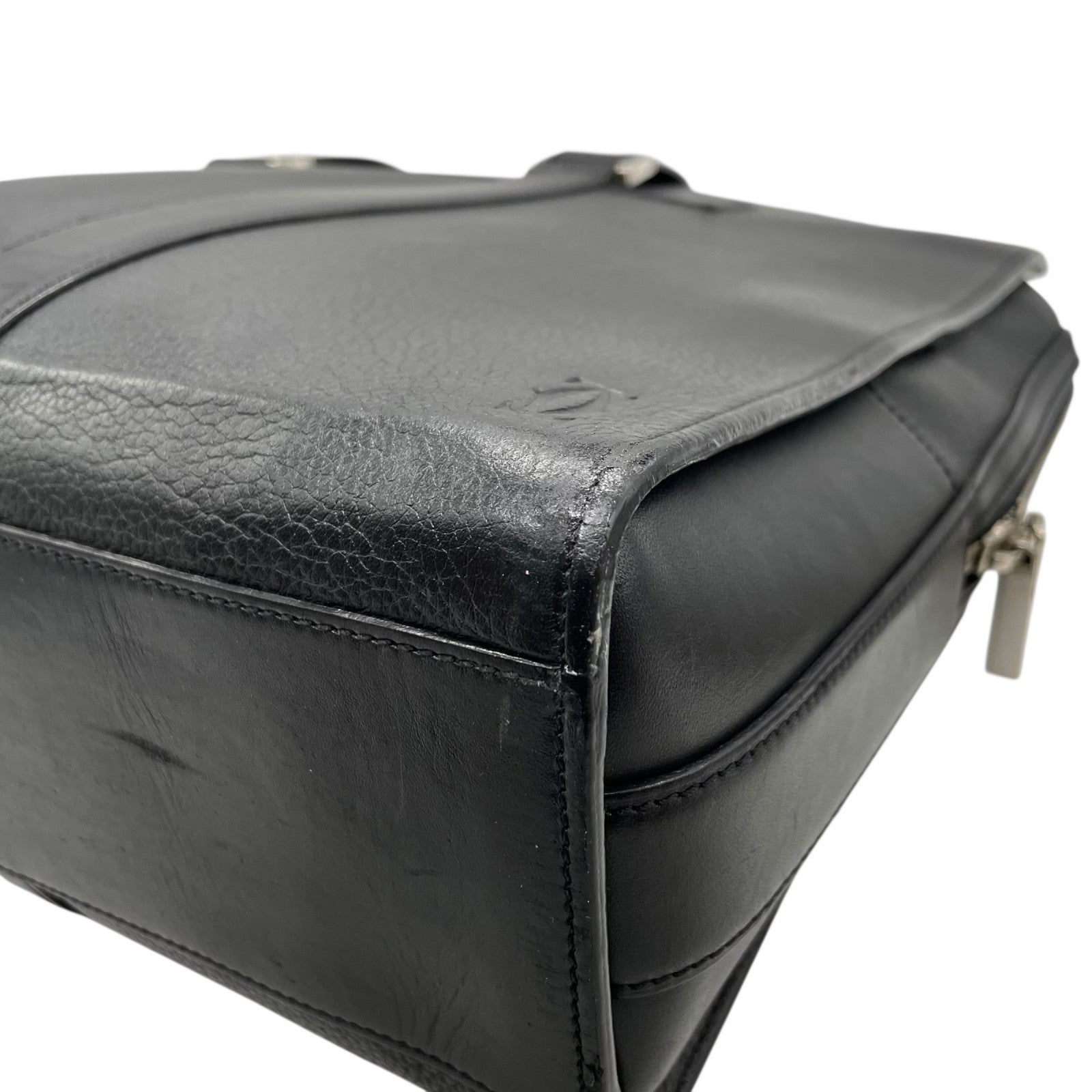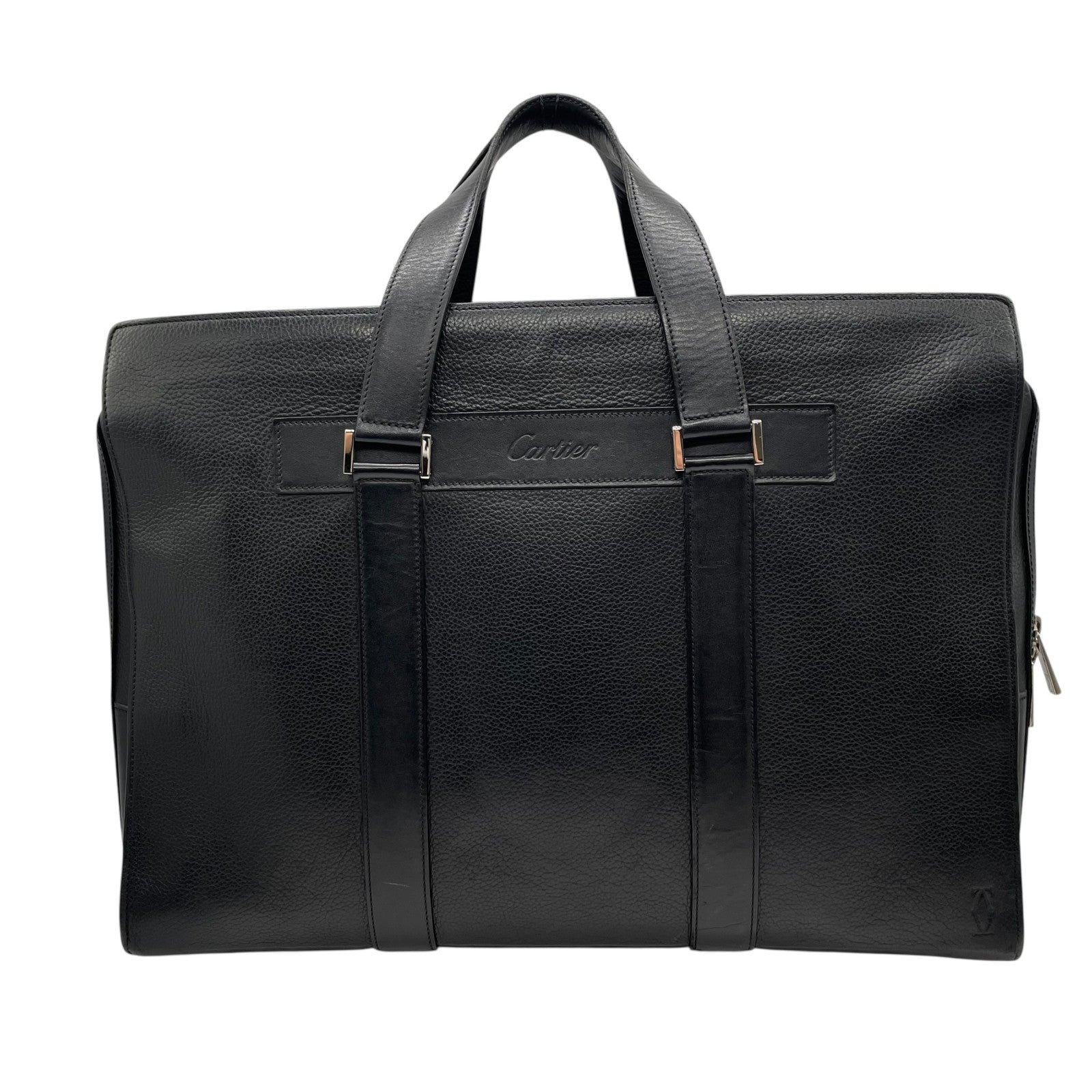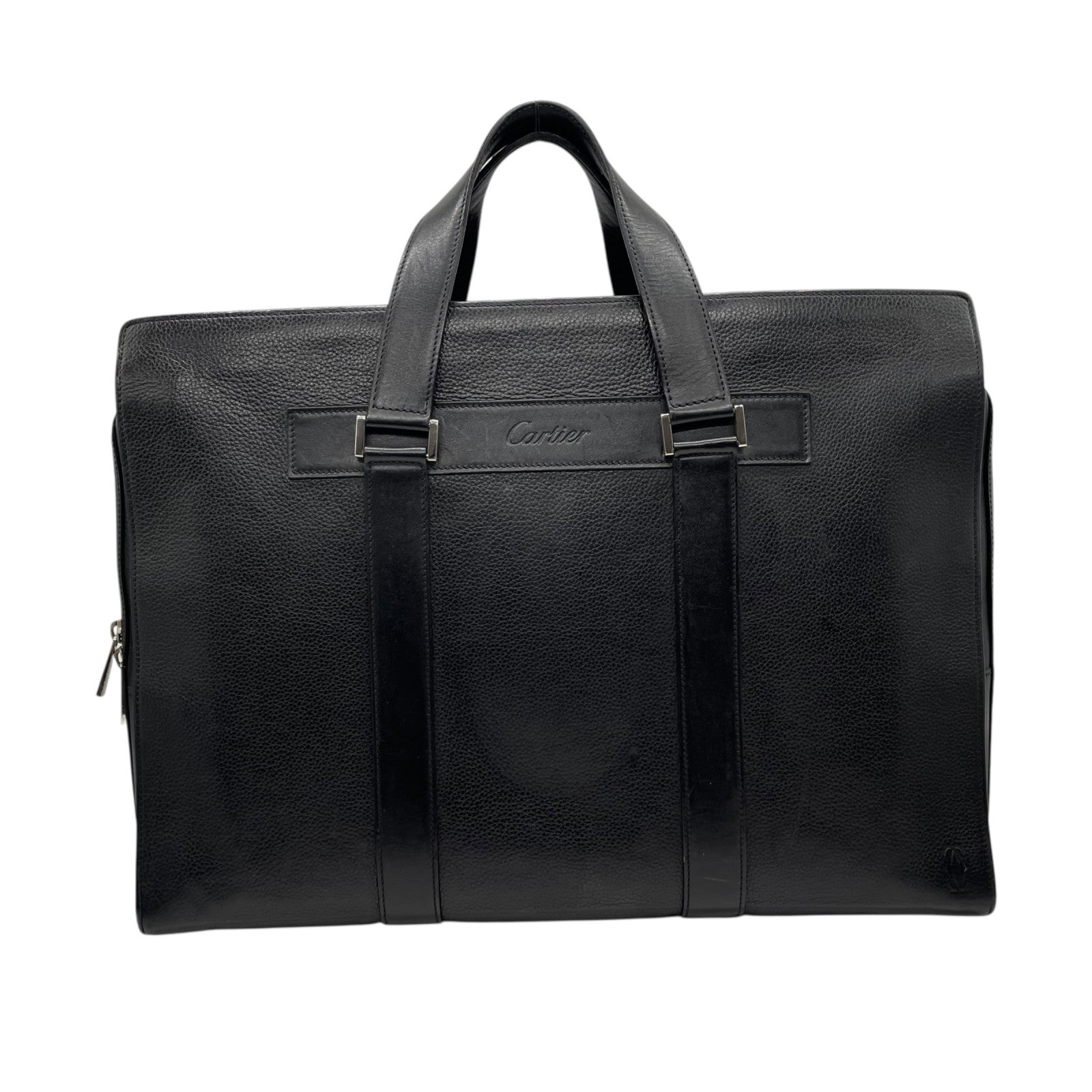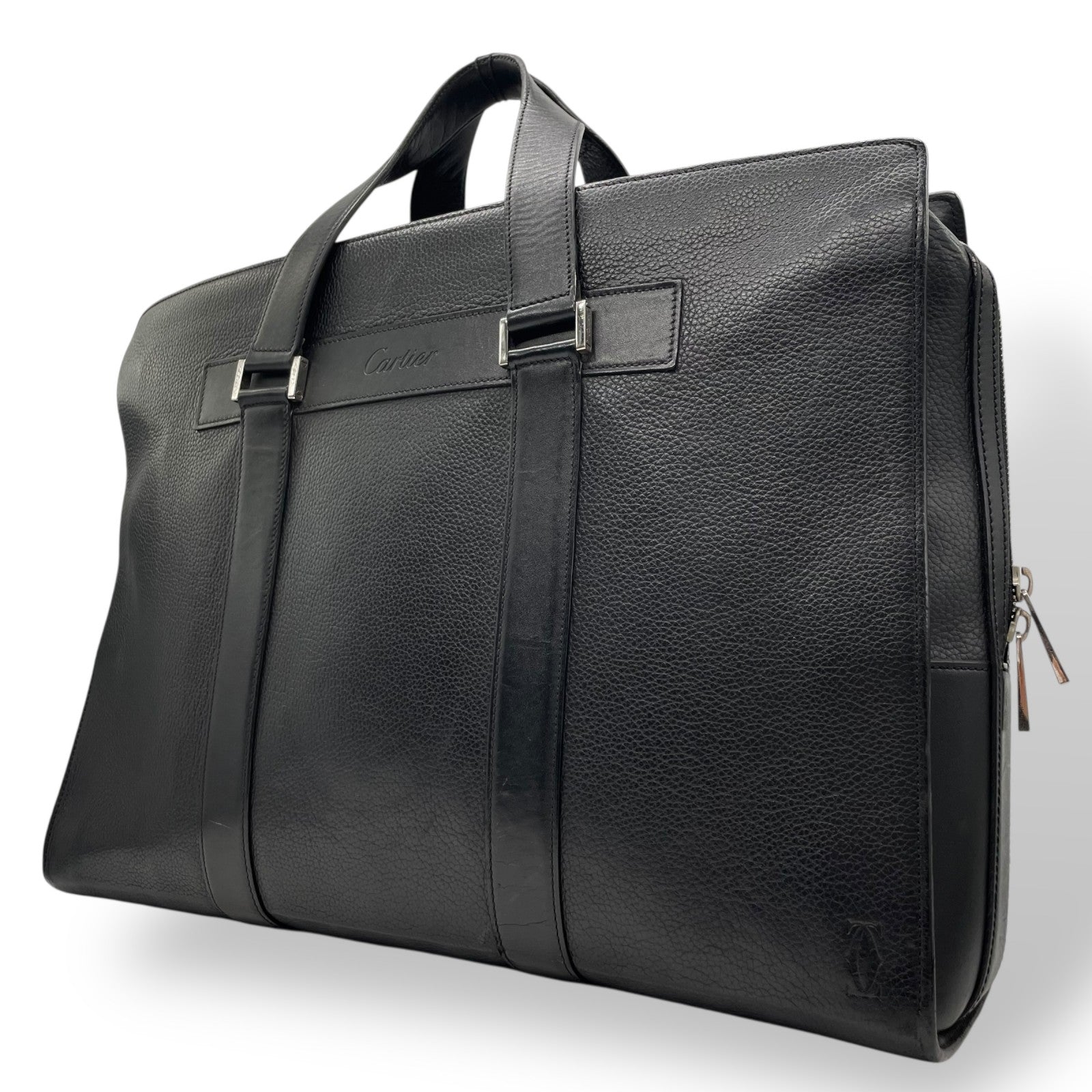 美品 現行 Cartier カルティエ ビジネスバッグ ブリーフケース 黒 ブラック レザー シボ革 シルバー金具 ロゴ型押し 2Cモチーフ 通勤 メンズ A4収納可 A