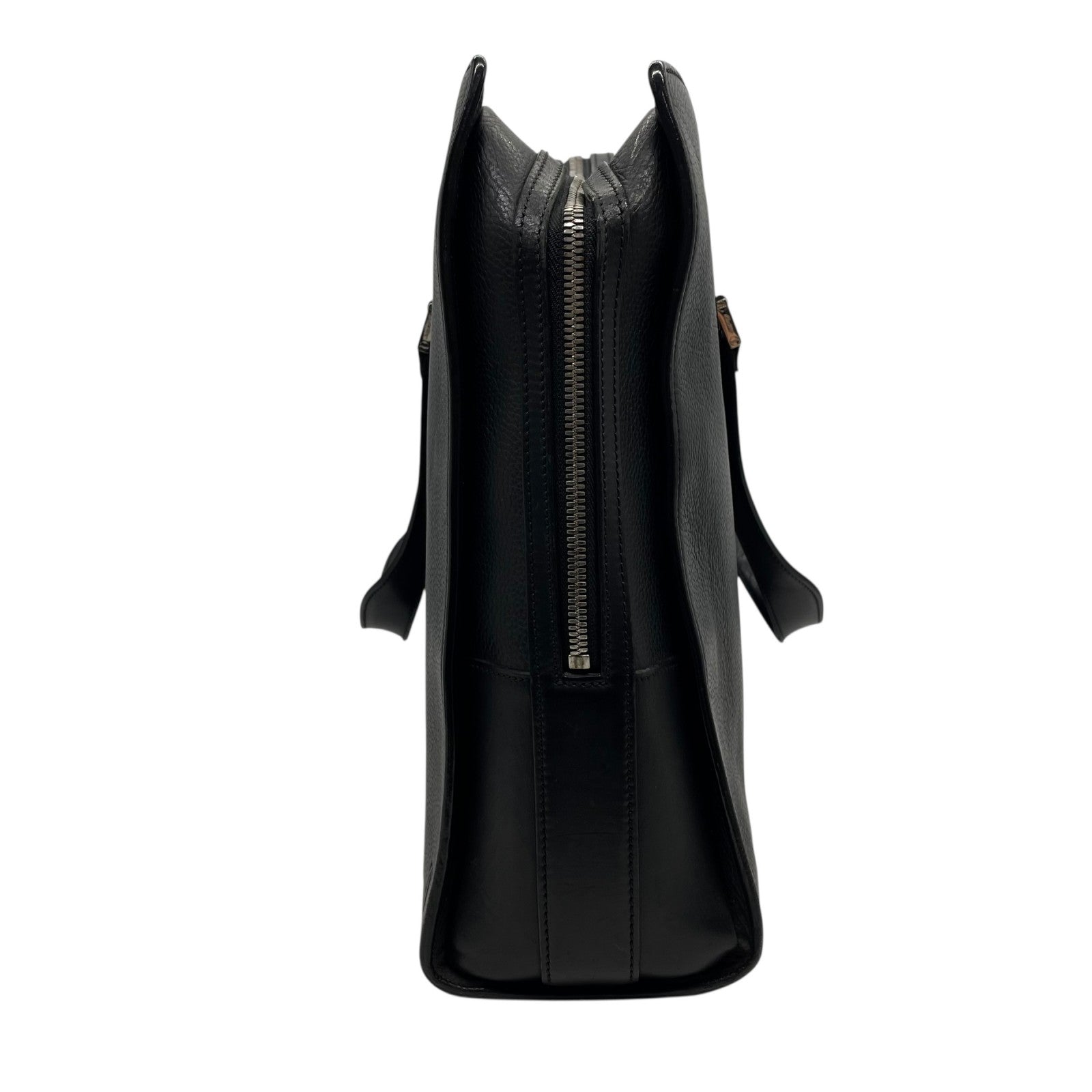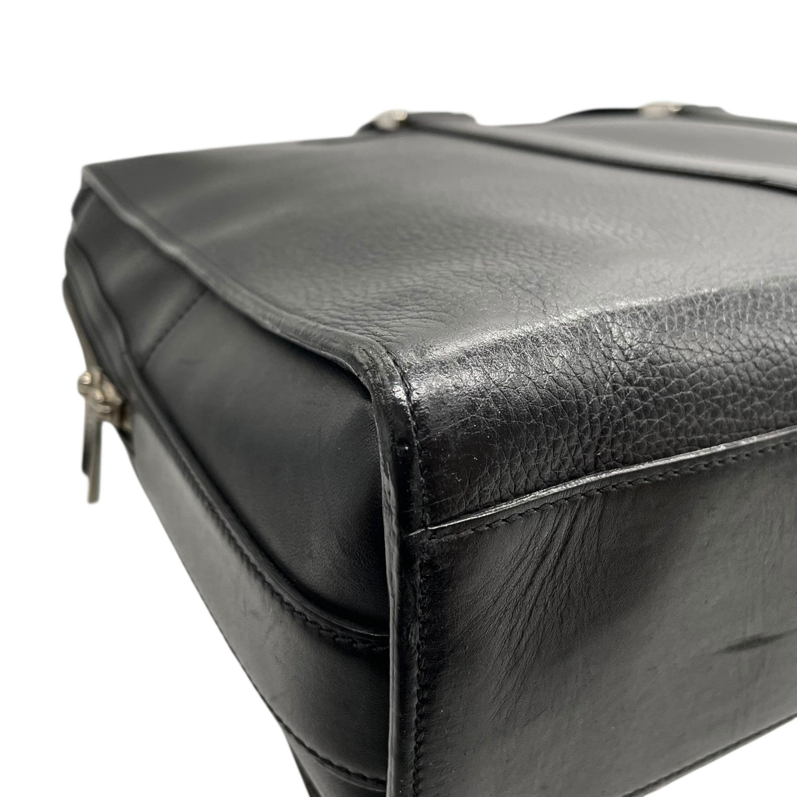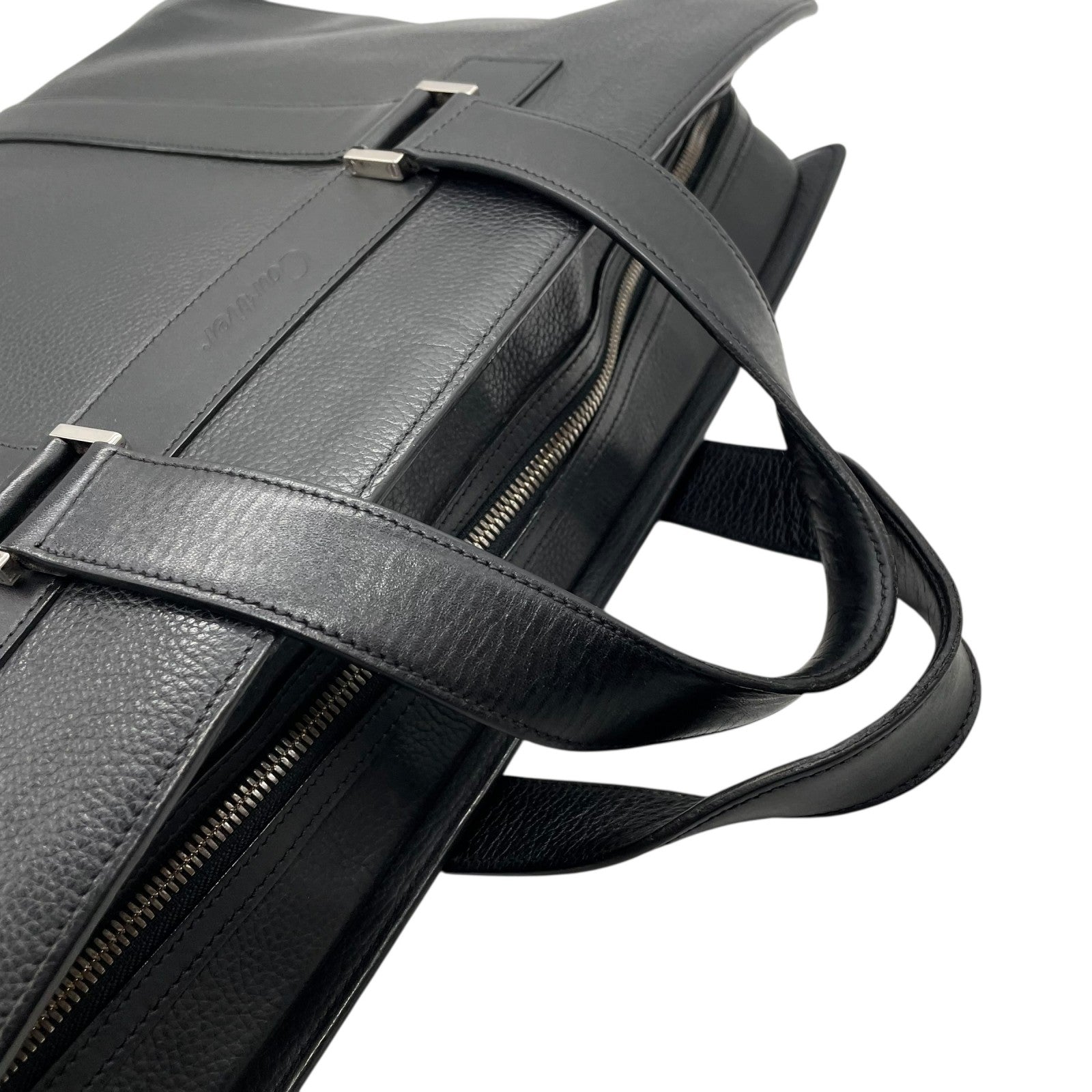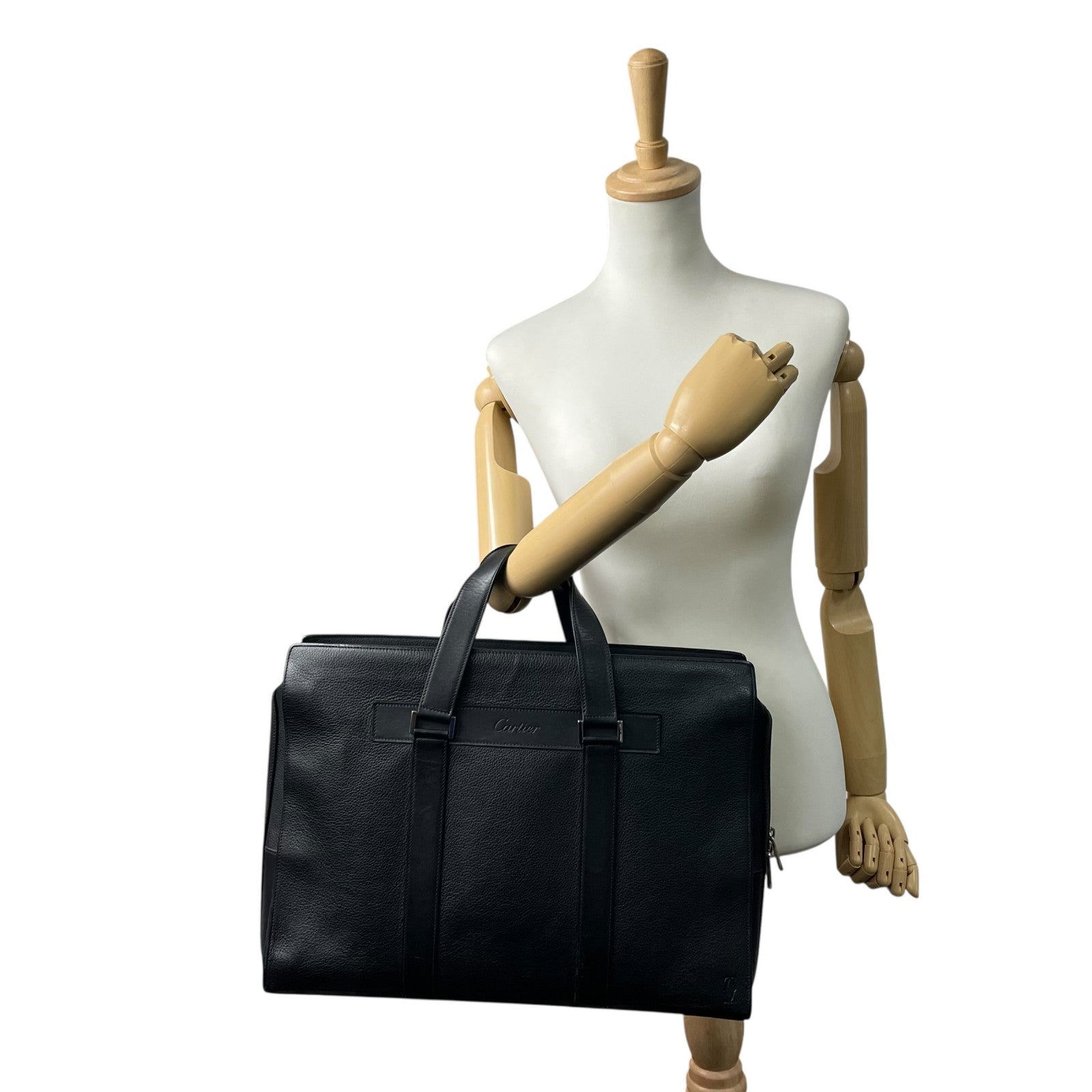 美品 現行 Cartier カルティエ ビジネスバッグ ブリーフケース 黒 ブラック レザー シボ革 シルバー金具 ロゴ型押し 2Cモチーフ 通勤 メンズ A4収納可 A