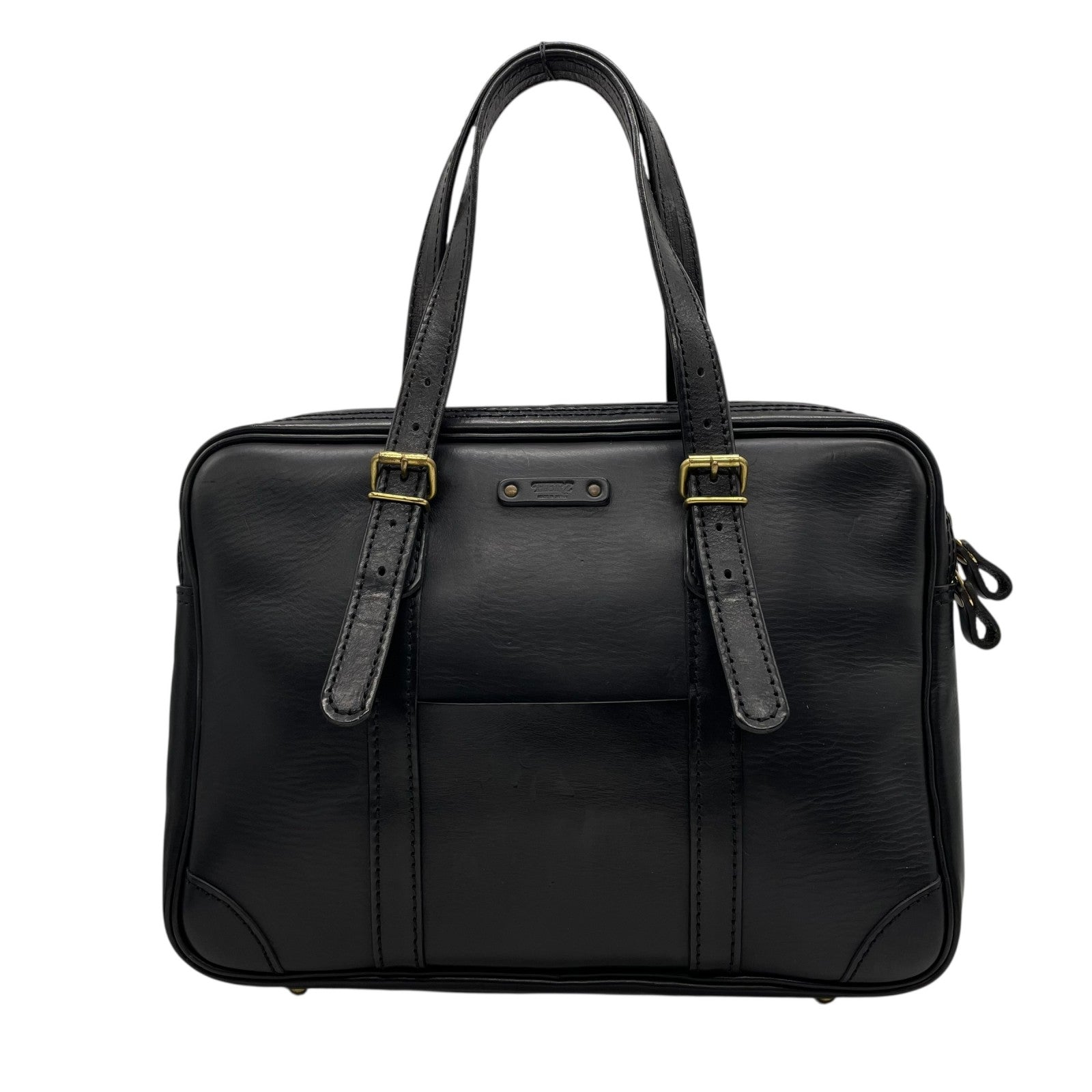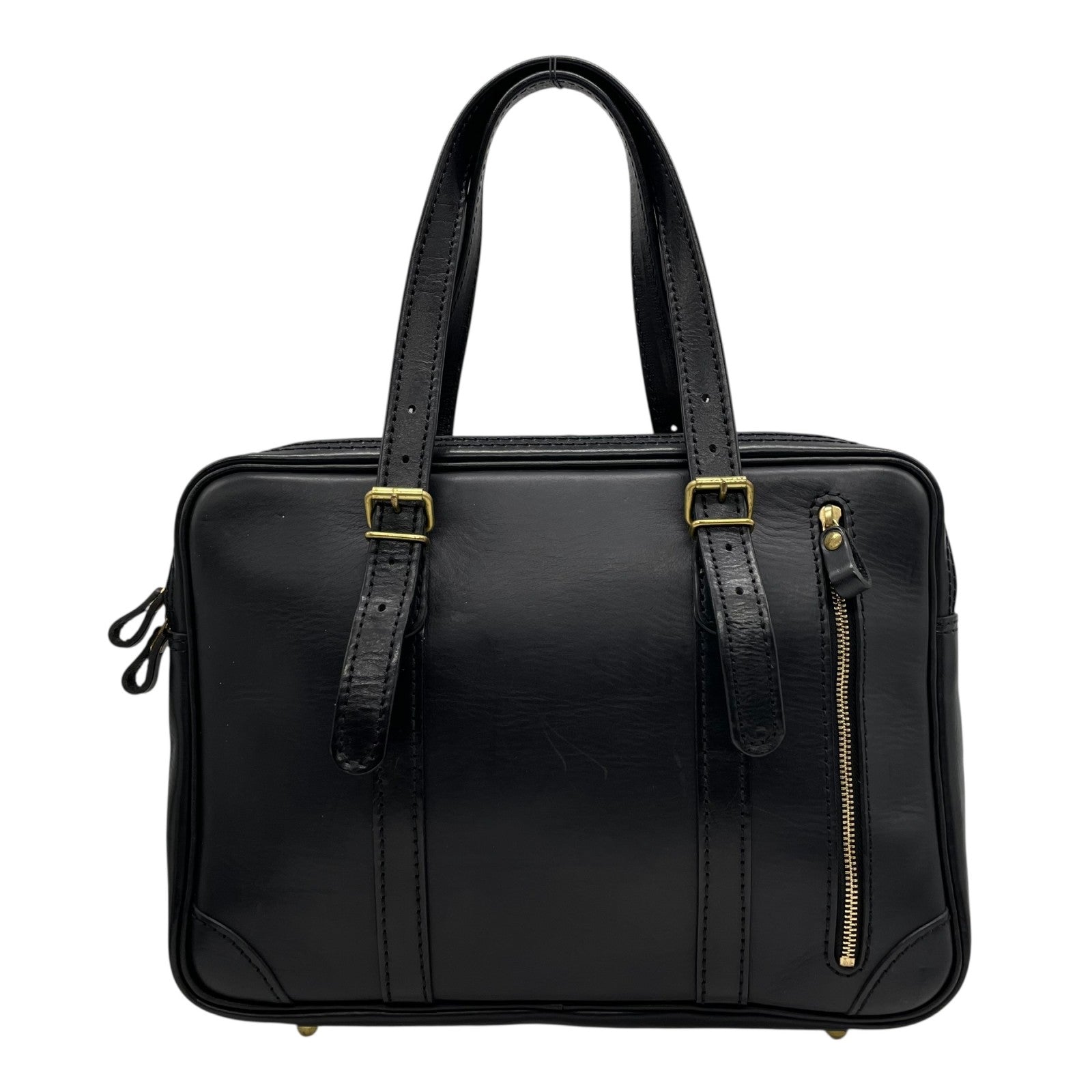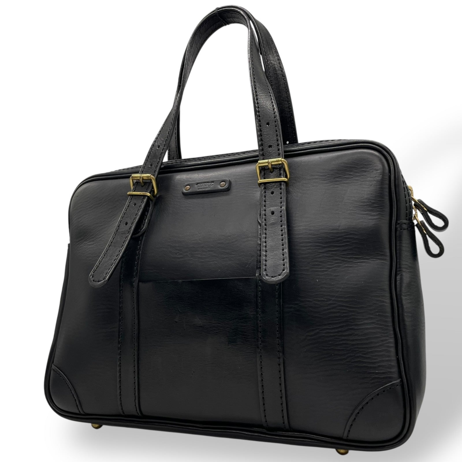 美品 Herz ヘルツ 二本手 ビジネスバッグ ブリーフケース 書類鞄 黒 ブラック レザー 日本製 ゴールド金具 A4対応 BW-57 メンズ レディース C