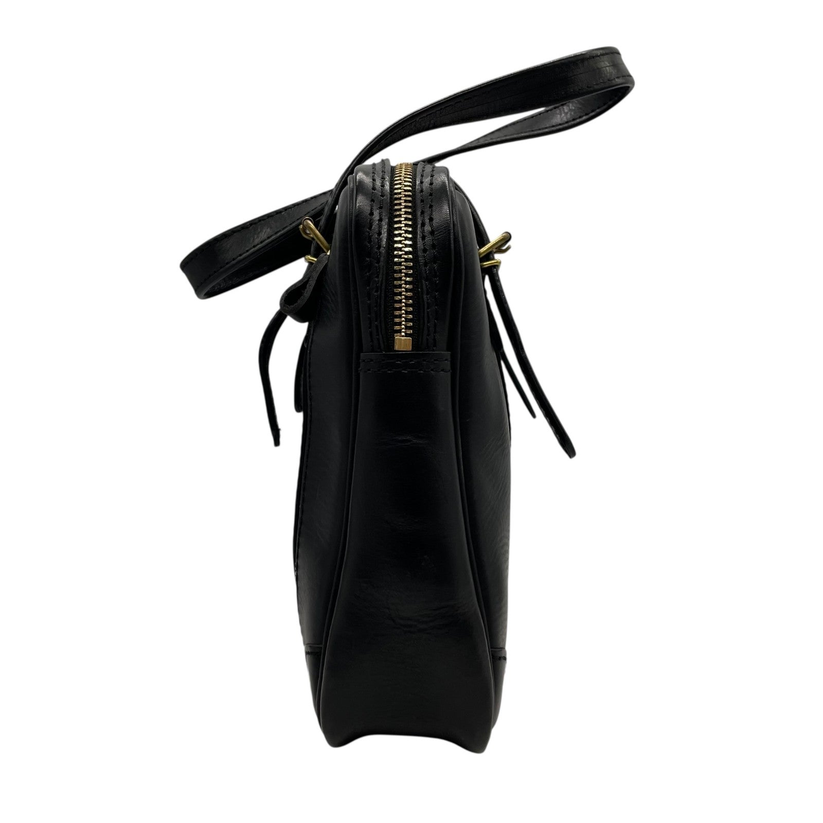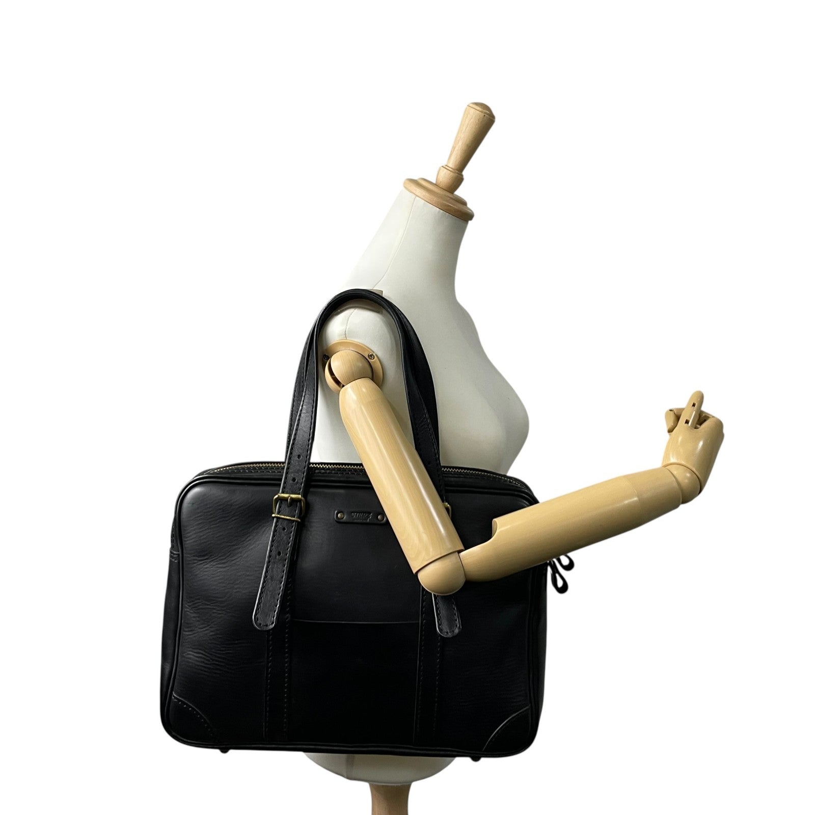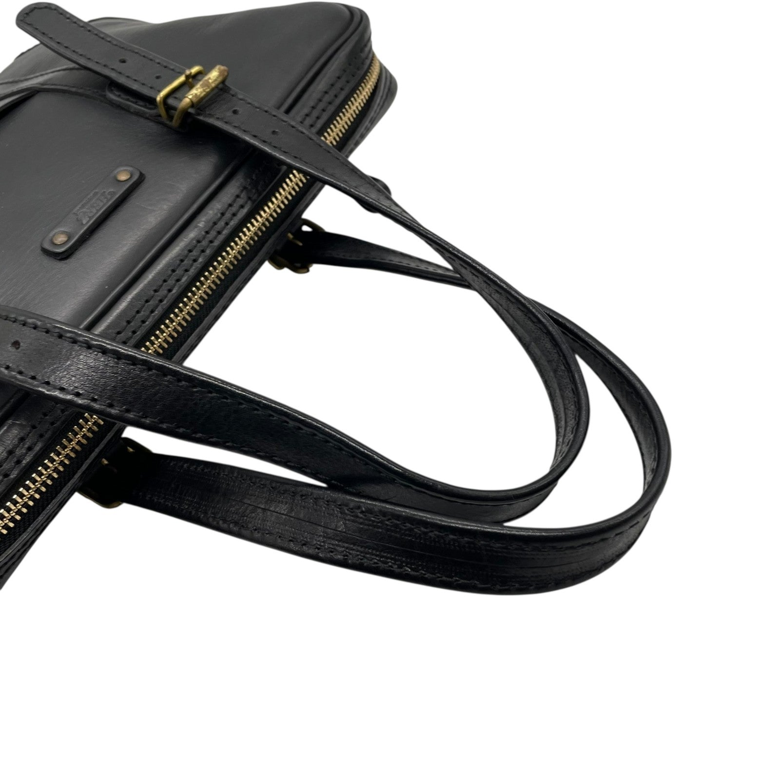美品 Herz ヘルツ 二本手 ビジネスバッグ ブリーフケース 書類鞄 黒 ブラック レザー 日本製 ゴールド金具 A4対応 BW-57 メンズ レディース C
