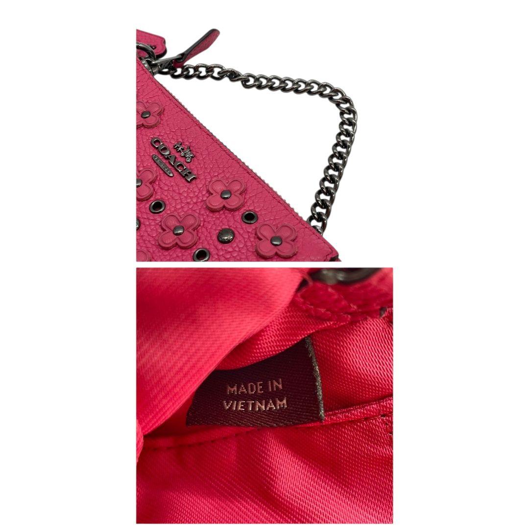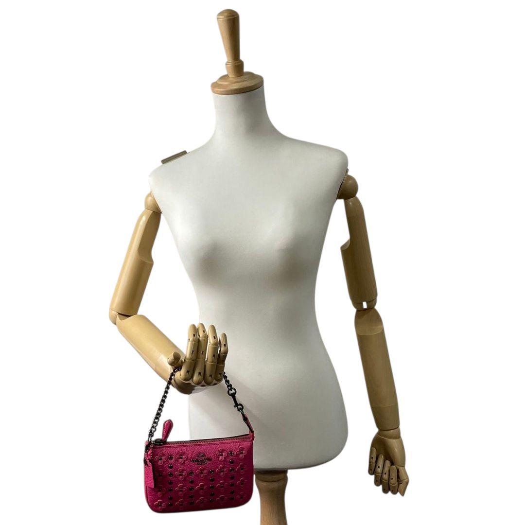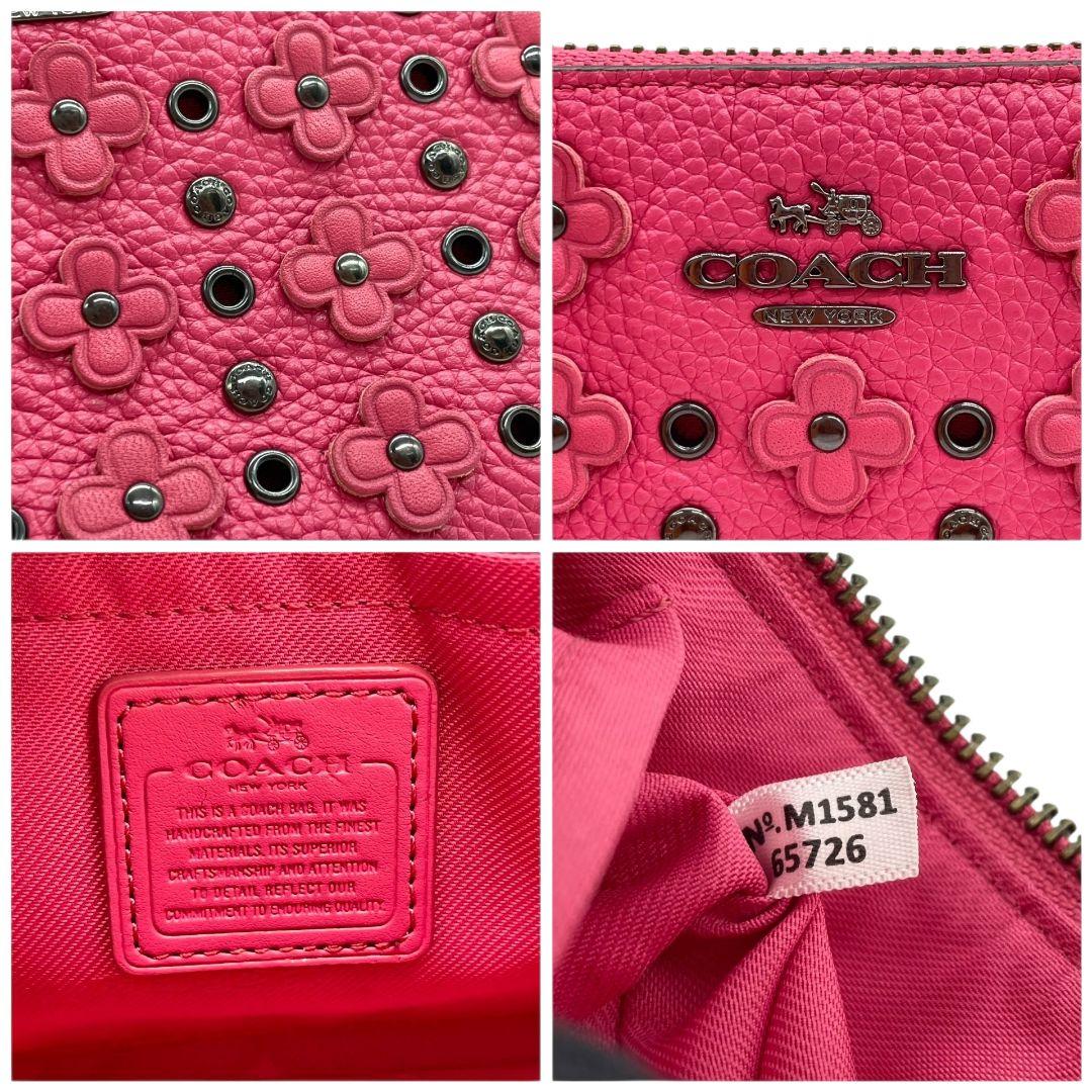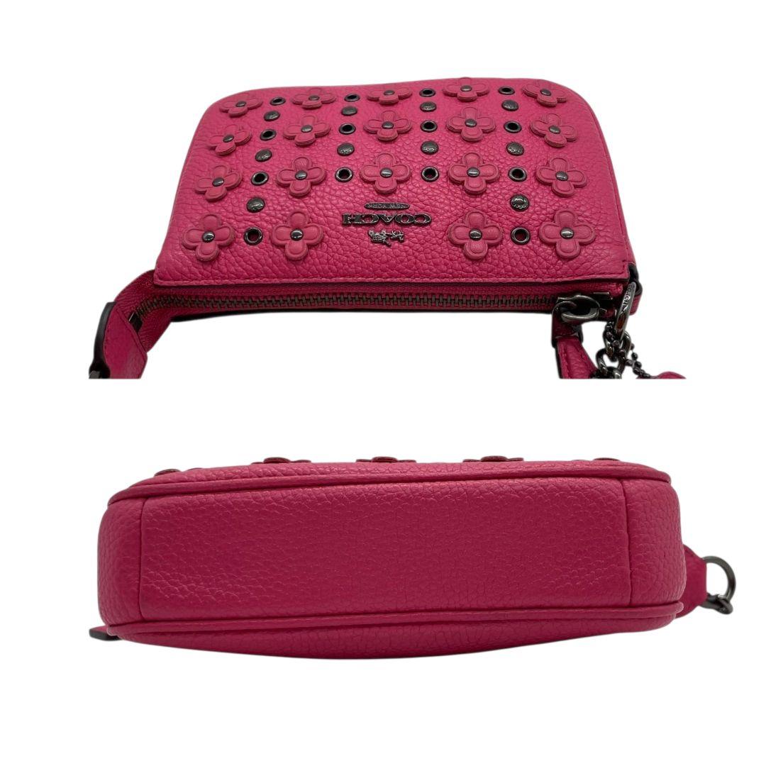 美品 コーチ ハンドバッグ ピンク 花柄 スタッズ レザー ポーチ アクセサリーポーチ 本革 チェーン トートバッグ ロゴプレート ロゴタグ チャーム付き COACH s80