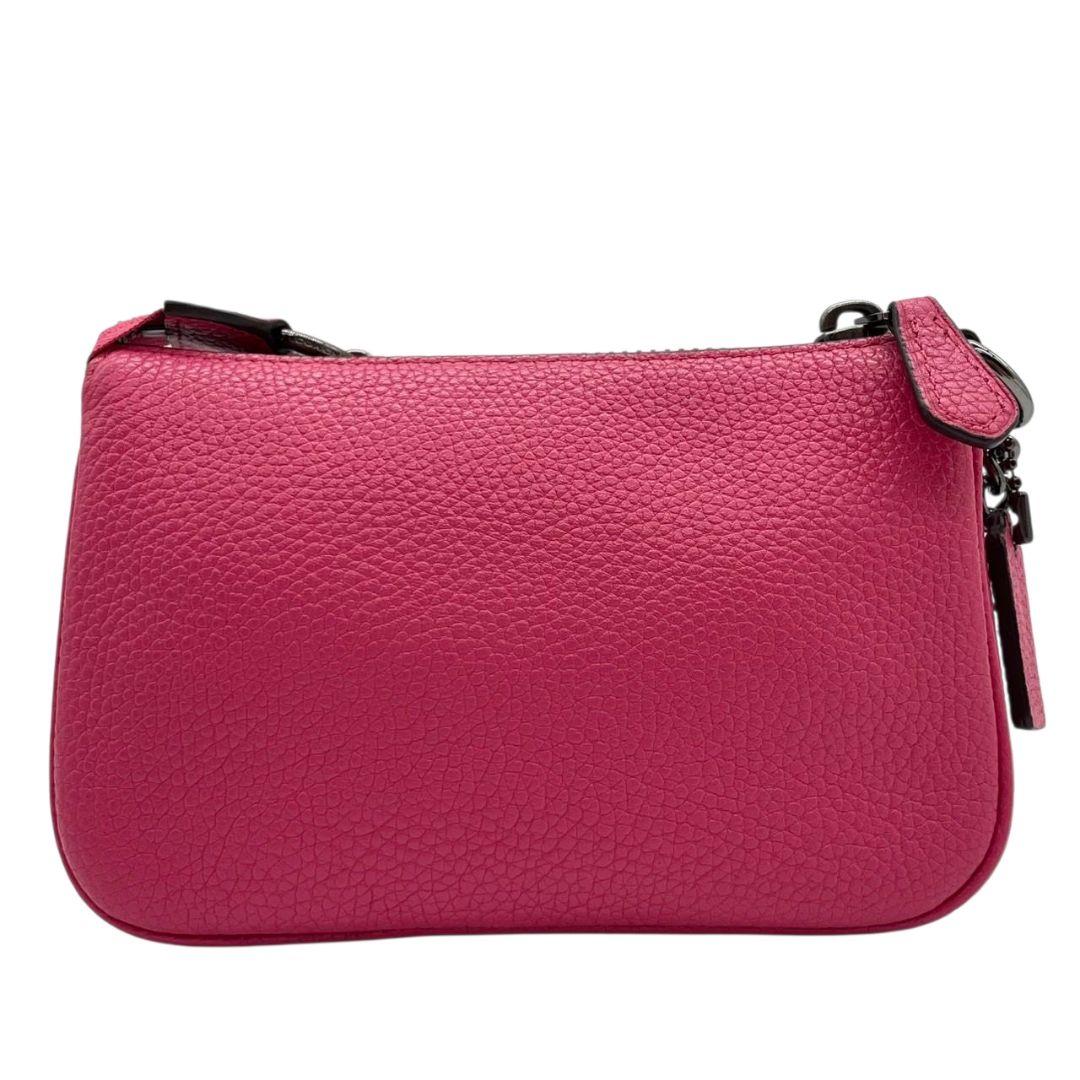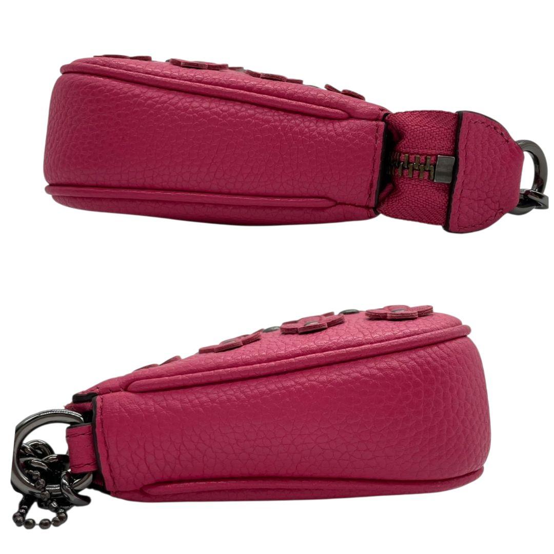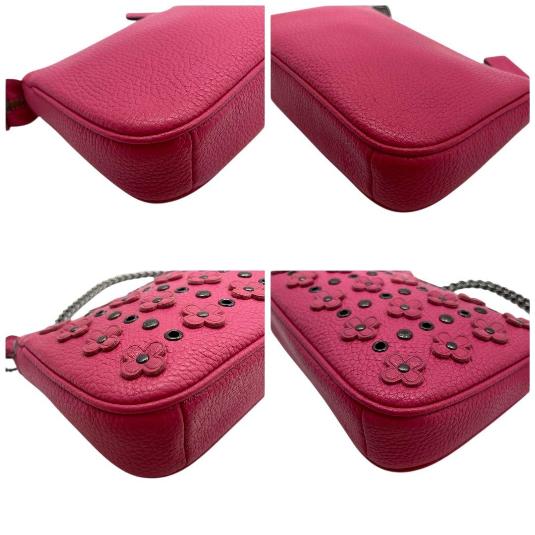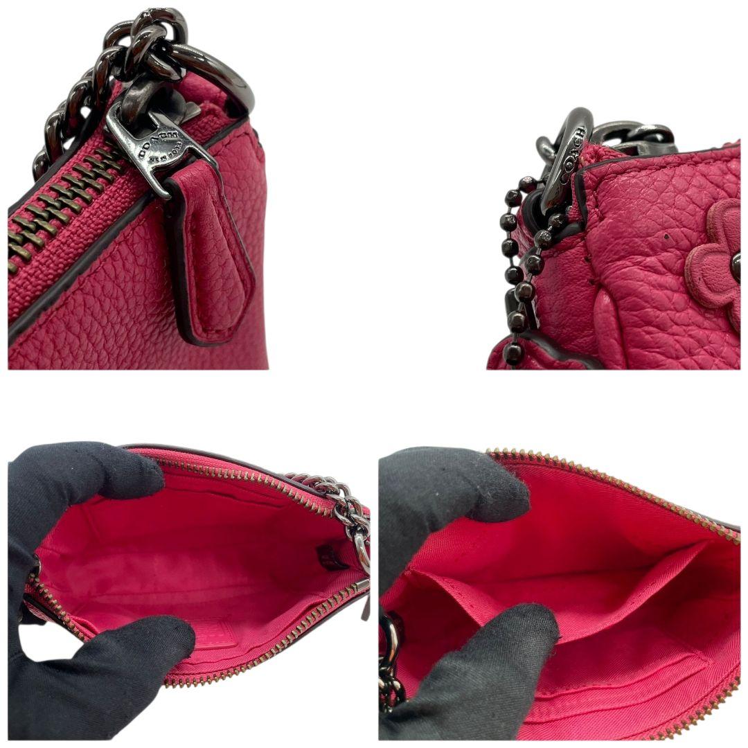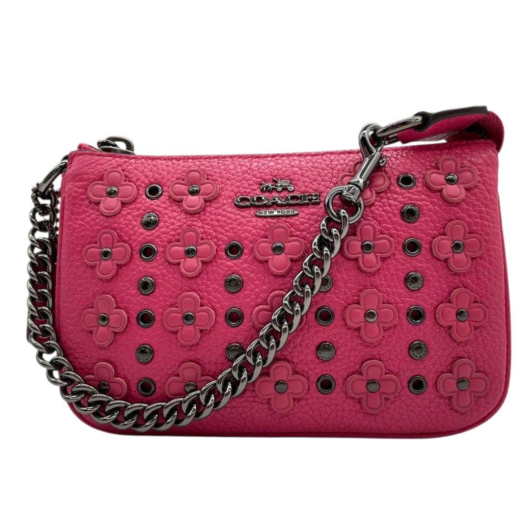 美品 コーチ ハンドバッグ ピンク 花柄 スタッズ レザー ポーチ アクセサリーポーチ 本革 チェーン トートバッグ ロゴプレート ロゴタグ チャーム付き COACH s80