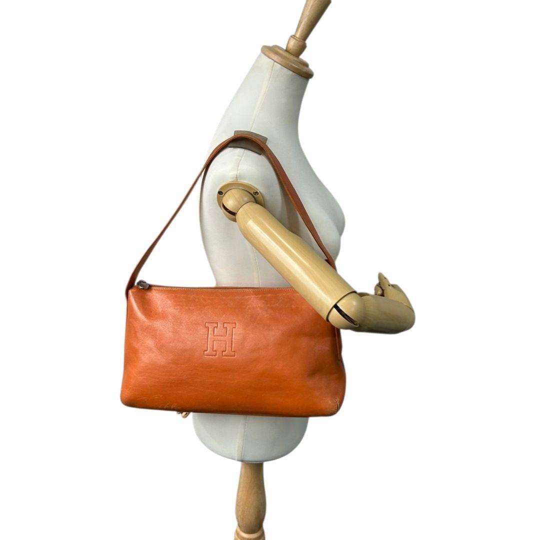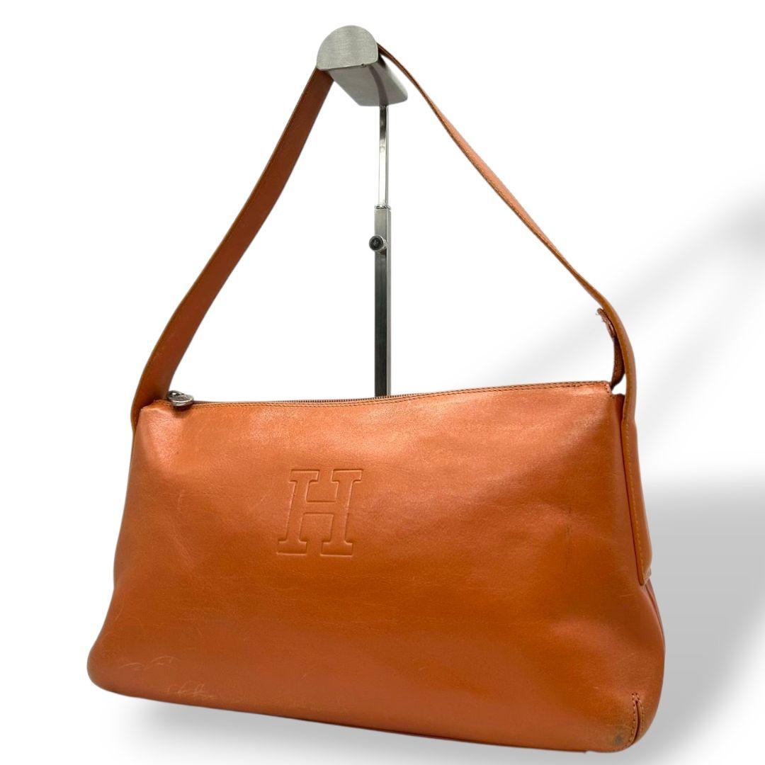 ヒロフ HIROFU ハンドバッグ トートバッグ ブラウン 茶 オレンジ Hロゴ ワンショルダー 肩掛け可 肩かけ可 A4収納 レザー 本革 自立可 シルバー金具 イタリア製 U7