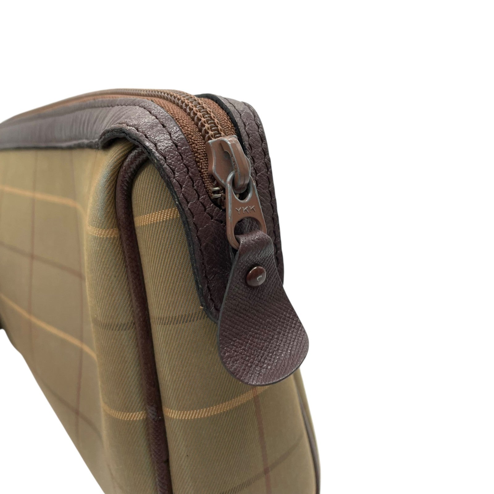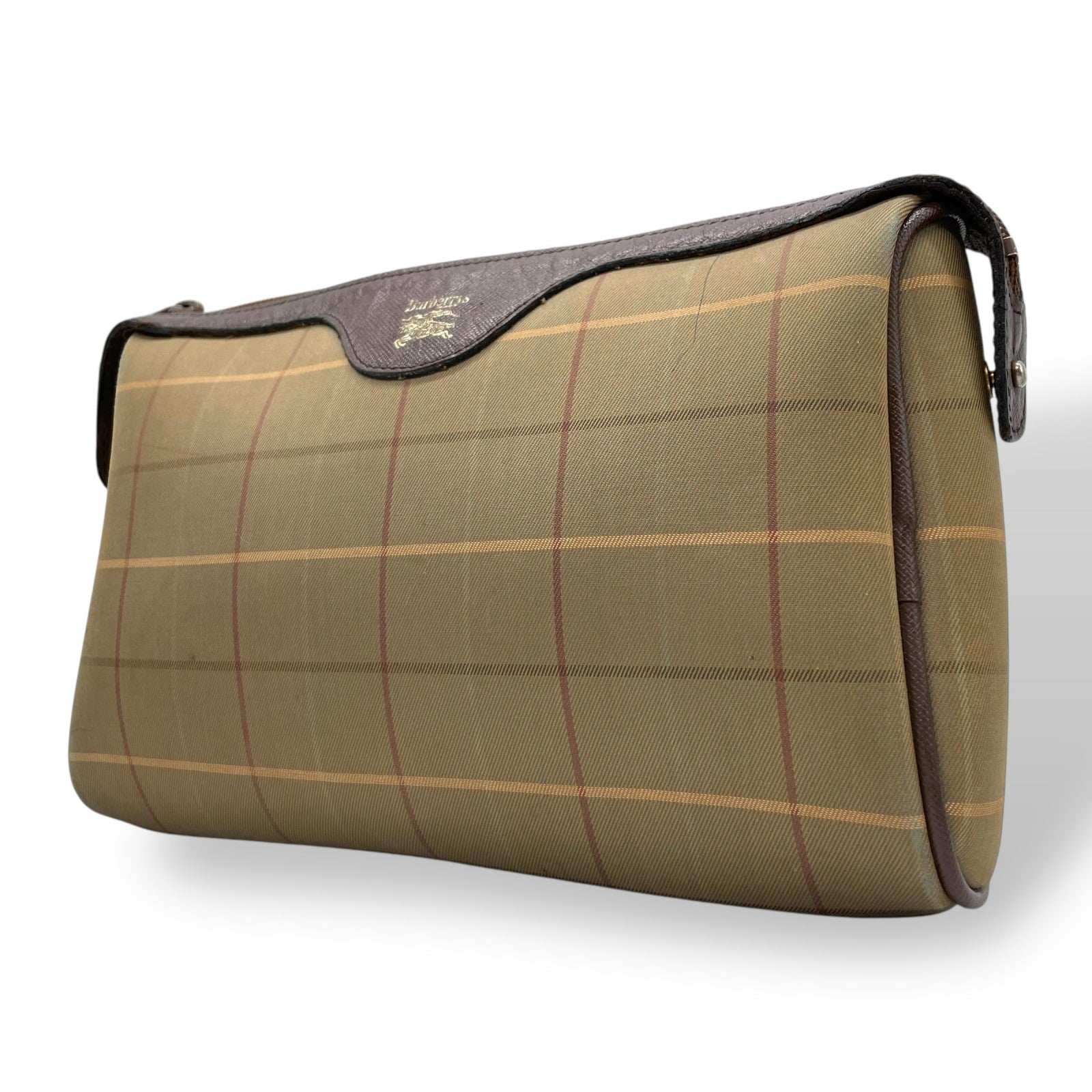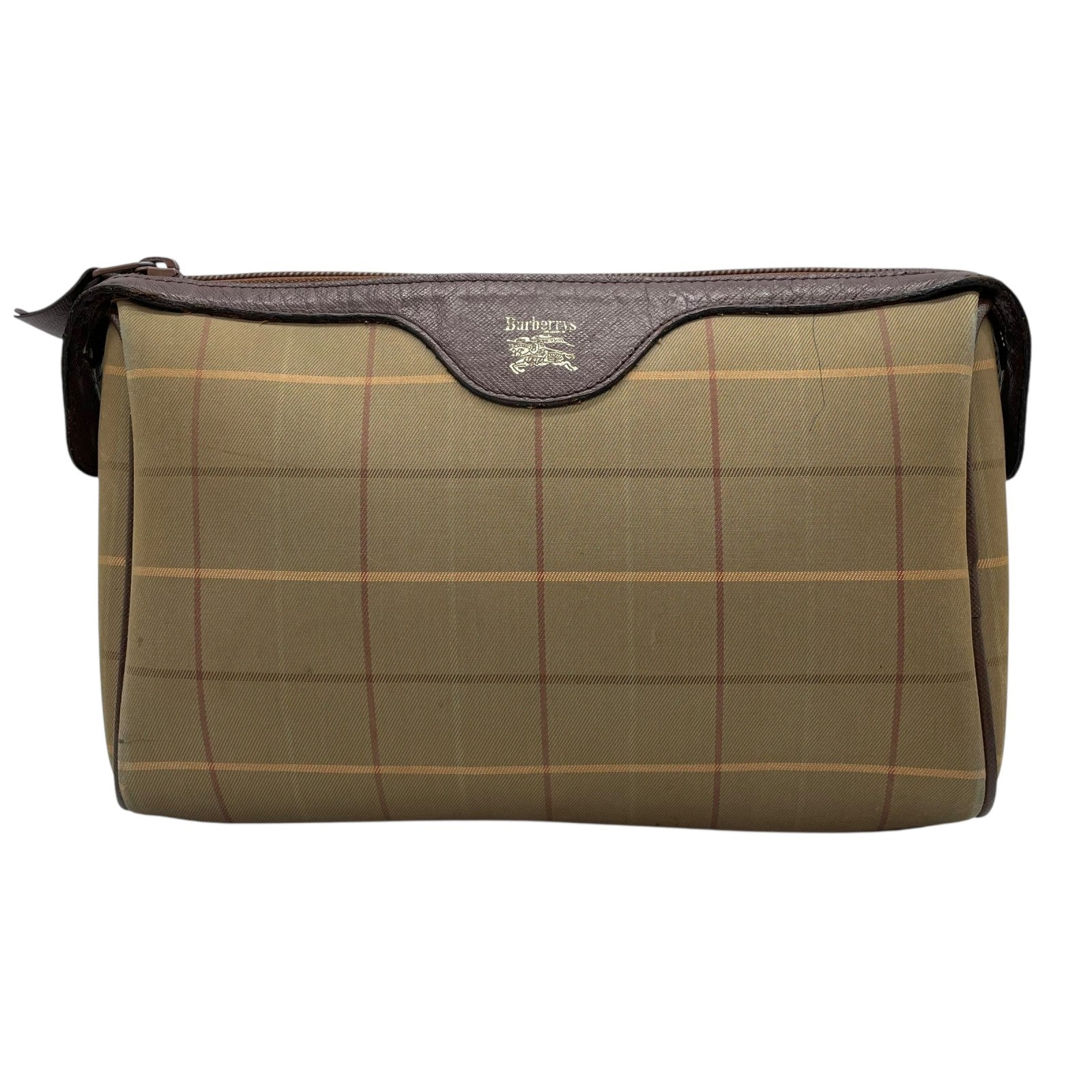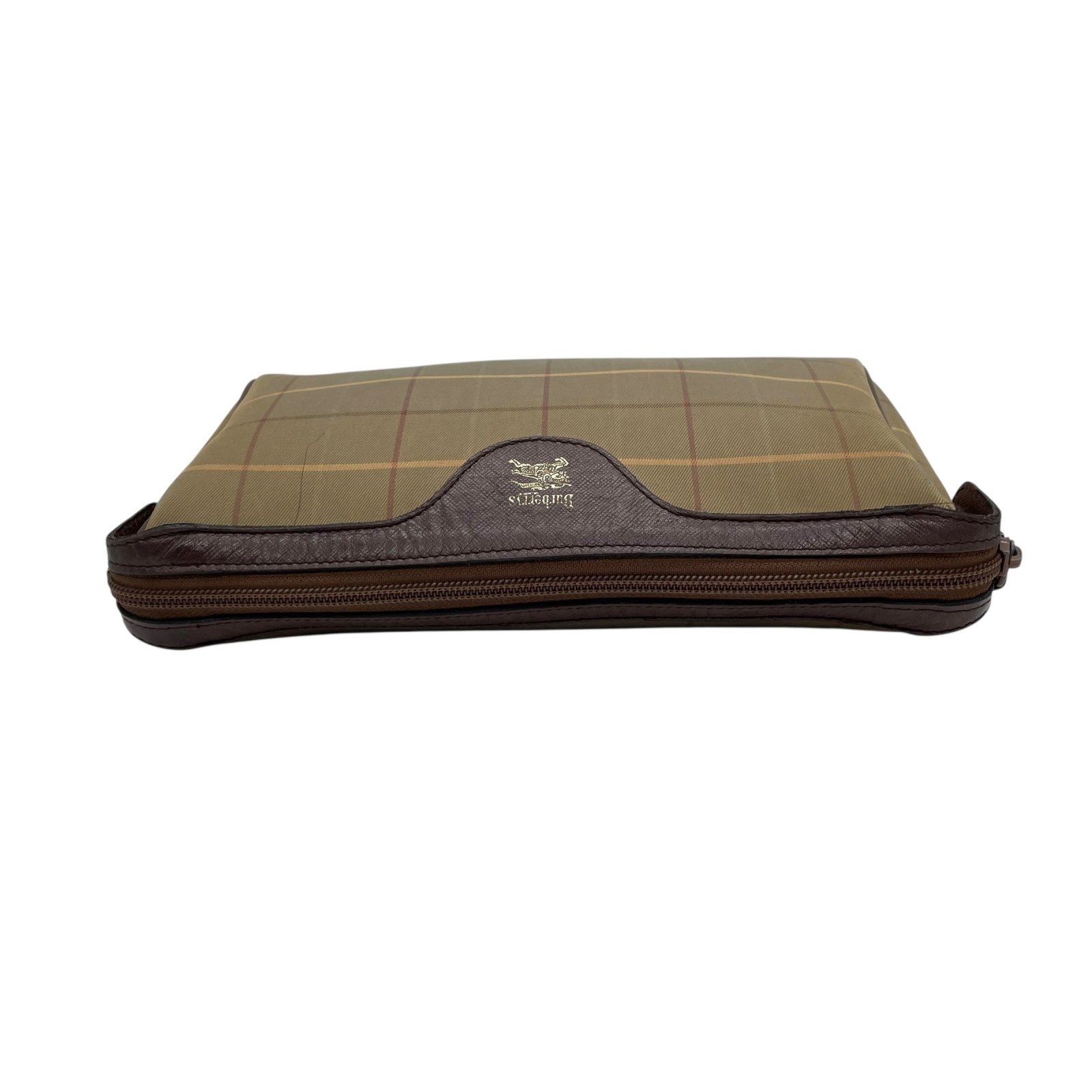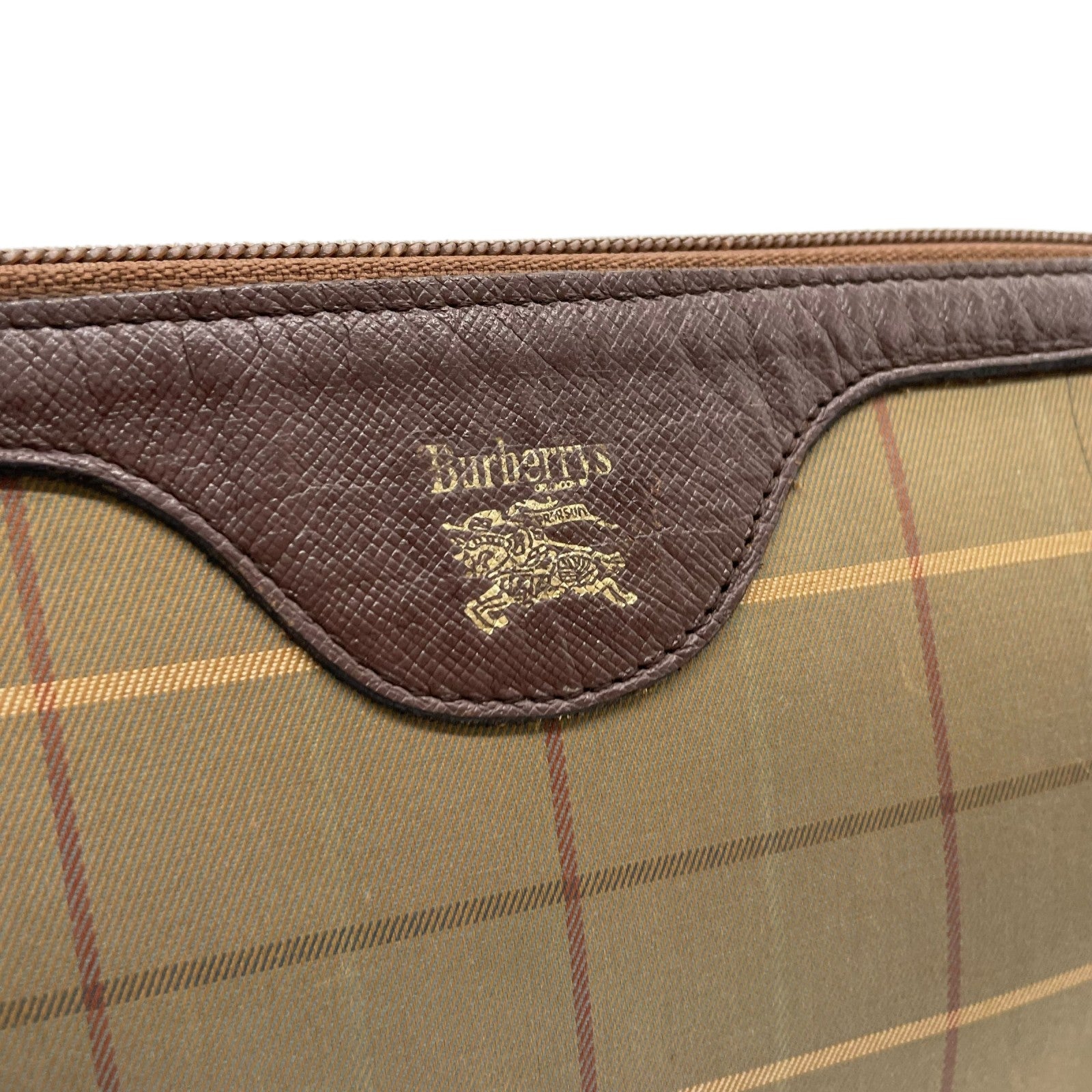 Burberry バーバリー クラッチバッグ セカンドバッグ ポーチ カーキ ブラウン ブラウン金具 キャンバス レザー ファスナー開閉 チェック柄 ホースロゴ メンズ レディース ヴィンテージ U4