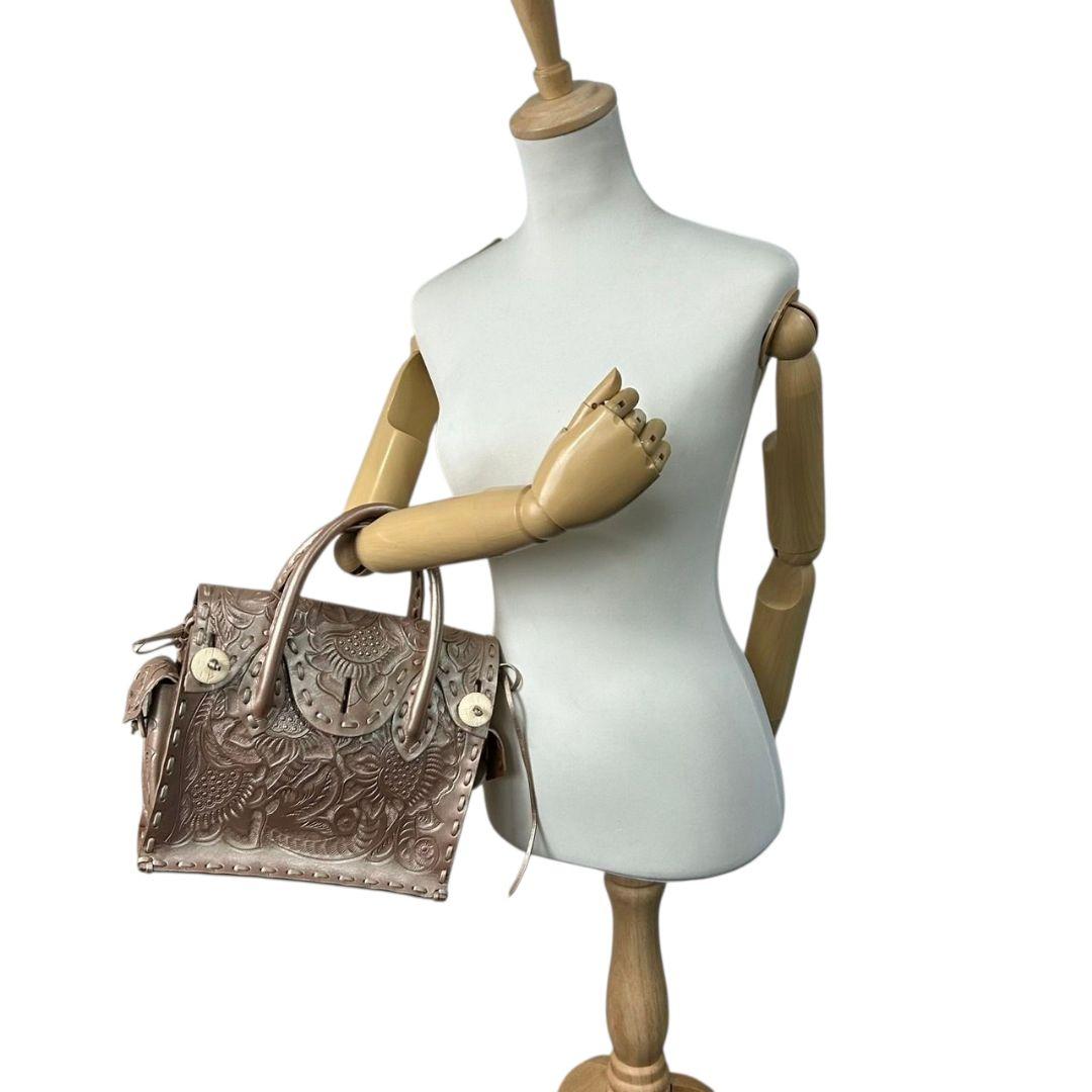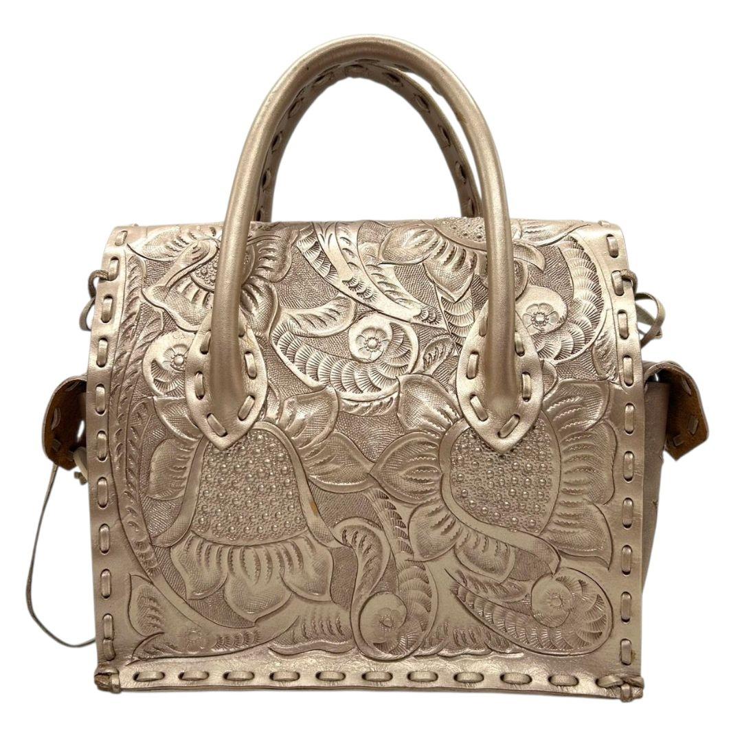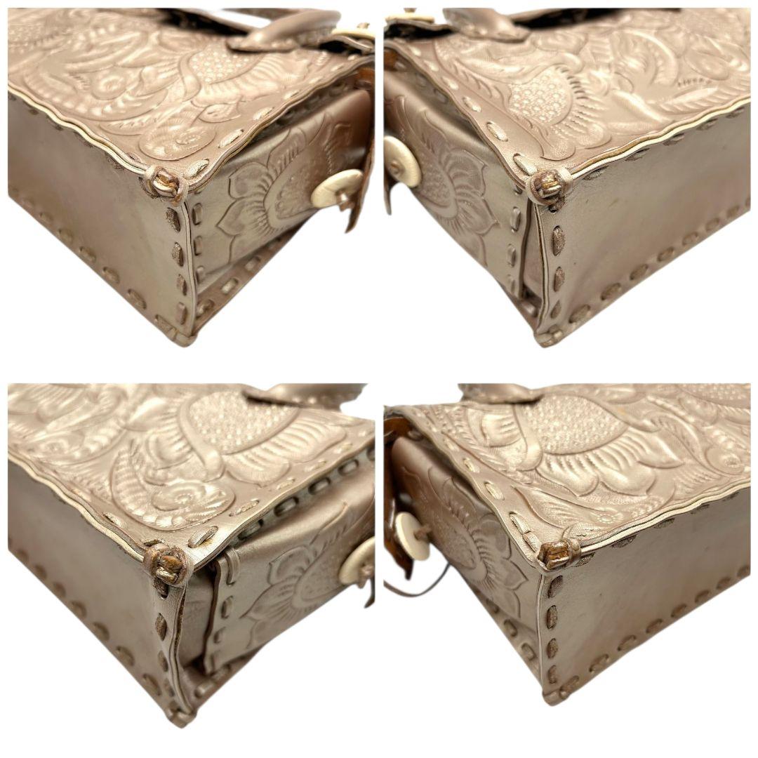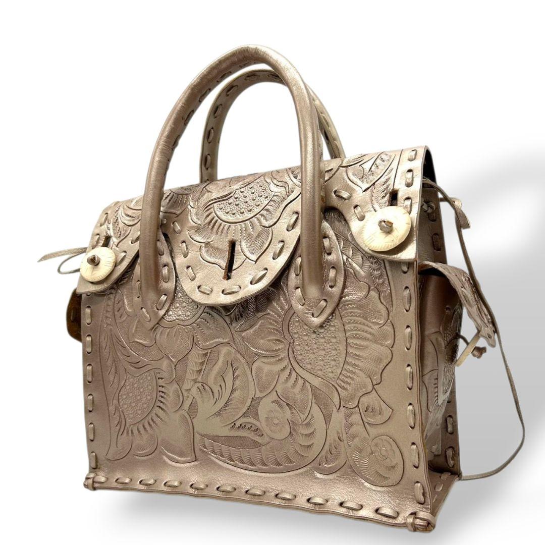 カービングトライブス ハンドバッグ ゴールド カービングバッグ 自立可 H トートバッグ レザー 本革 型押し フラップ Carving Tribes 上品 高級感 エレガント 大人可愛い