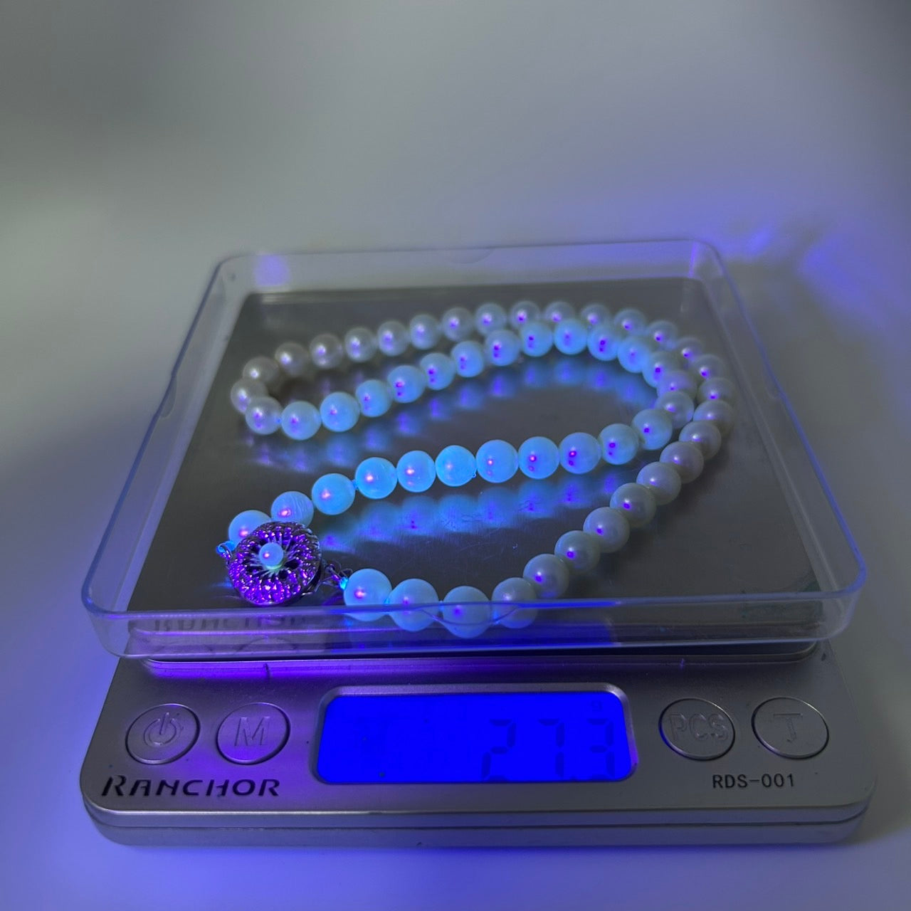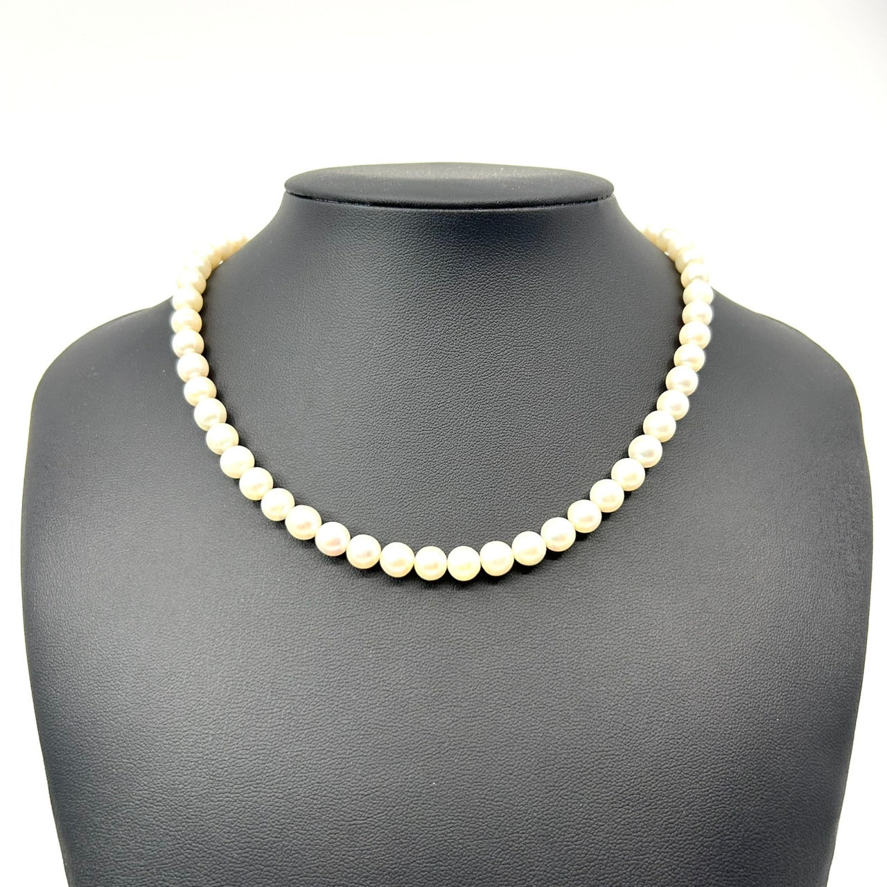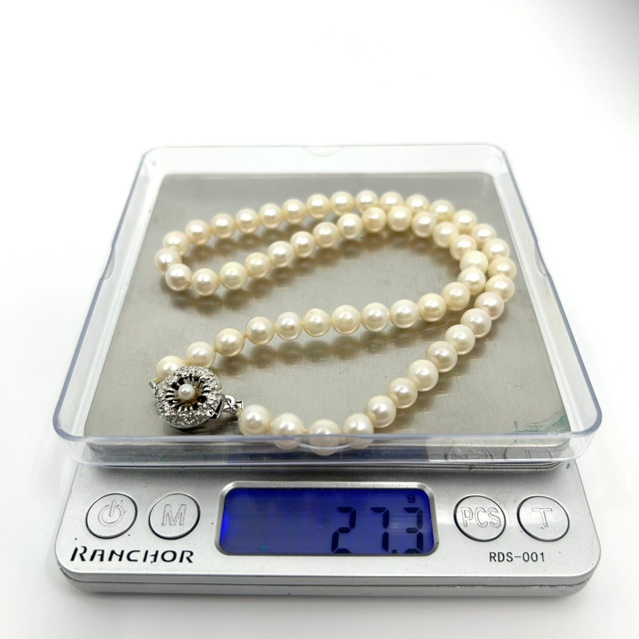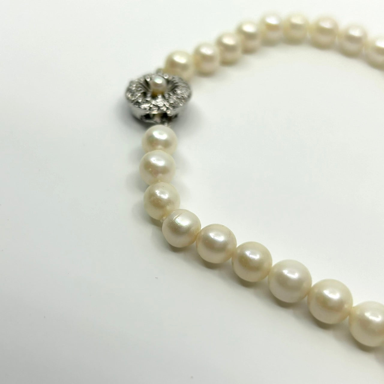 美品 本真珠 パール 真珠 ネックレス あこや真珠 日本 養殖パール 白 ホワイト ペンダント 冠婚葬祭 首飾り シルバー留め具 6.5mm-6.9mm 全長約45cm I3