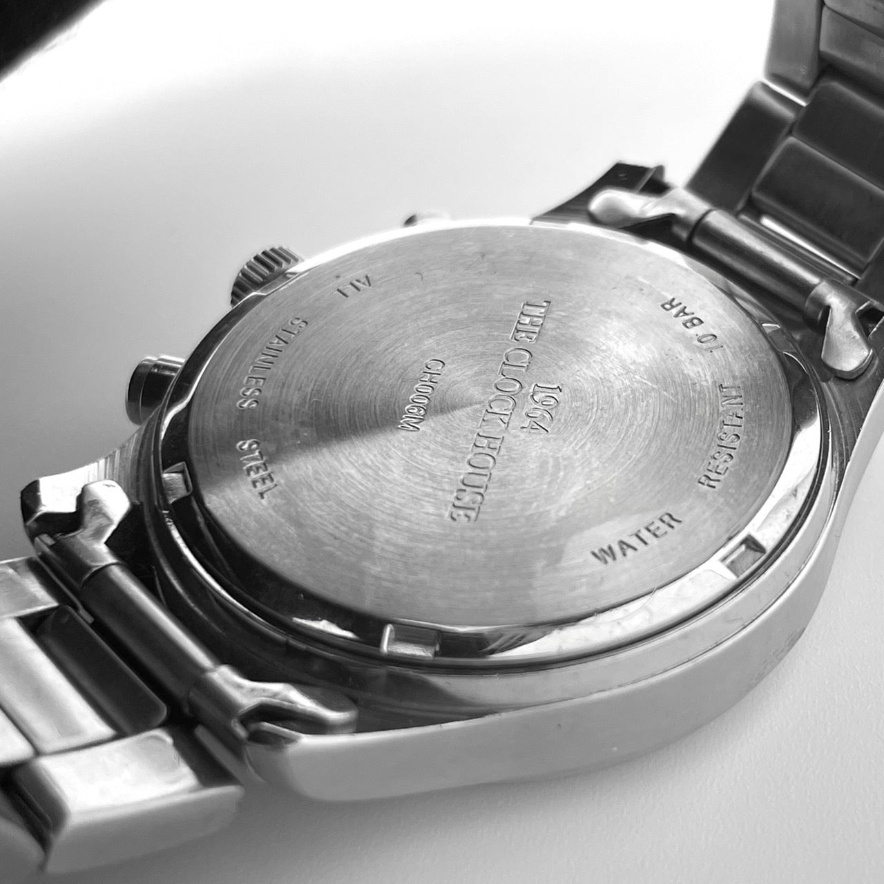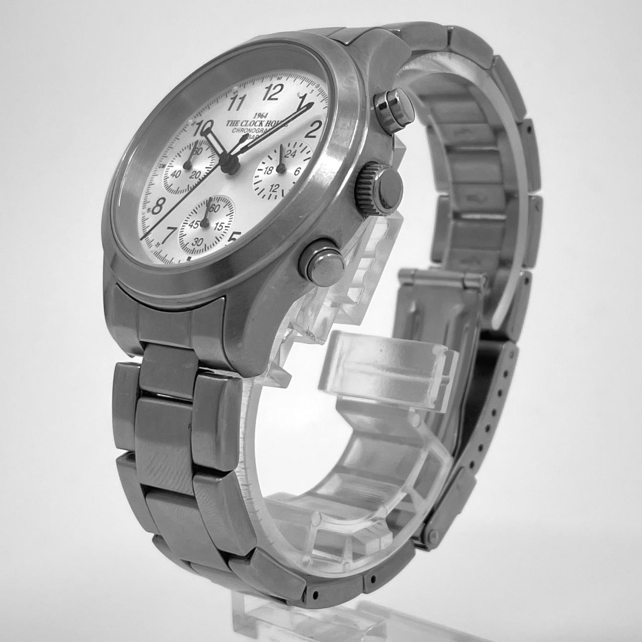 The Clock House 1964 Chronograph Men's Watch CH006M, Battery Replaced/Excellent Condition, 10 ATM Water Resistant, Quartz, White Dial, Silver Stainless Steel, Analog, Vintage Design, Sporty Classic, 24-Hour Display, Cleaned, G4