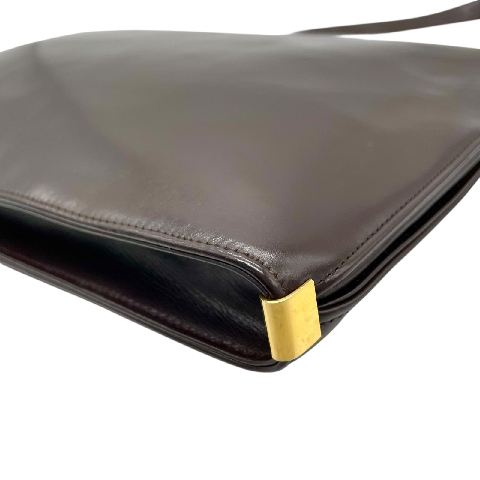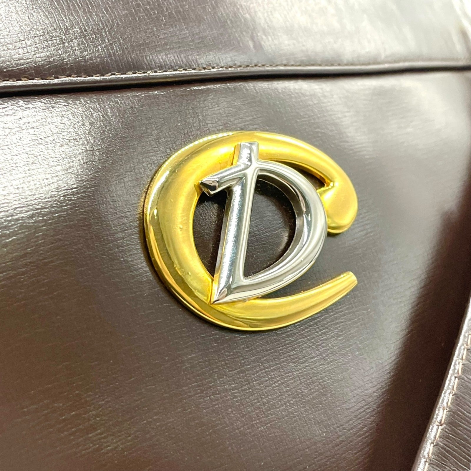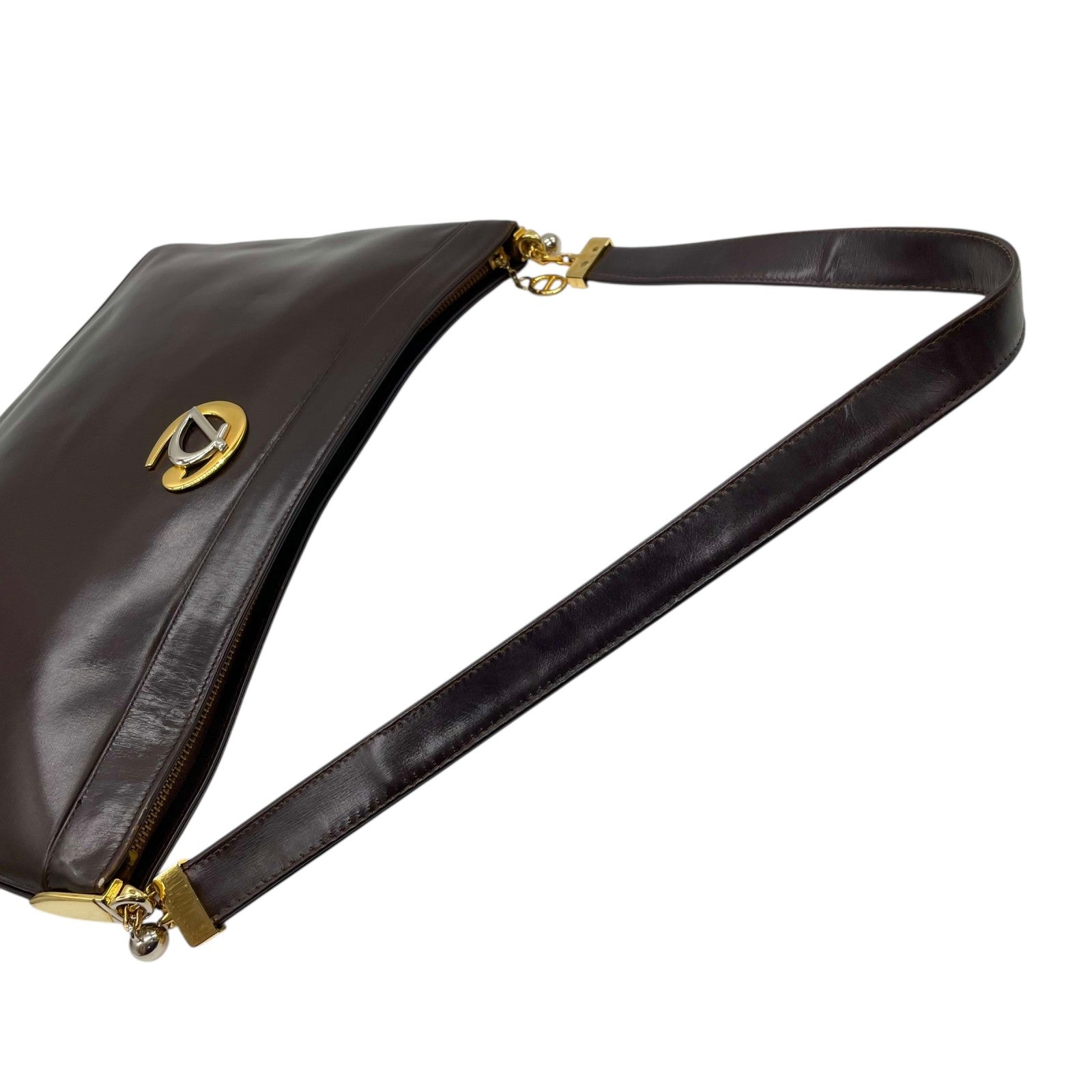 美品 Christian Dior クリスチャンディオール ショルダーバッグ ヴィンテージ ワンショルダー ハンドバッグ ダークブラウン レザー ゴールド金具 CDロゴ レディース U3