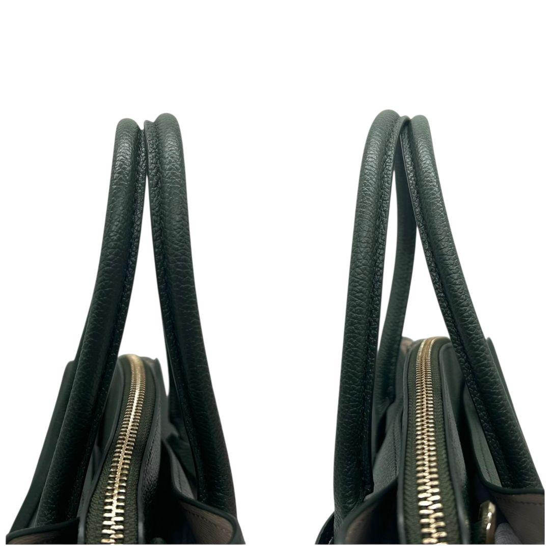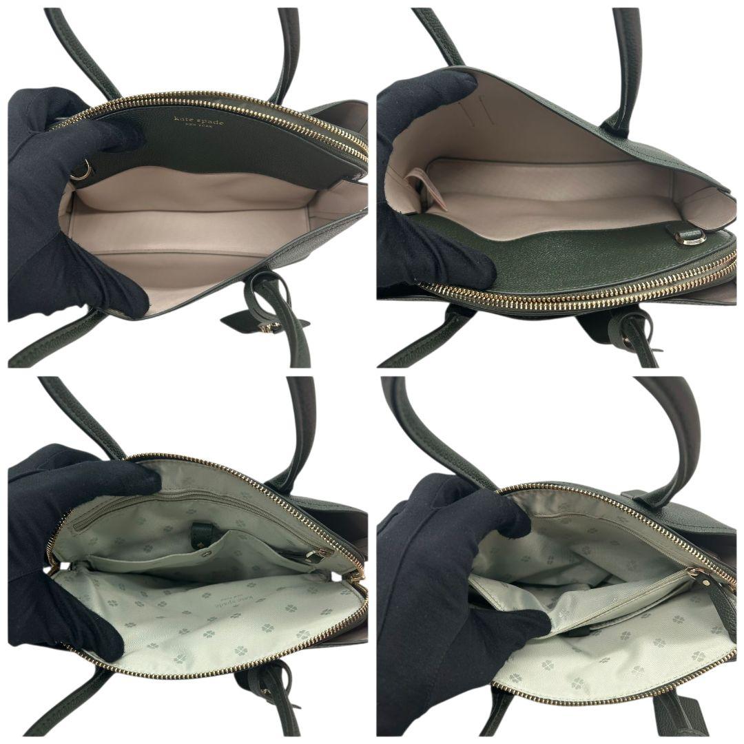 ケイトスペード kate spade ハンドバッグ トートバッグ グリーン 緑 カーキ ロゴ チャーム付き レザー 本革 ショルダーバッグ 斜め掛け可 自立可 ゴールド金具 ロゴタグ H