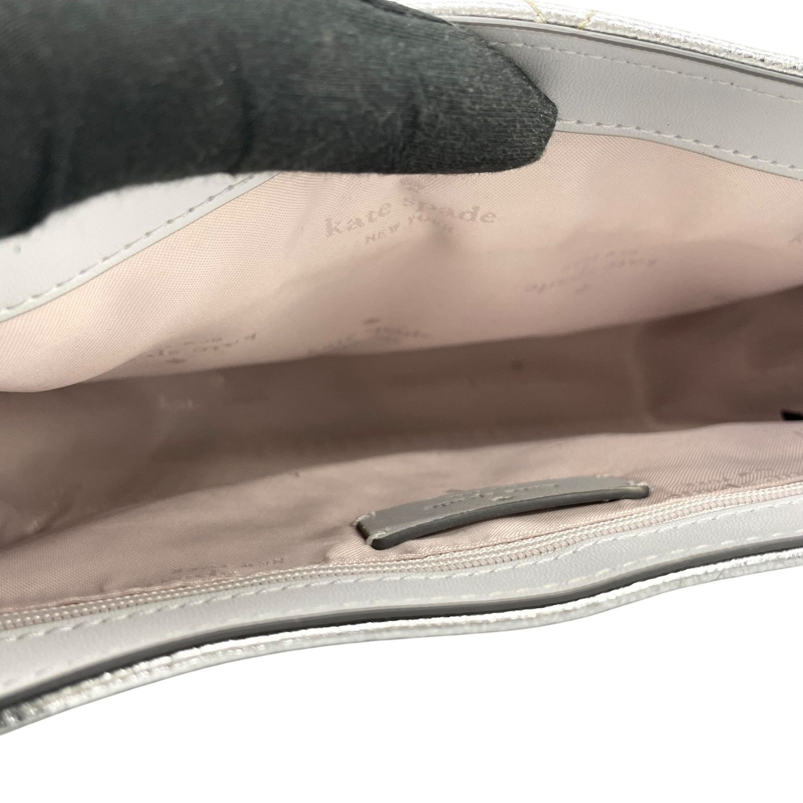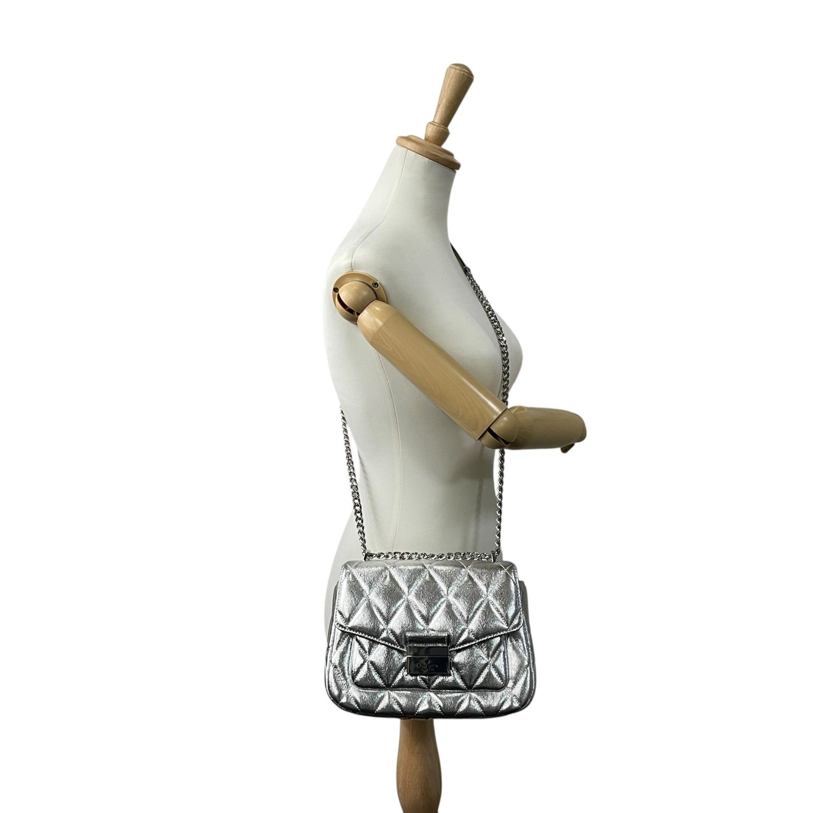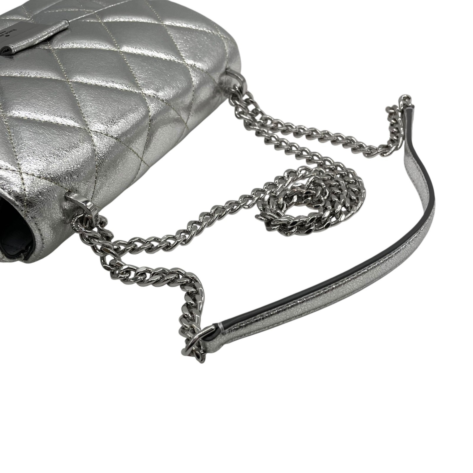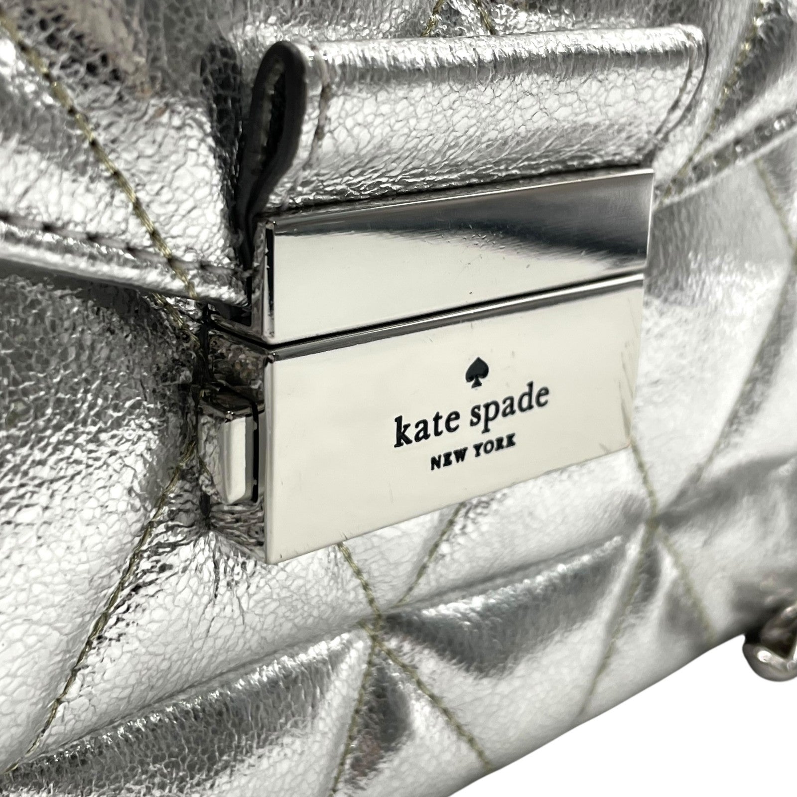 美品 kate spade ケイトスペード キャリー メタリック キルテッド レザー スモール フラップ ショルダーバッグ シルバー チェーンショルダー レディース E5
