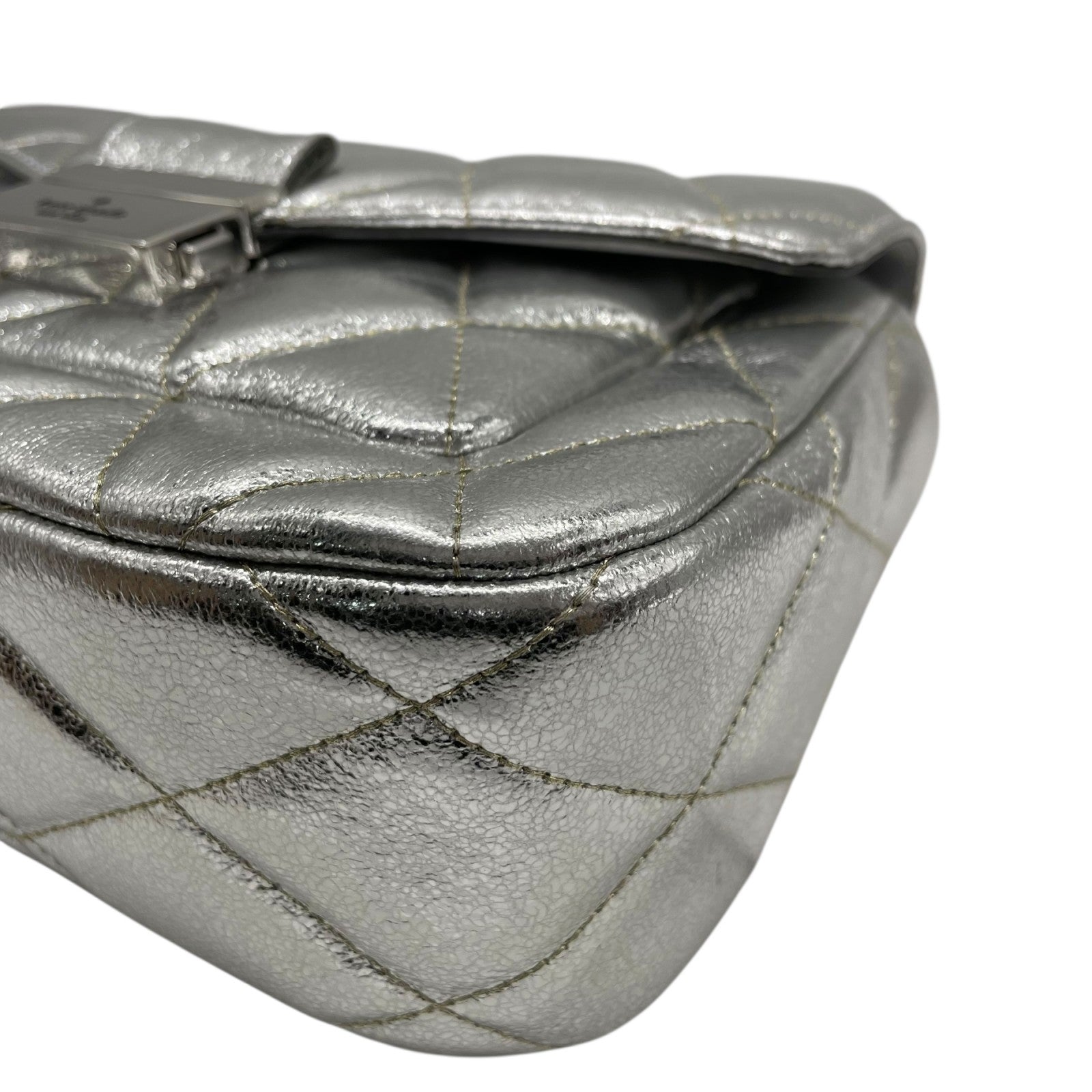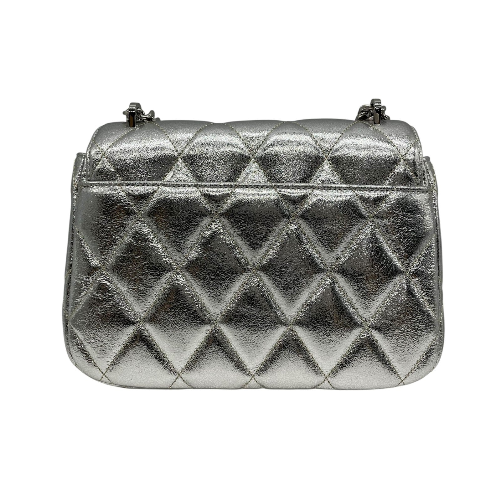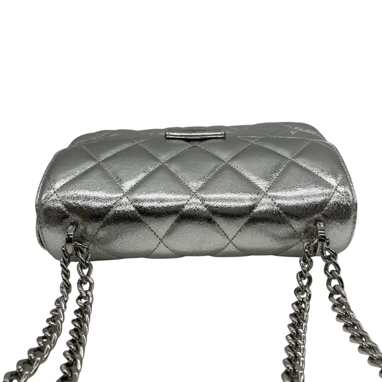 美品 kate spade ケイトスペード キャリー メタリック キルテッド レザー スモール フラップ ショルダーバッグ シルバー チェーンショルダー レディース E5