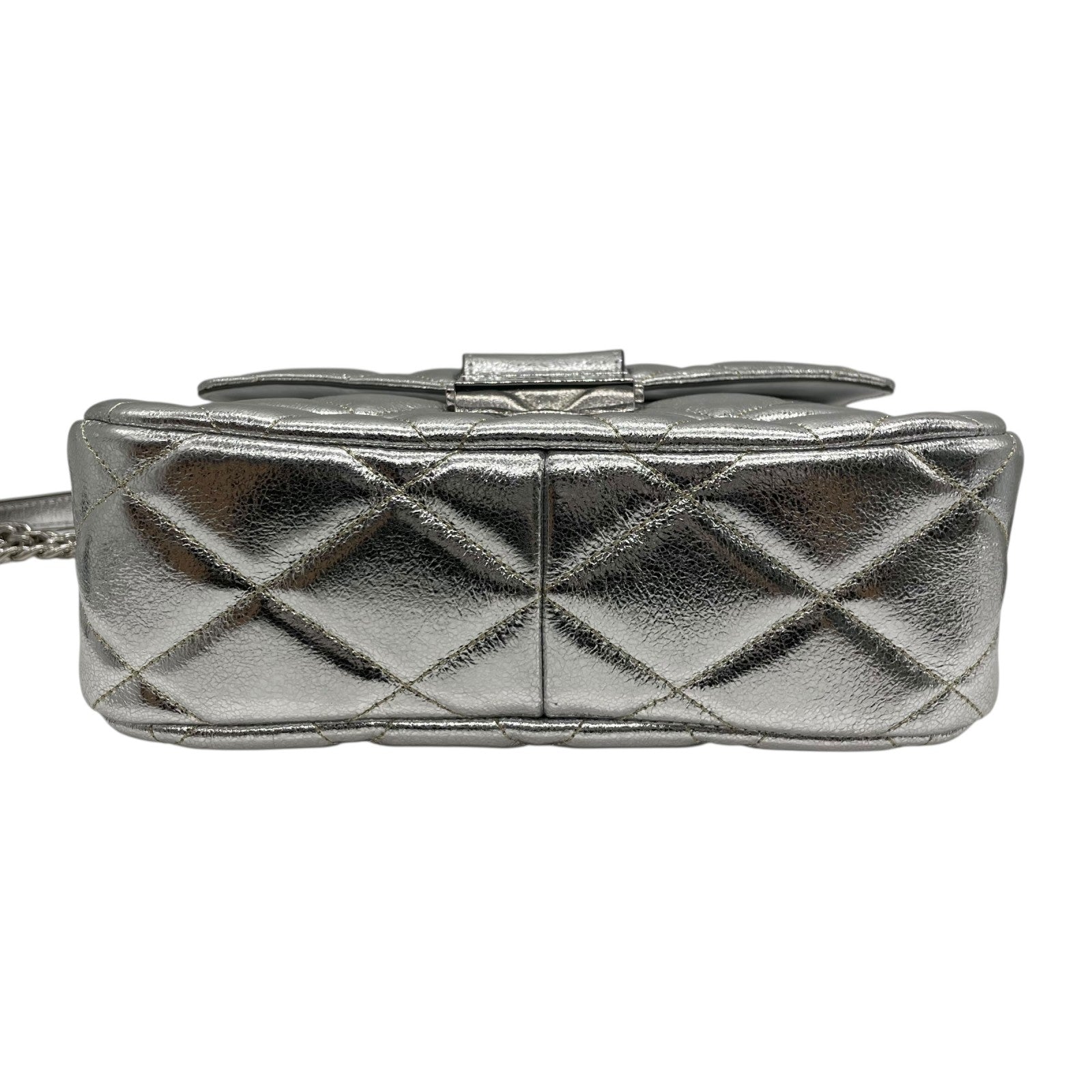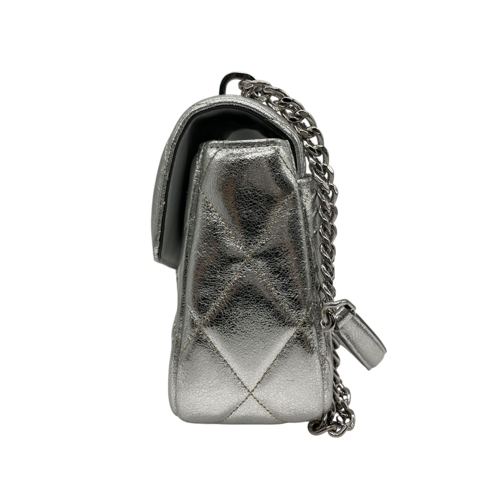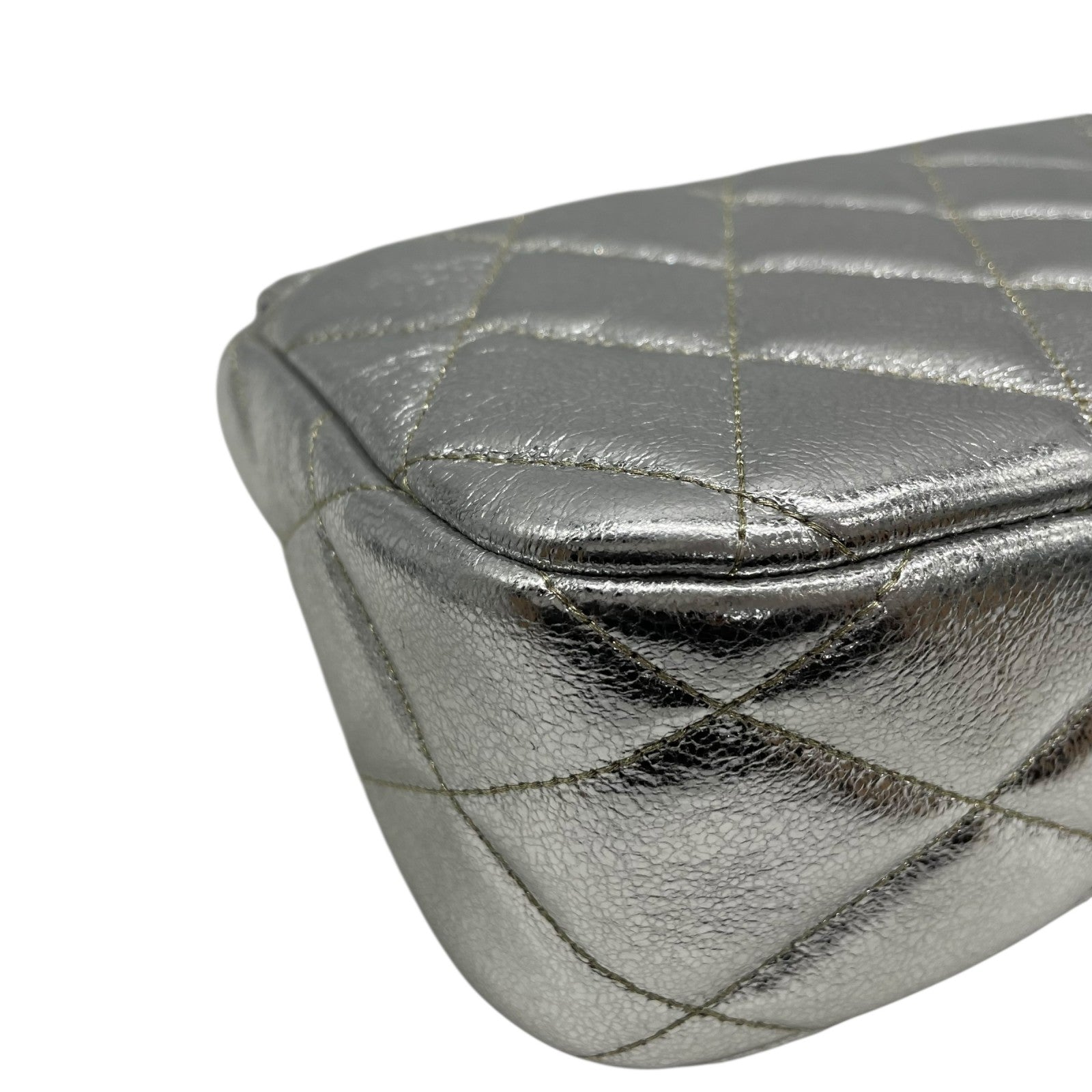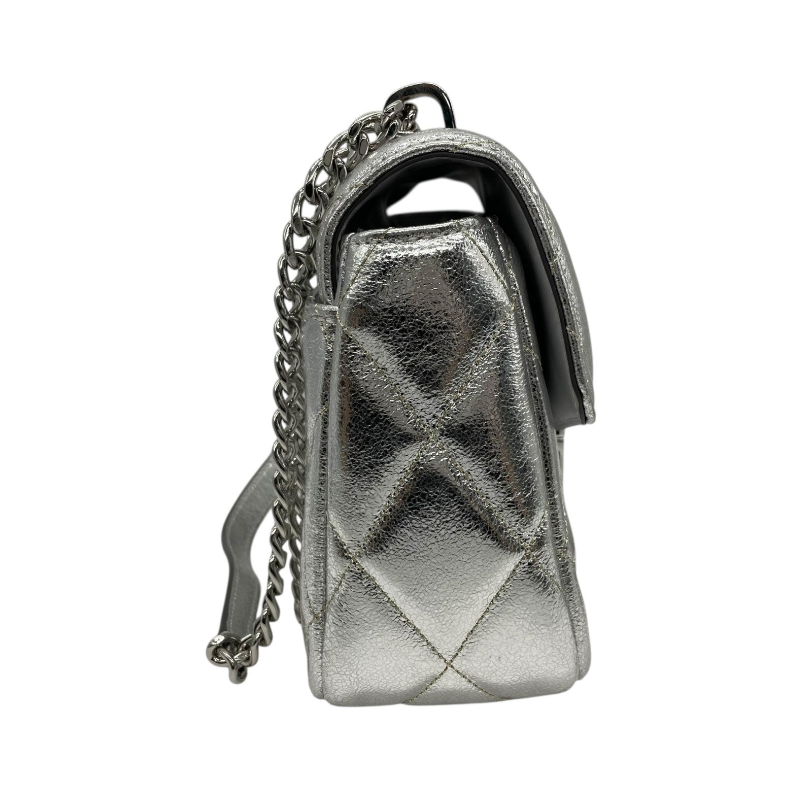 美品 kate spade ケイトスペード キャリー メタリック キルテッド レザー スモール フラップ ショルダーバッグ シルバー チェーンショルダー レディース E5
