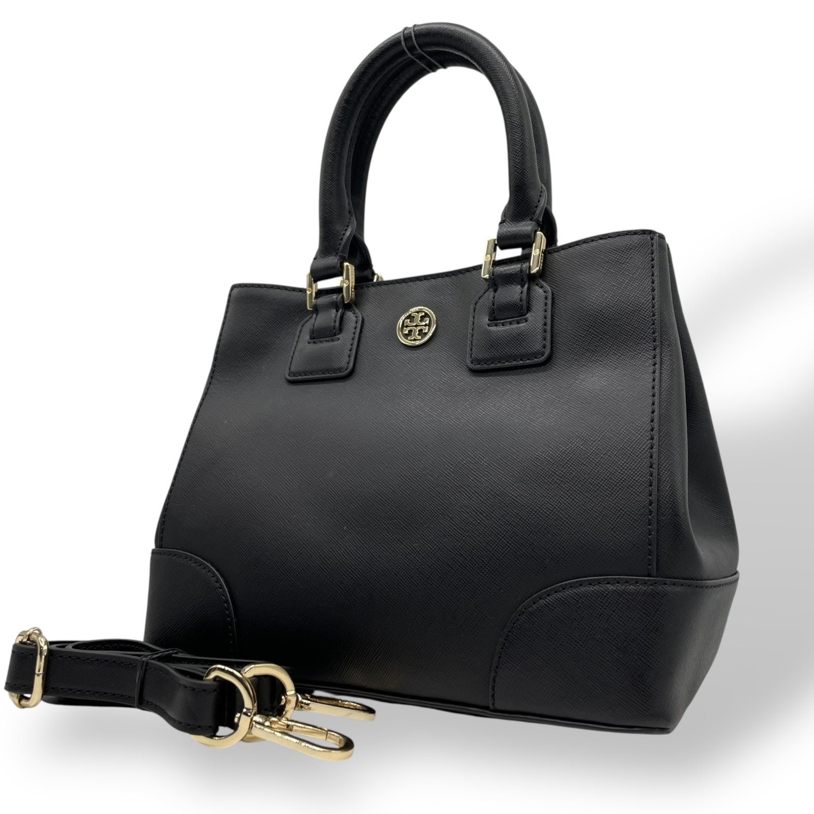 美品 Tory Burch トリーバーチ 2WAY ハンドバッグ ショルダーバッグ 黒 ブラック レザー ロビンソン ゴールド金具 ロゴ 斜め掛け 手提げ レディース ミニバッグ E5