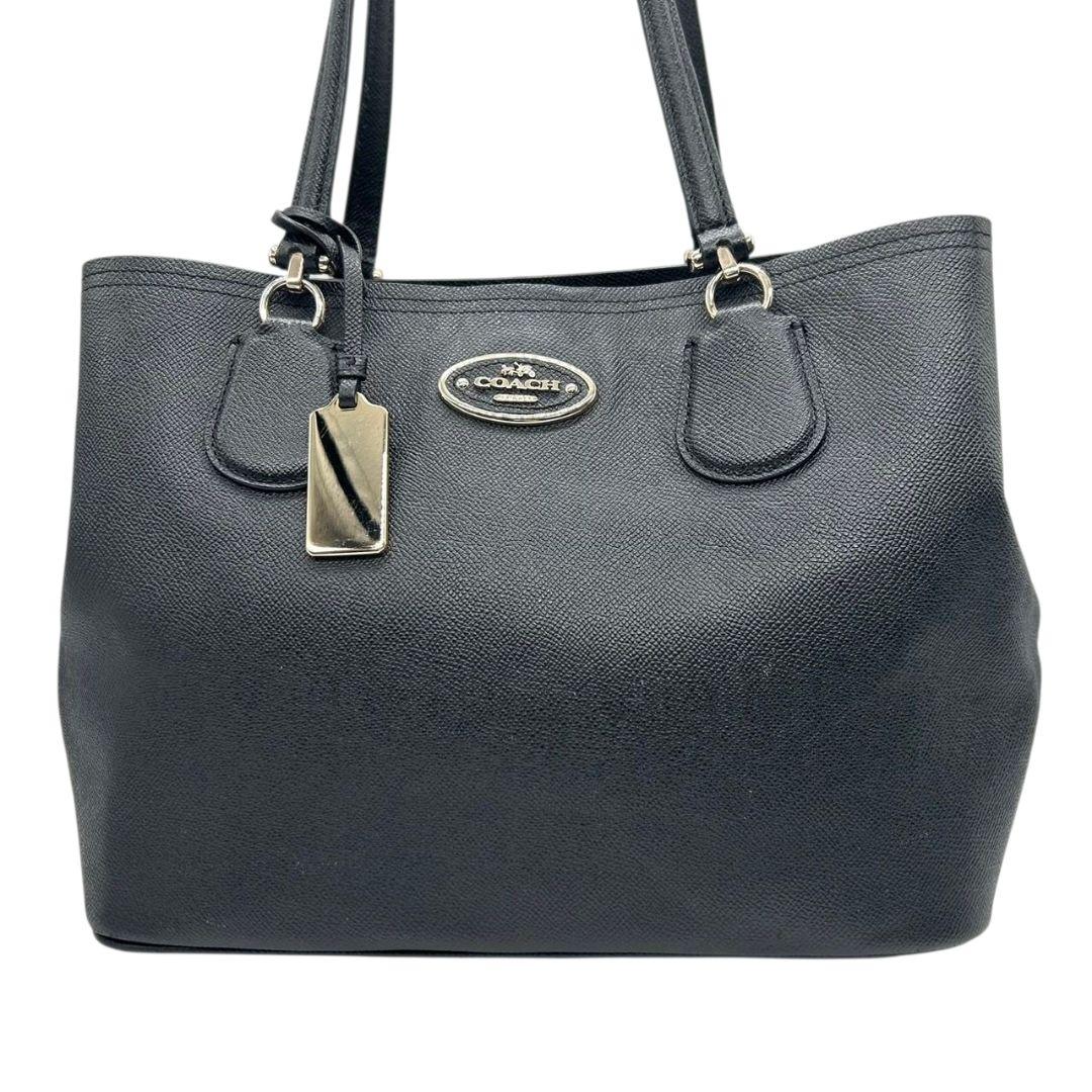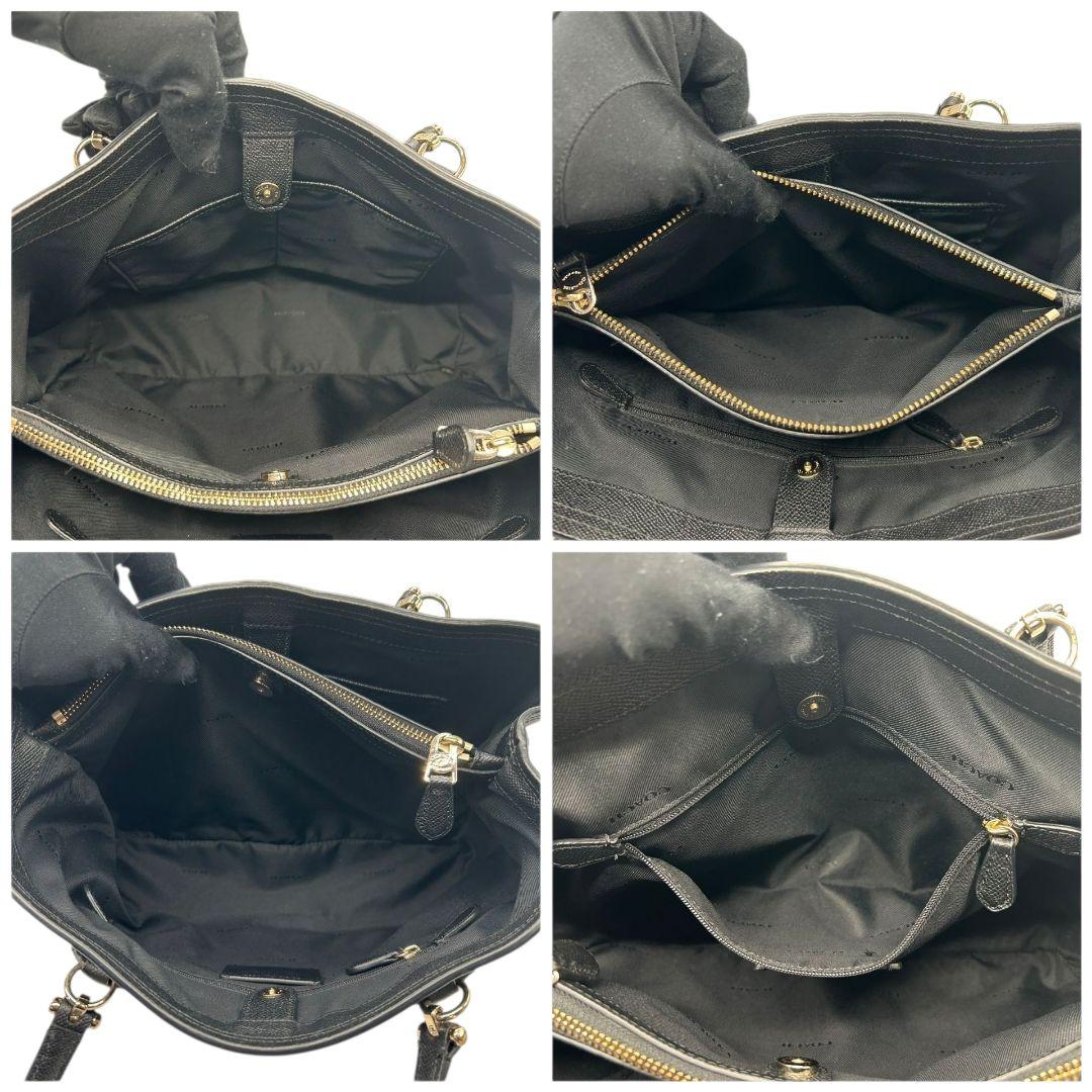 コーチ COACH トートバッグ 黒 ブラック ロゴプレート ワンショルダー A4収納 自立可 ハンドバッグ レザー 本革 ゴールド金具 ロゴタグ オシャレ レディース