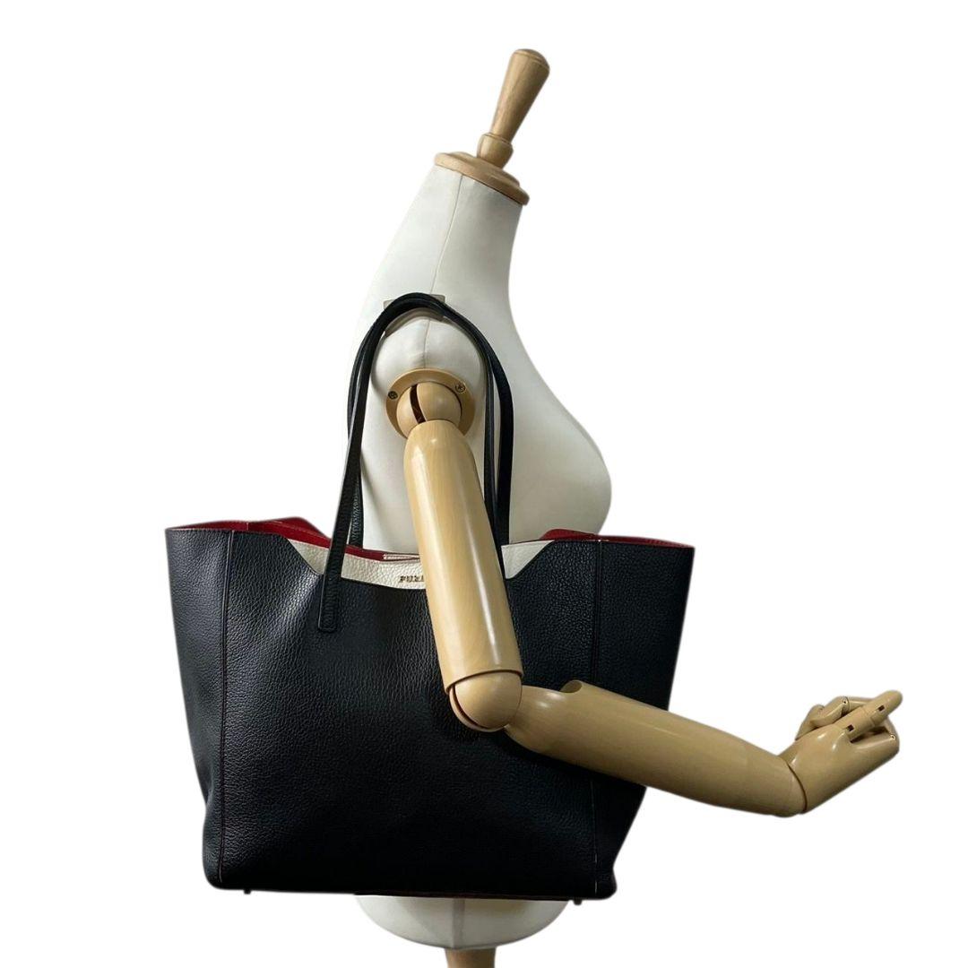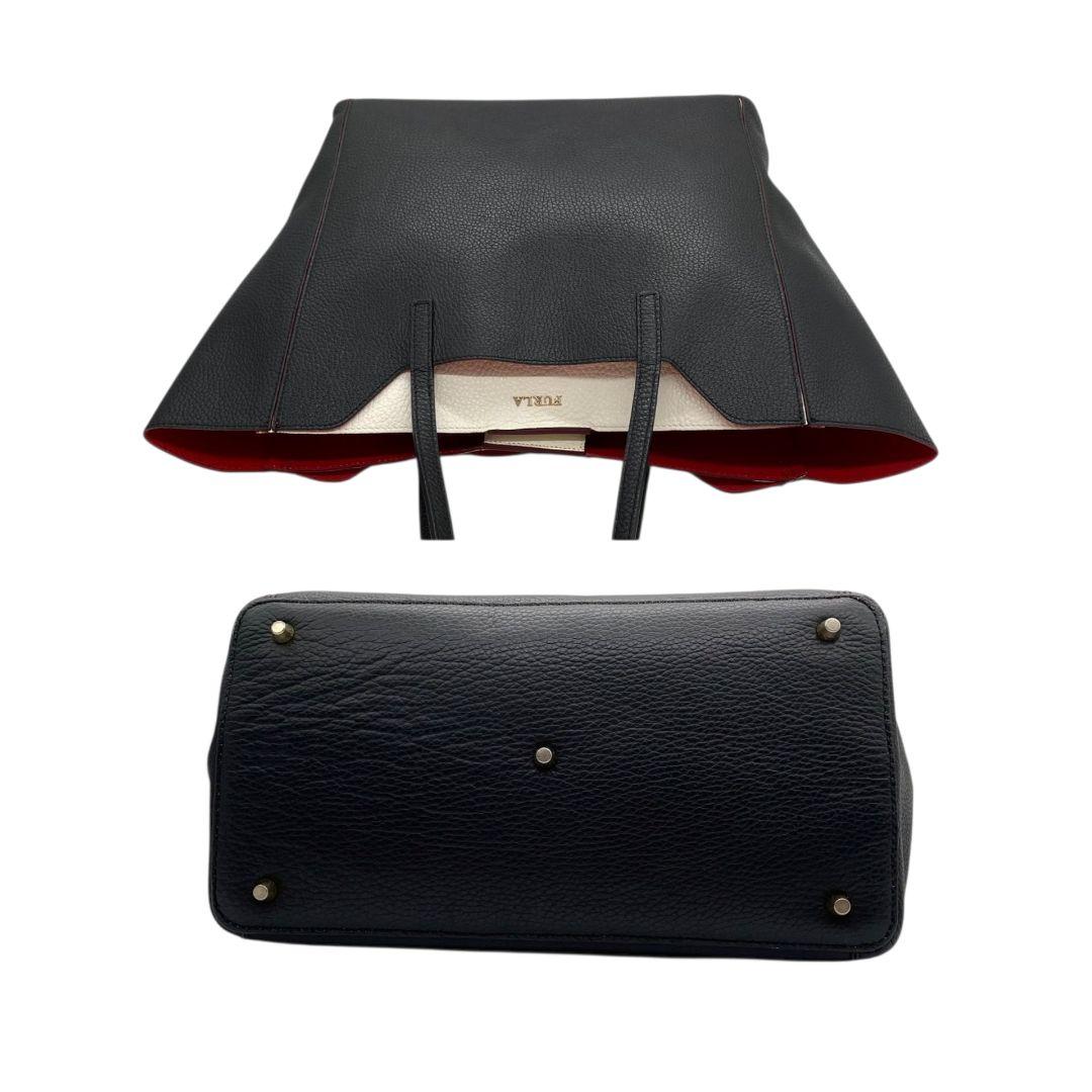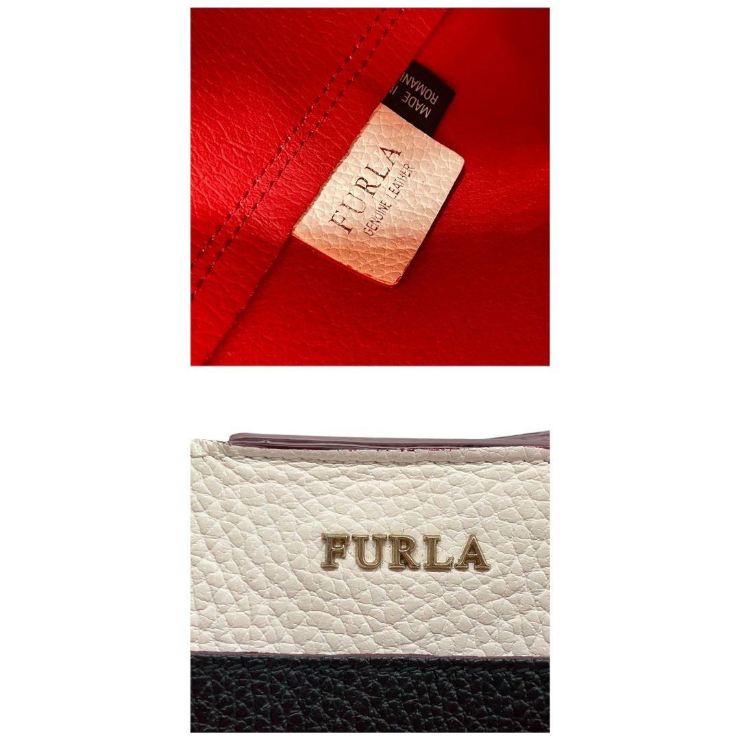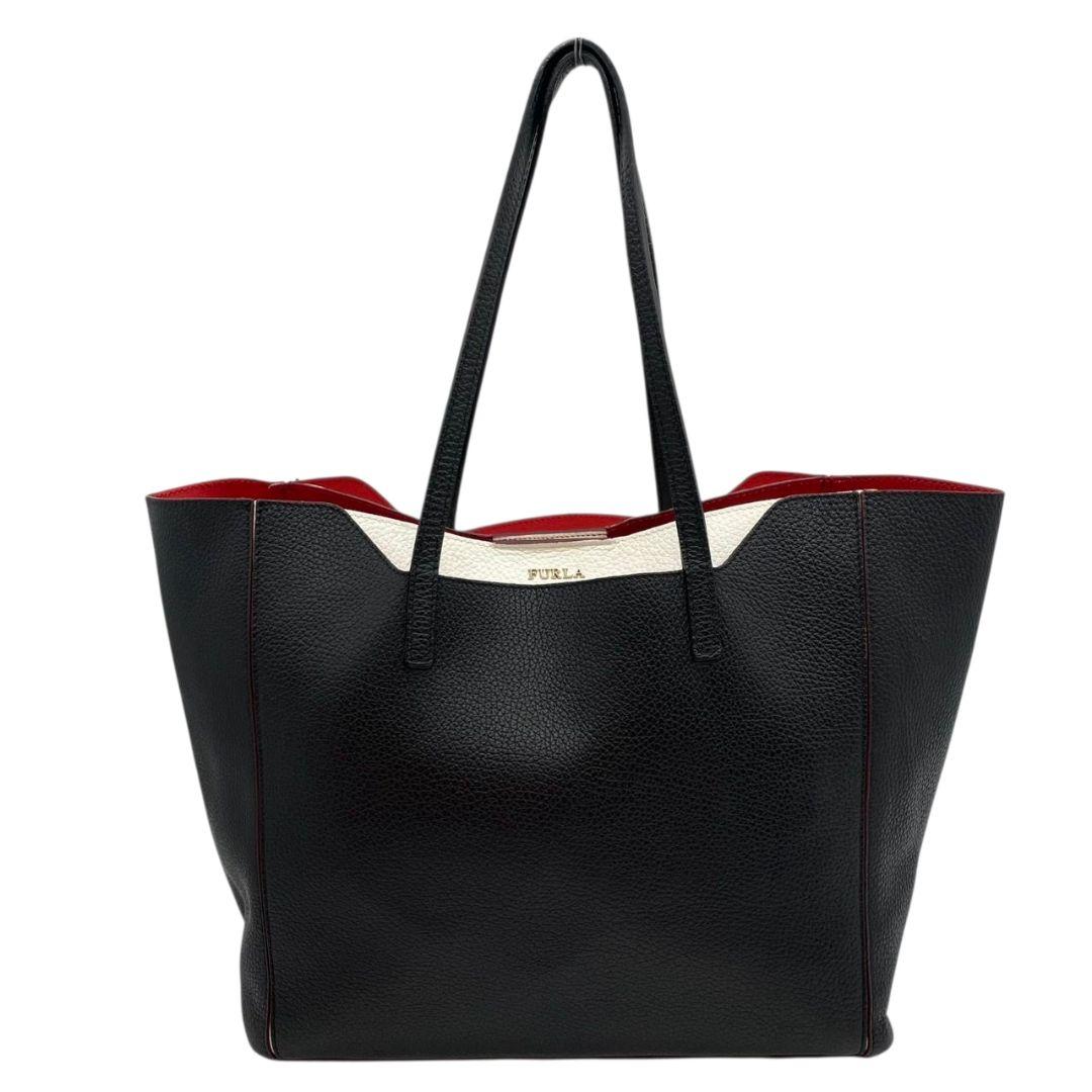 フルラ トートバッグ 黒 ロゴプレート A4収納 ワンショル レザー s80 ハンドバッグ 本革 肩掛け可 肩かけ可 ブラック ホワイト ゴールド金具 FURLA