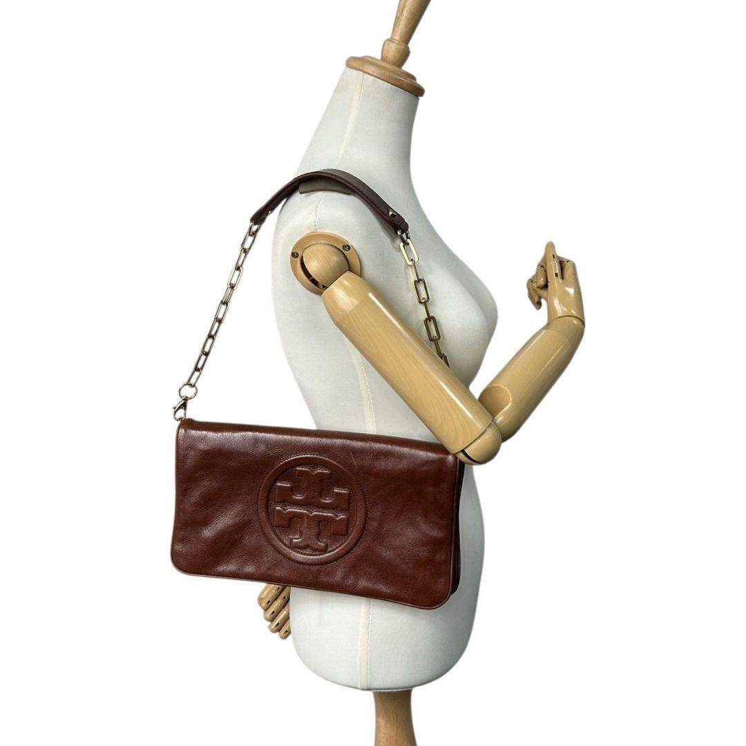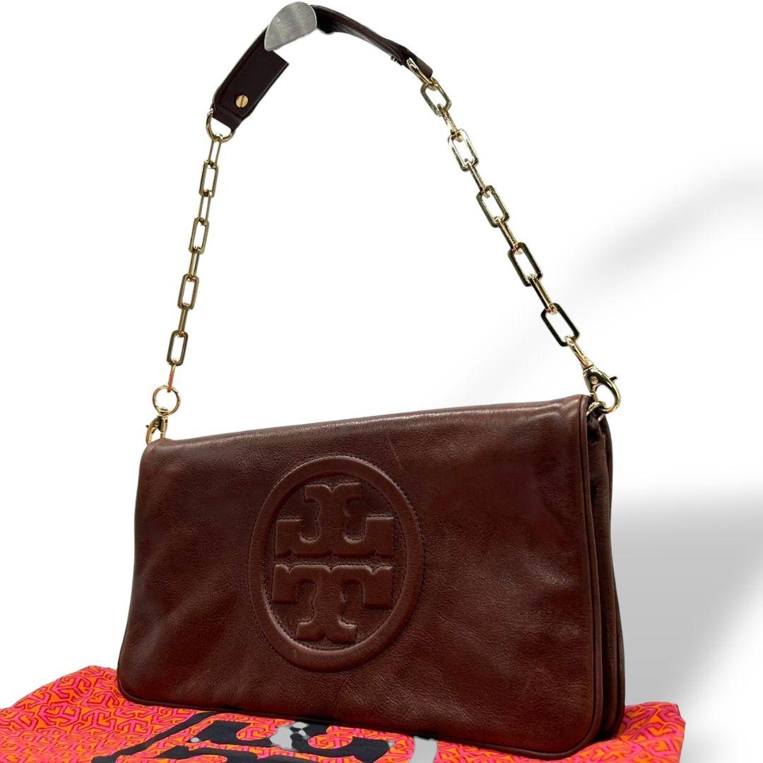 トリーバーチ ショルダーバッグ ブラウン マックグロー チェーン デカロゴ レザー 本革 ハンドバッグ クラッチバッグ ワンショルダー ゴールド金具 フラップ TORY BURCH オシャレ 本物保証 鑑定済 スピード発送