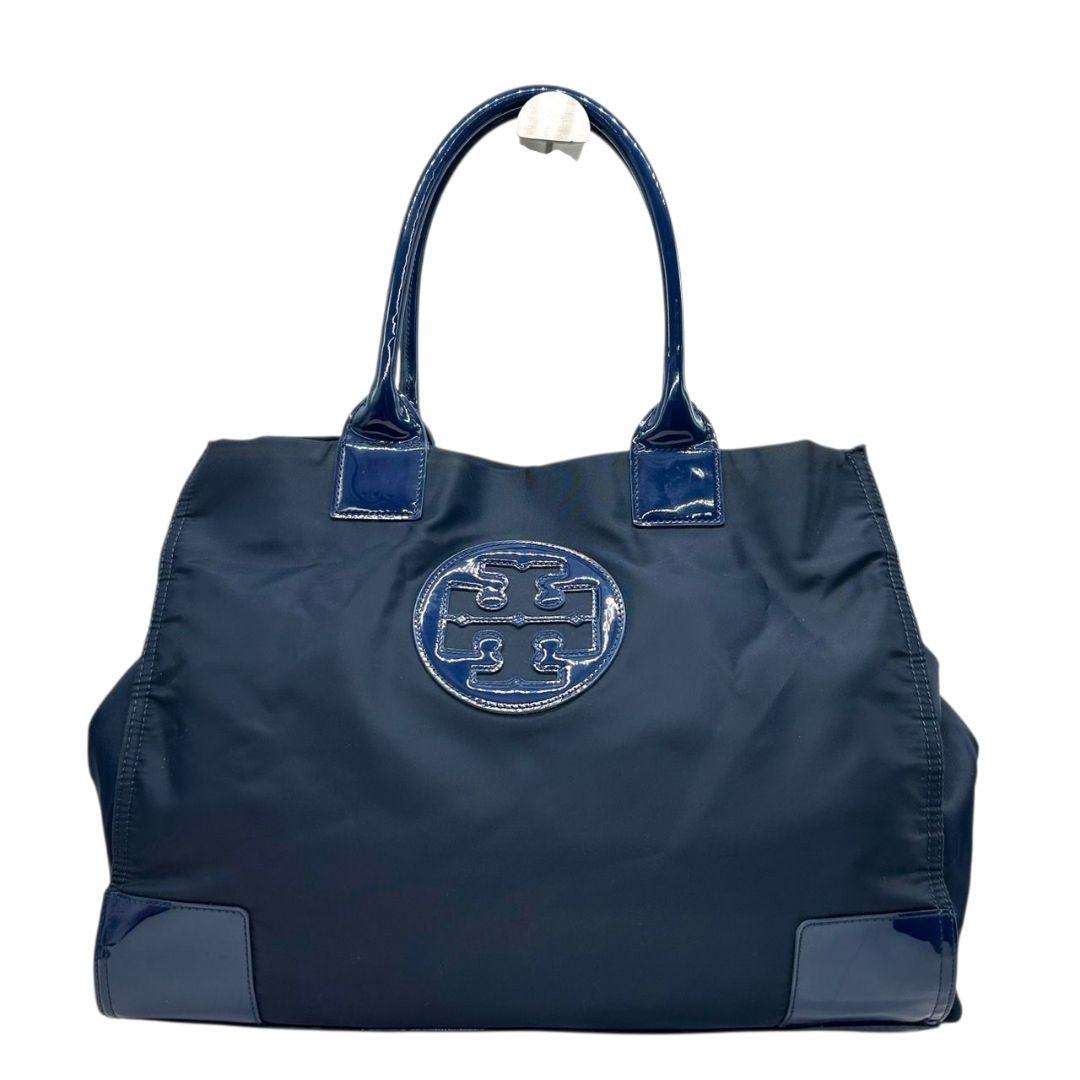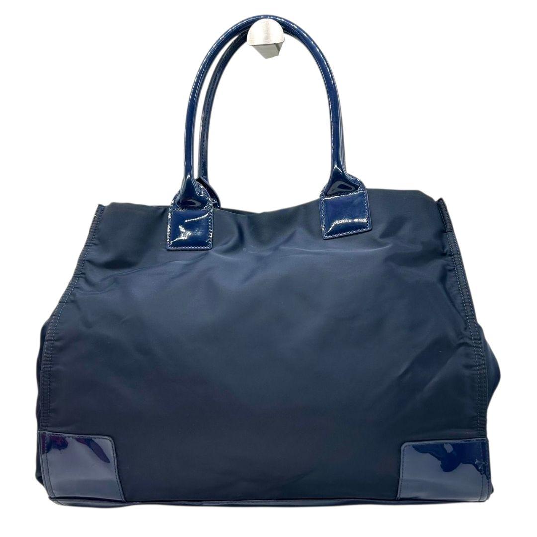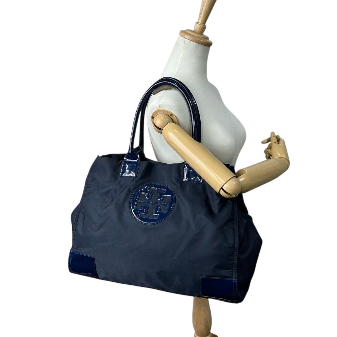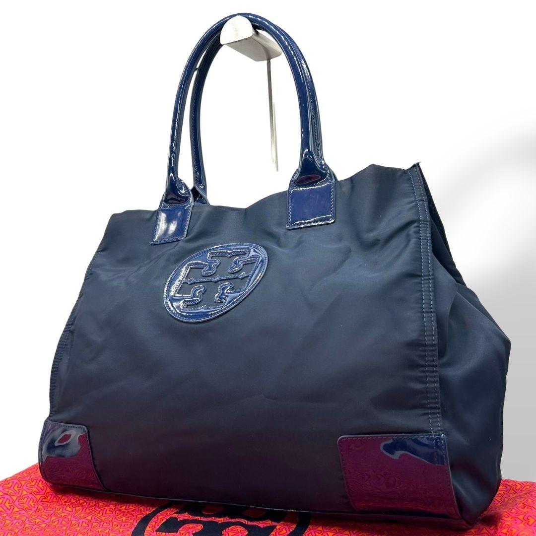 トリーバーチ トートバッグ 紺 デカロゴ A4収納 ワンショルダー H ハンドバッグ 肩掛け可 肩かけ可 ネイビー エナメル ナイロン TORY BURCH
