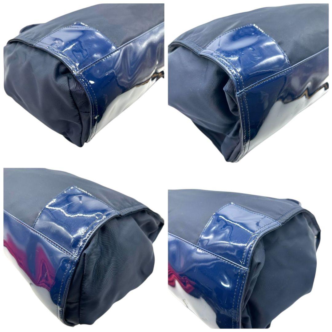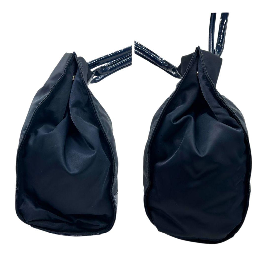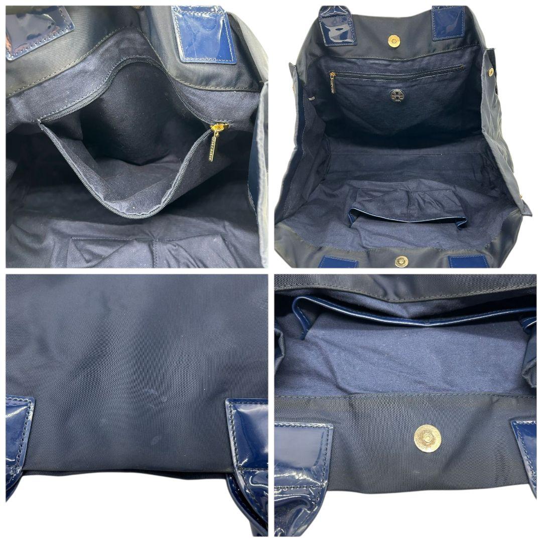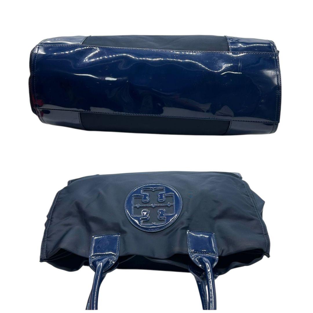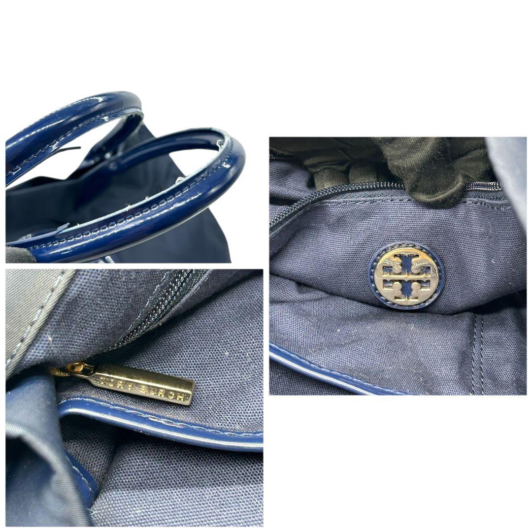 トリーバーチ トートバッグ 紺 デカロゴ A4収納 ワンショルダー H ハンドバッグ 肩掛け可 肩かけ可 ネイビー エナメル ナイロン TORY BURCH