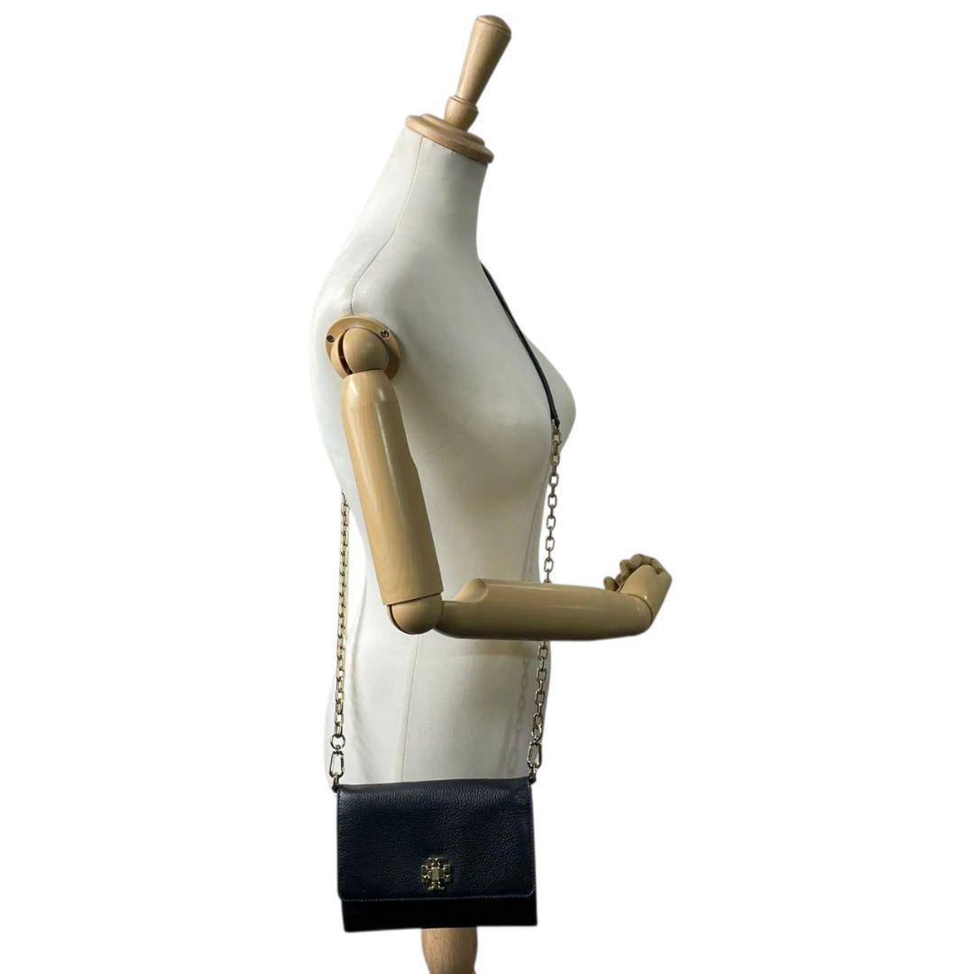 トリーバーチ ショルダーバッグ 黒 ロゴ フラップ レザー チェーン s5 本革 斜め掛け可 ブラック ゴールド金具 TORY BURCH オシャレ