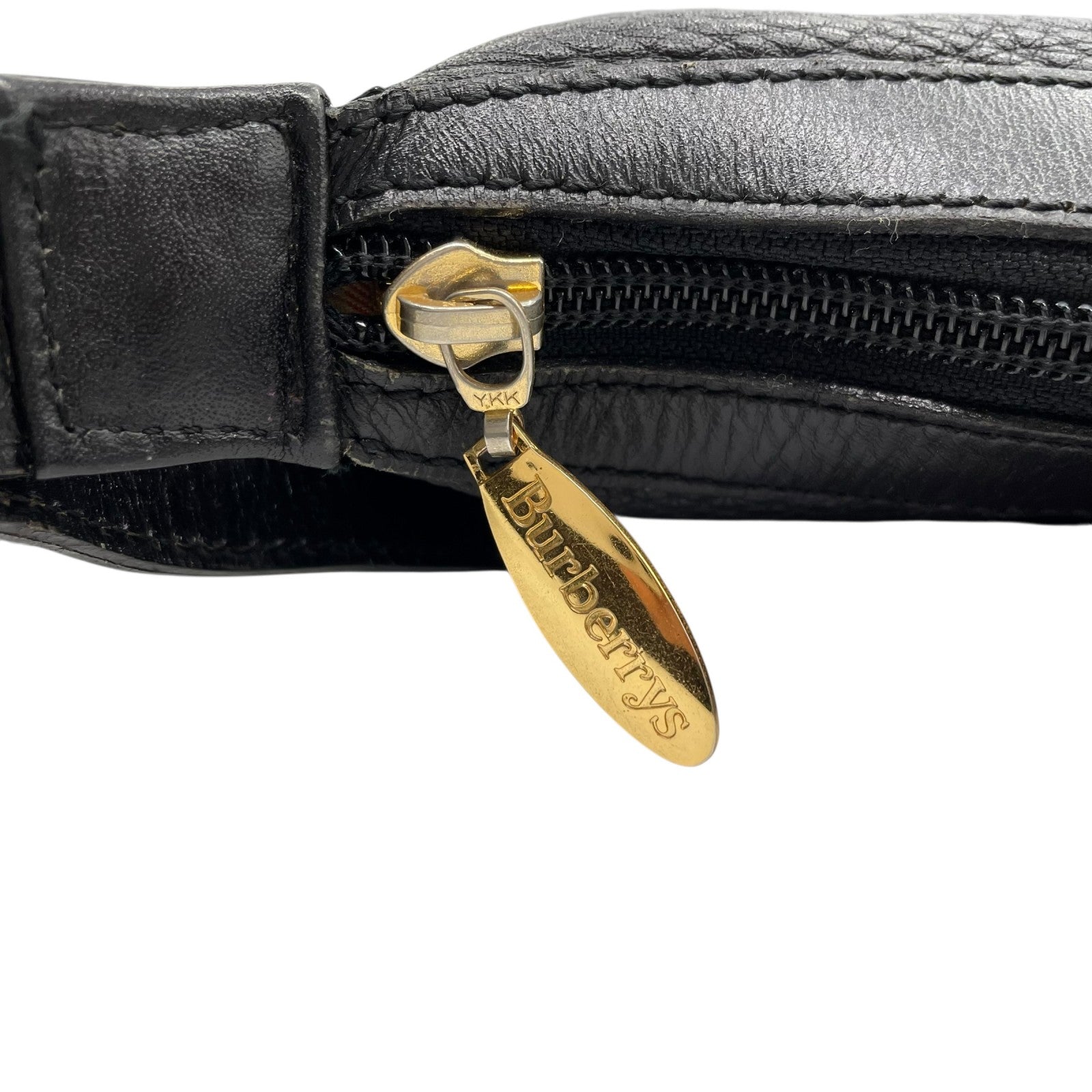 美品 BURBERRY バーバリー ショルダーバッグ ラウンドトート 黒 ブラック レザー ゴールド金具 ノバチェック 斜め掛け可 レディース S97