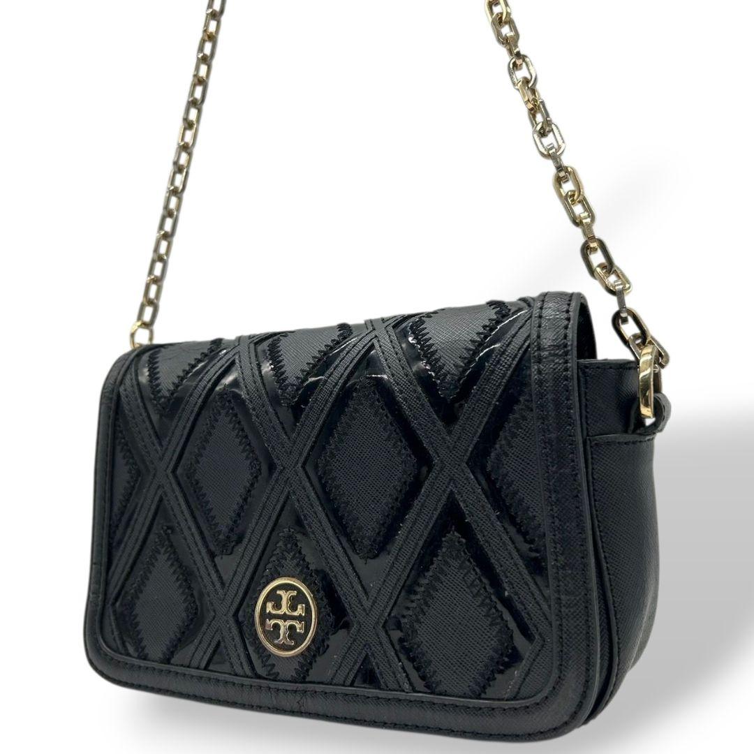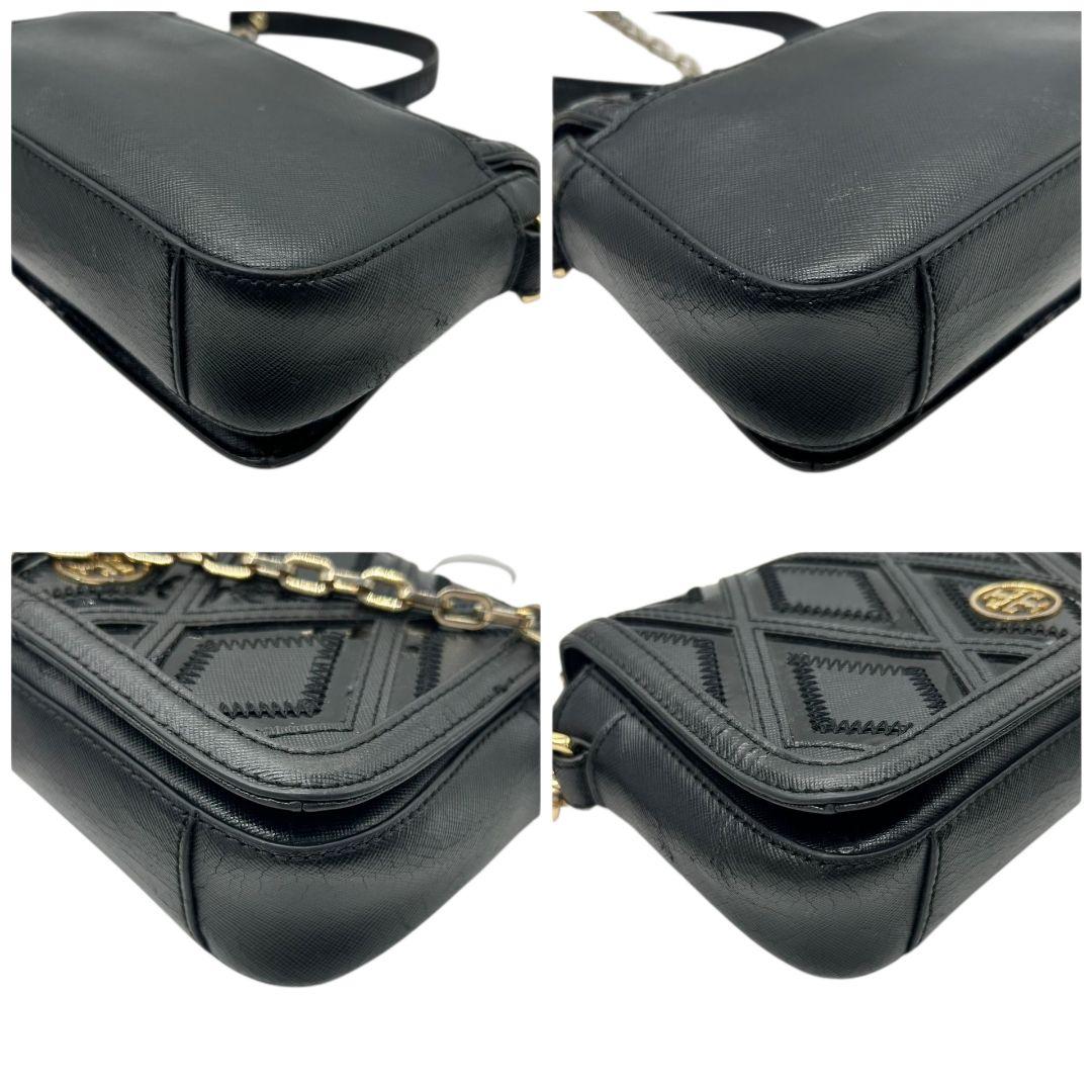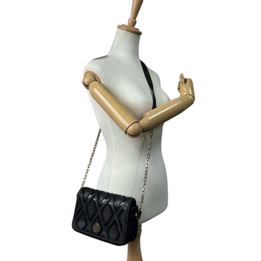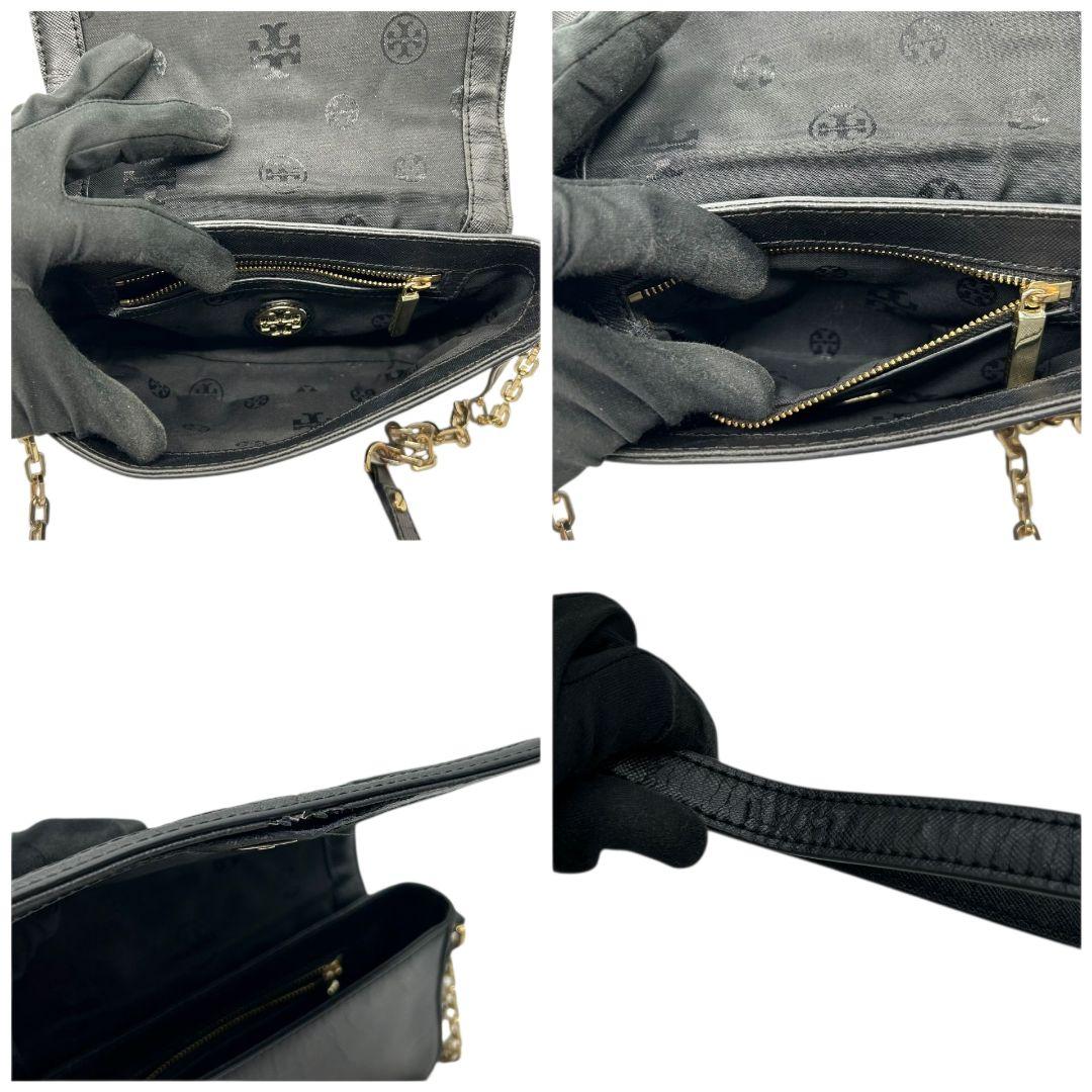 トリーバーチ フレミング ショルダーバッグ ブラック チェーン レザー フラップ ロゴプレート ゴールド金具 斜め掛け可 クラッチバッグ ハンドバッグ 本革 鑑定済 スピード発送