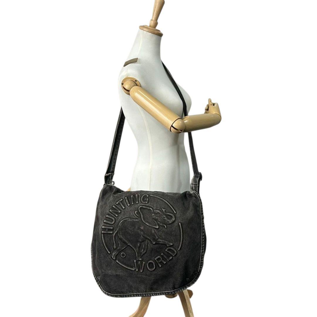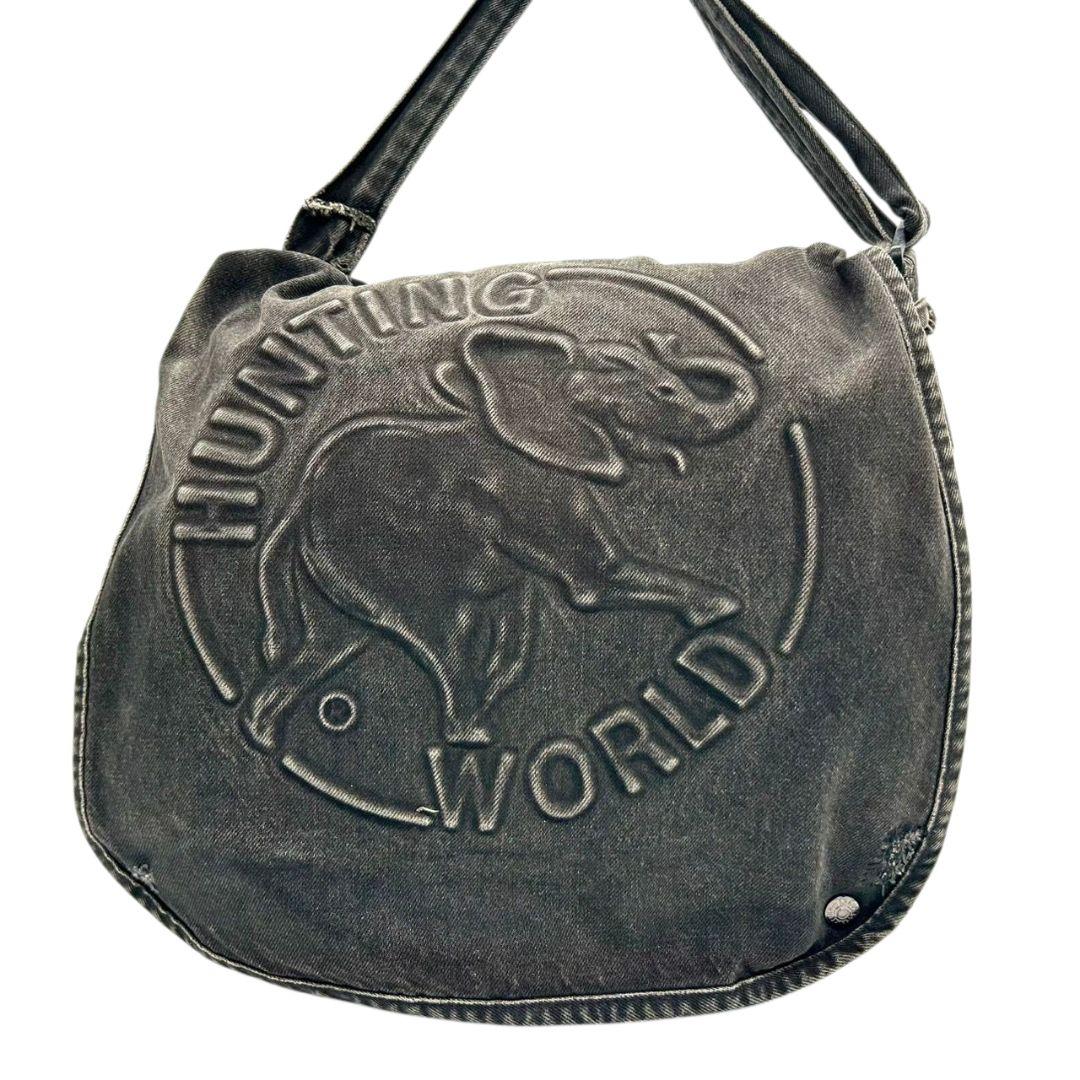 ハンティングワールド ショルダーバッグ 黒 デカロゴ デニム T8 A4収納 斜め掛け可 ワンショルダー ハンドバッグ トートバッグ ブラック グレー アメリカ製 HUNTING WORLD