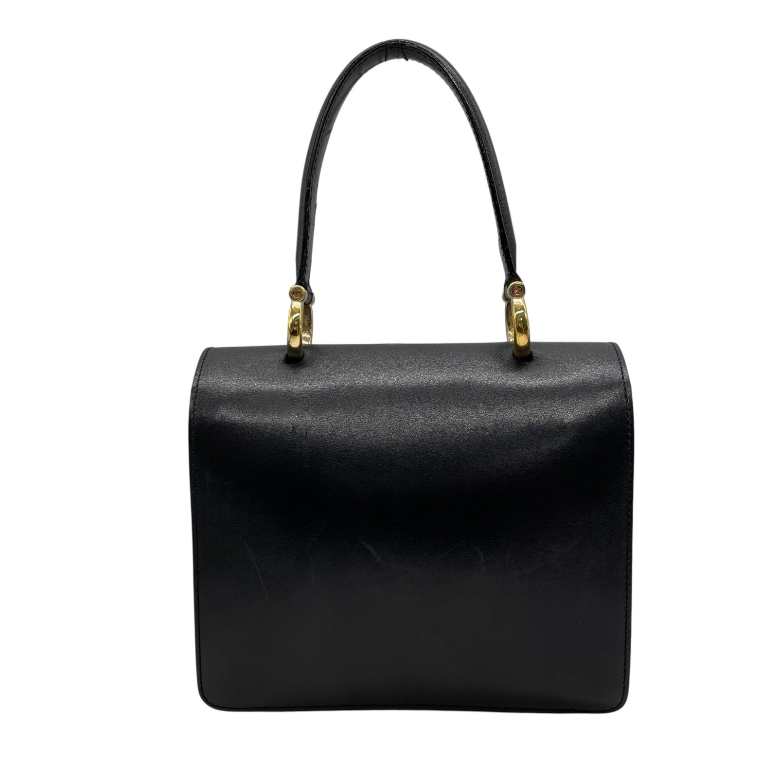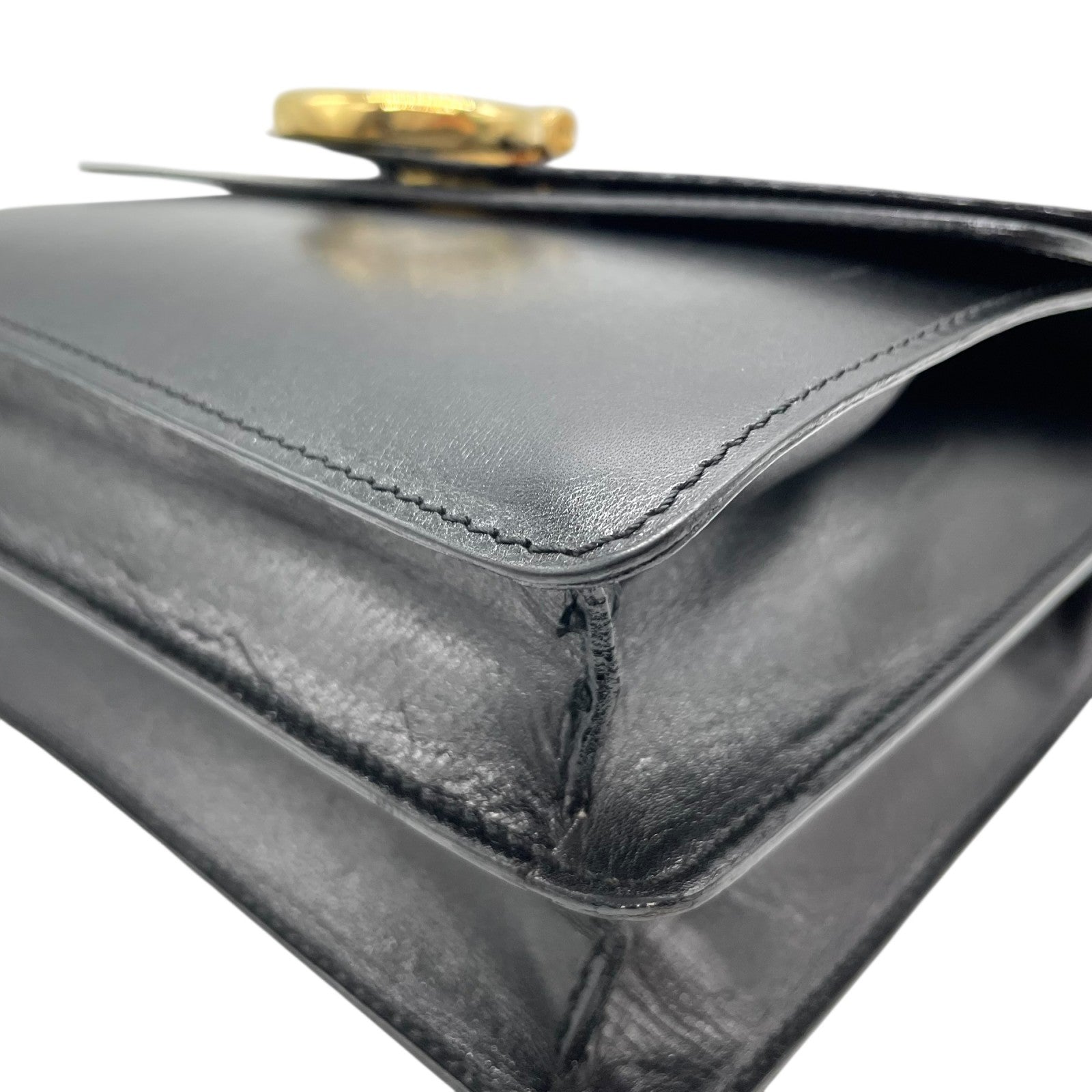 美品 CELINE セリーヌ ハンドバッグ フォーマル 黒 ブラック レザー ゴールド金具 ダブルフラップ Wフラップ トップハンドル 手提げ ロゴ レディース ヴィンテージ オールドセリーヌ C