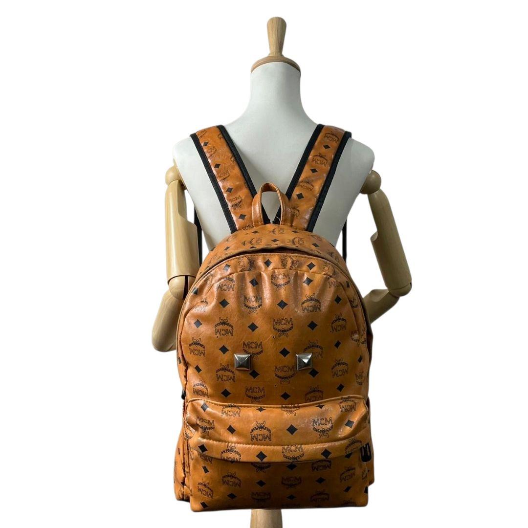エムシーエム MCM バックパック ヴィセトス柄 茶 ブラウン A4収納 スタッズ レザー 本革 リュックサック T2