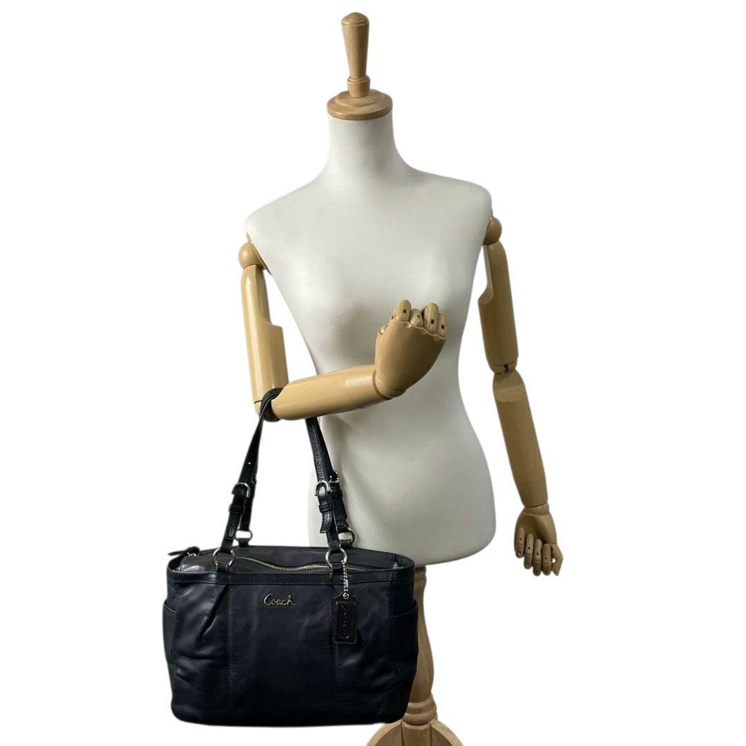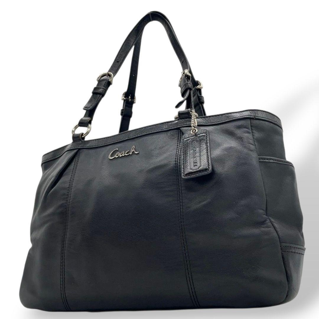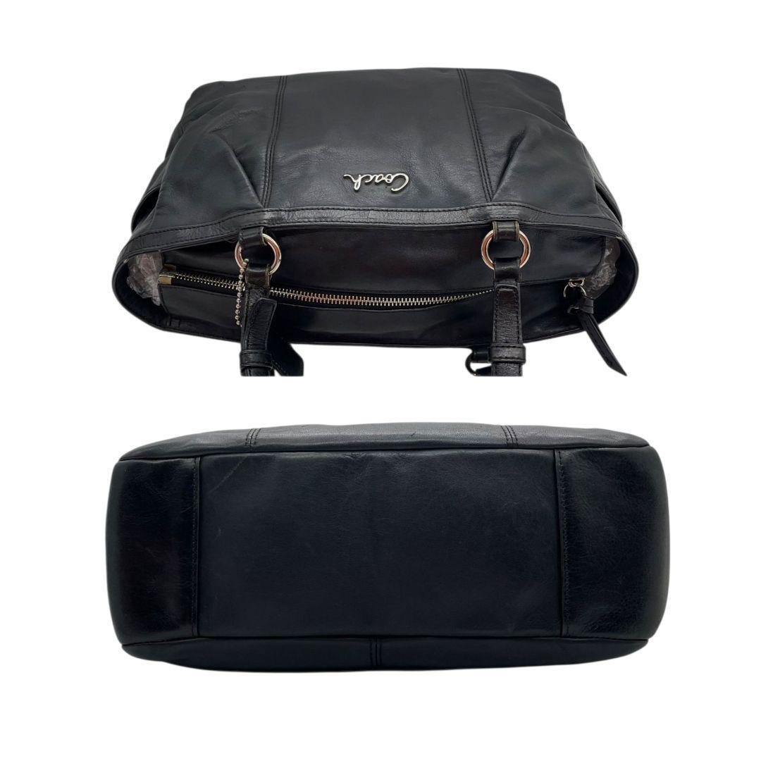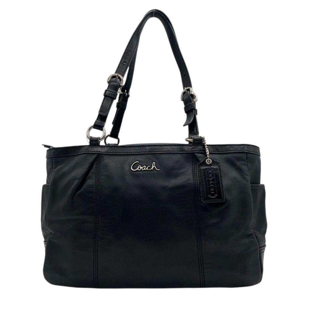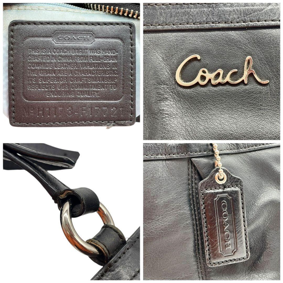 コーチ トートバッグ 黒 ワンショルダー レザー チャーム付き s79 ハンドバッグ 本革 肩掛け可 肩かけ可 ブラック シルバー金具 ロゴプレート ロゴタグ COACH F17721
