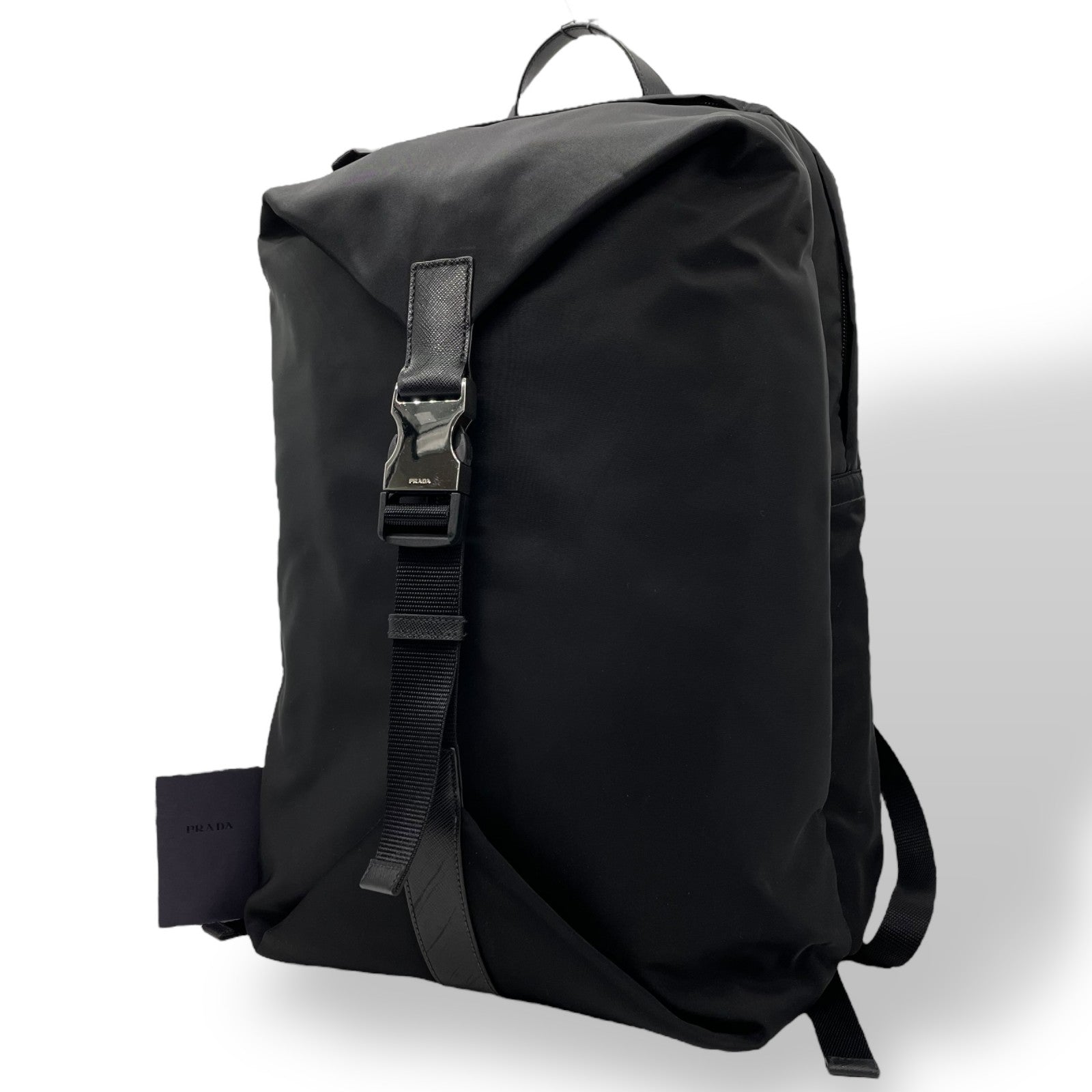 美品 PRADA プラダ リュックサック バッグパック リナイロン トライアングルロゴ 2VZ028 黒 NERO ブラック シルバー金具 メンズ C