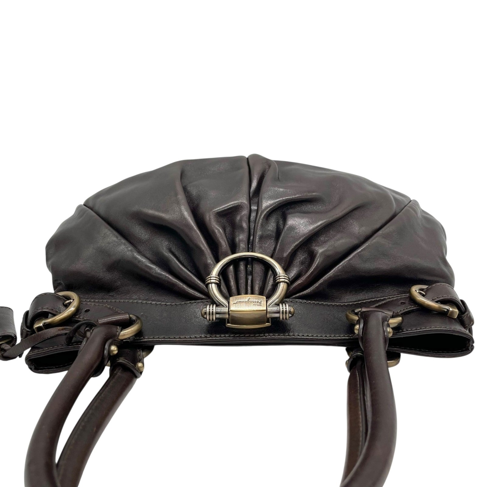 美品 Salvatore Ferragamo フェラガモ ガンチーニ ハンドバッグ レザー 茶 ダークブラウン マリッサ シルバー金具 クロシェット レディース 手提げ K6