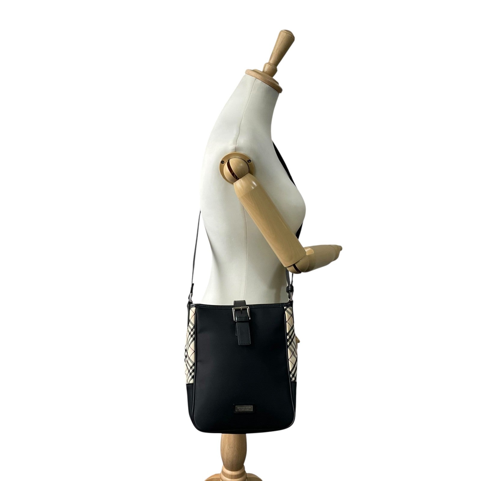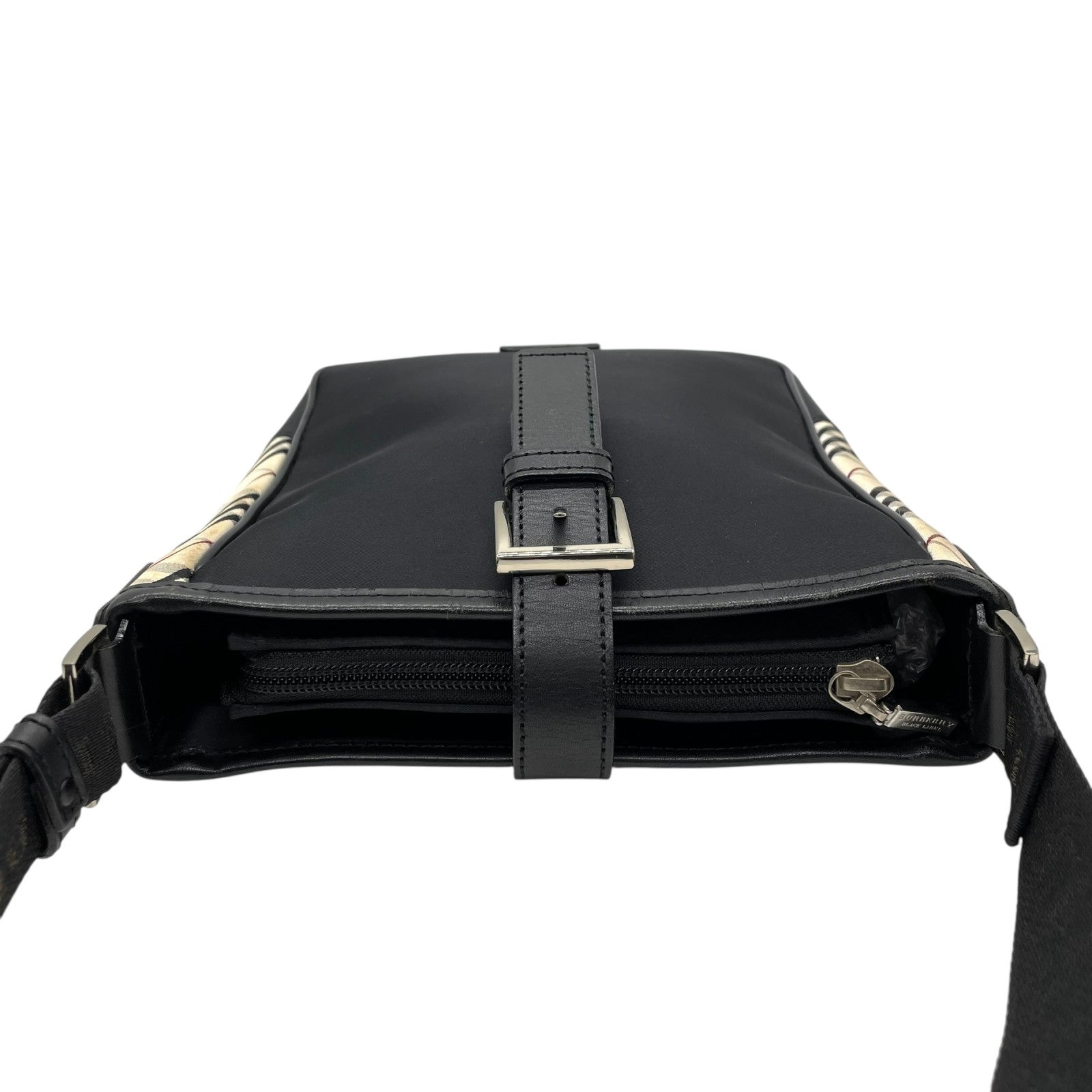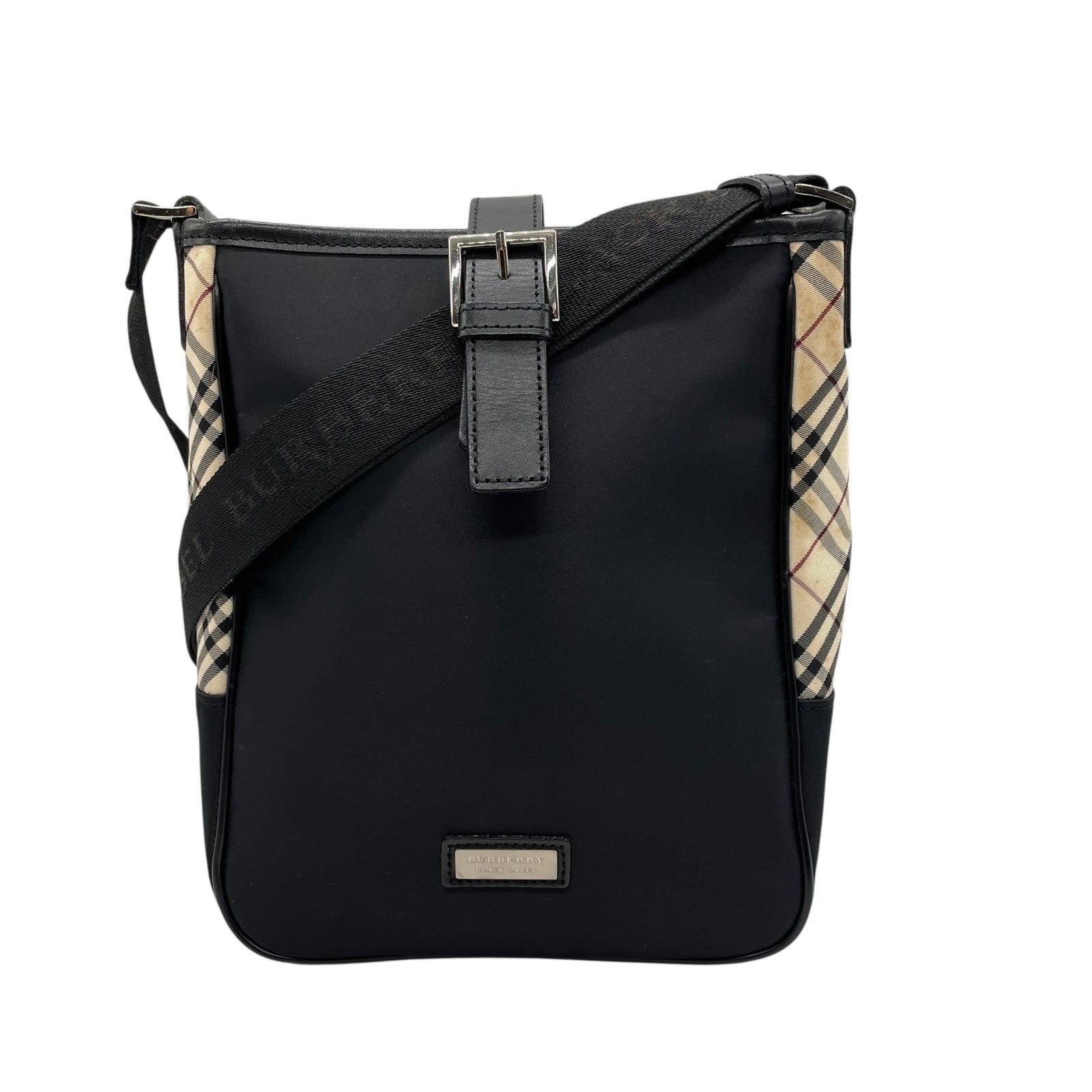 美品 BURBERRY BLACK LABEL バーバリー ショルダーバッグ ナイロン レザー ノバチェック ベージュ 黒 ブラック シルバー金具 斜め掛け メンズ レディース K11