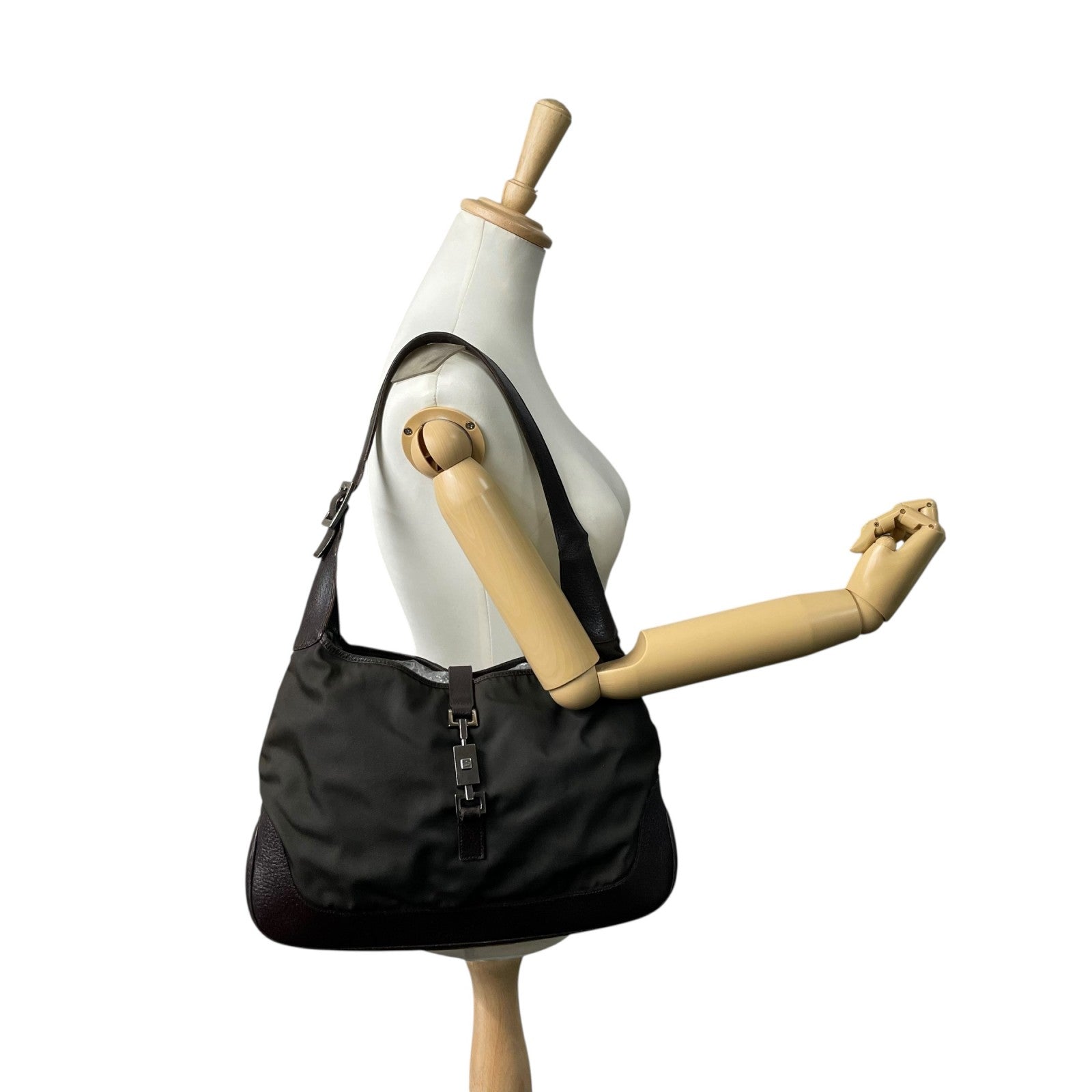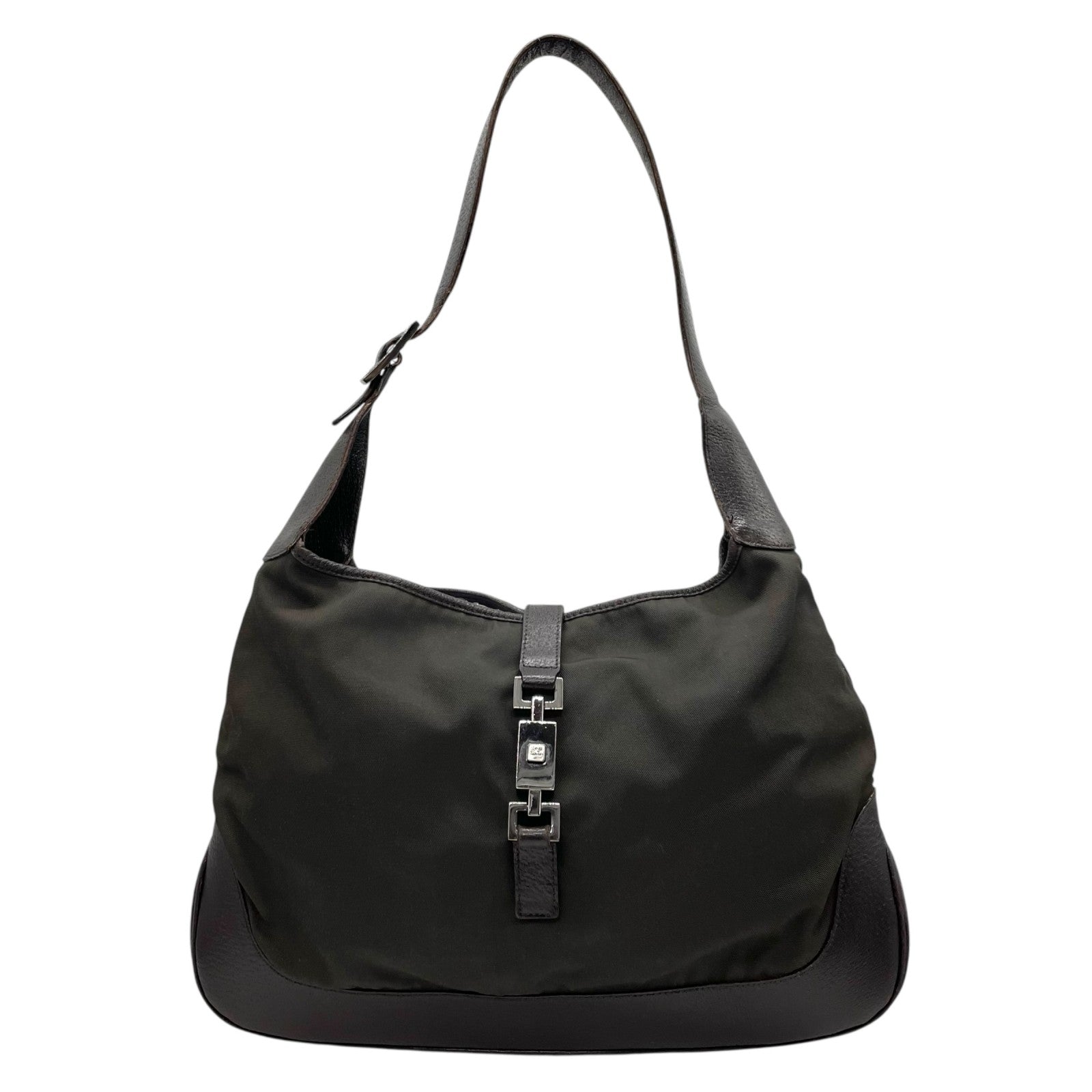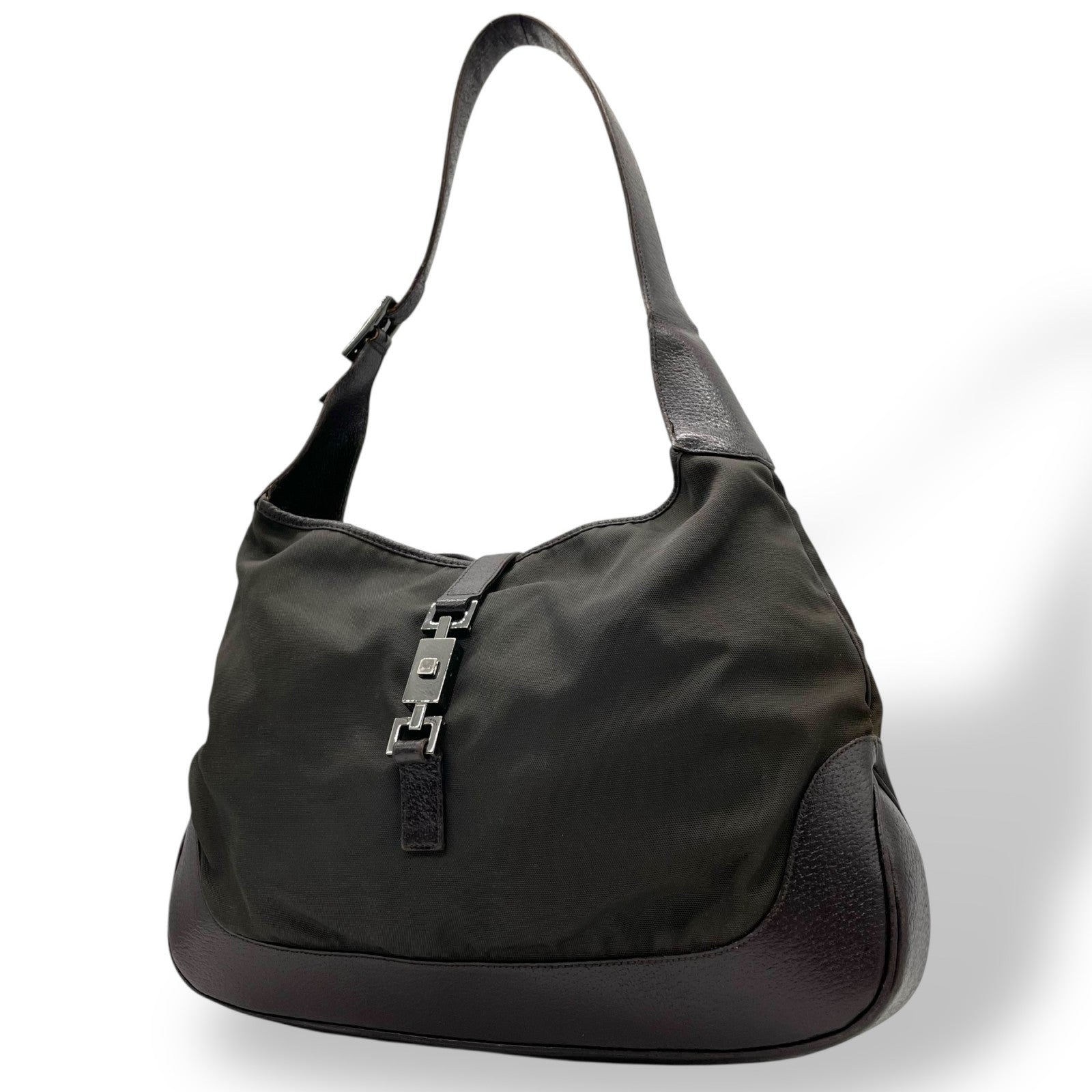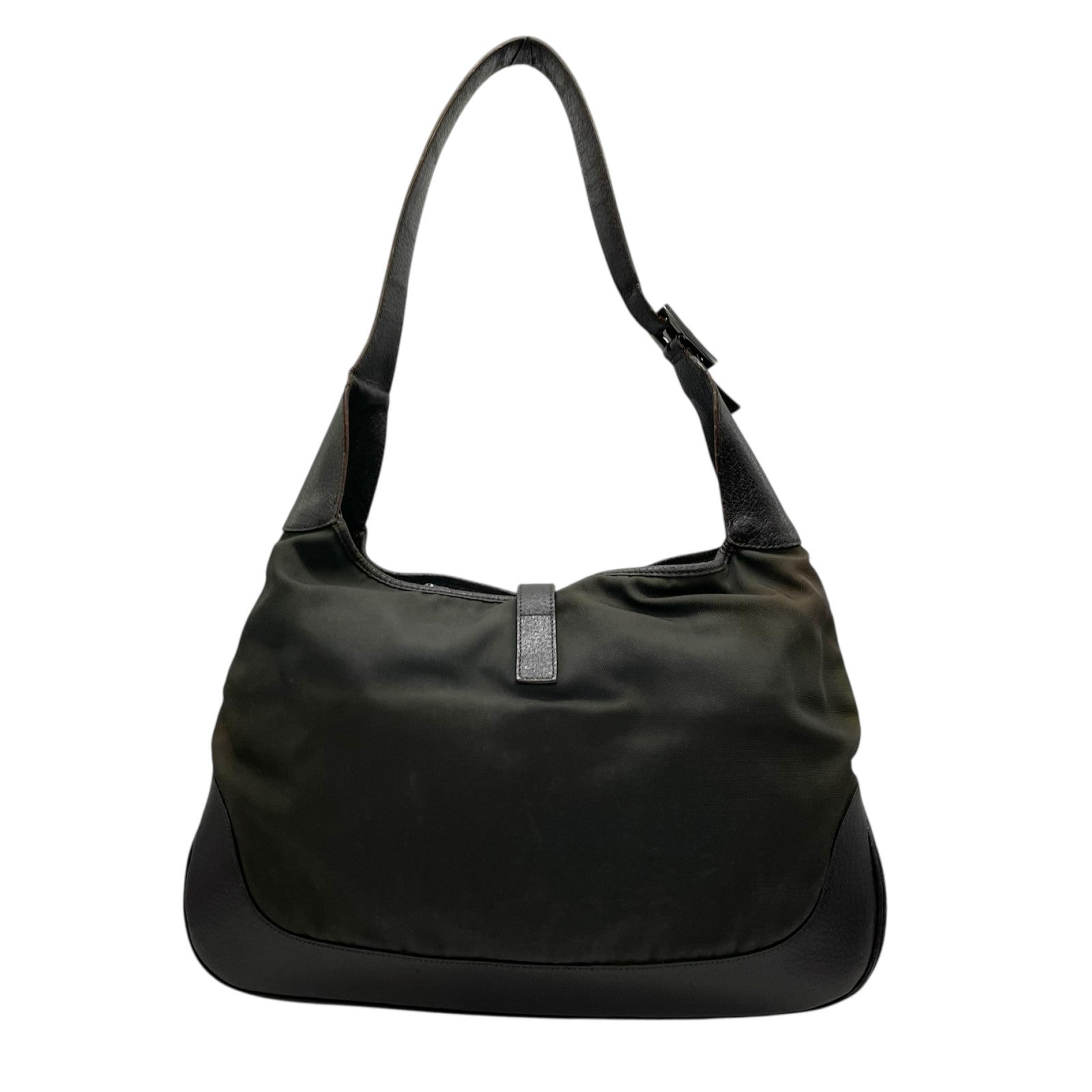 GUCCI グッチ ジャッキー ワンショルダーバッグ カーキ 茶 ブラウン キャンバス レザー シルバー金具 肩掛け可 ホーボー レディース ヴィンテージ B4