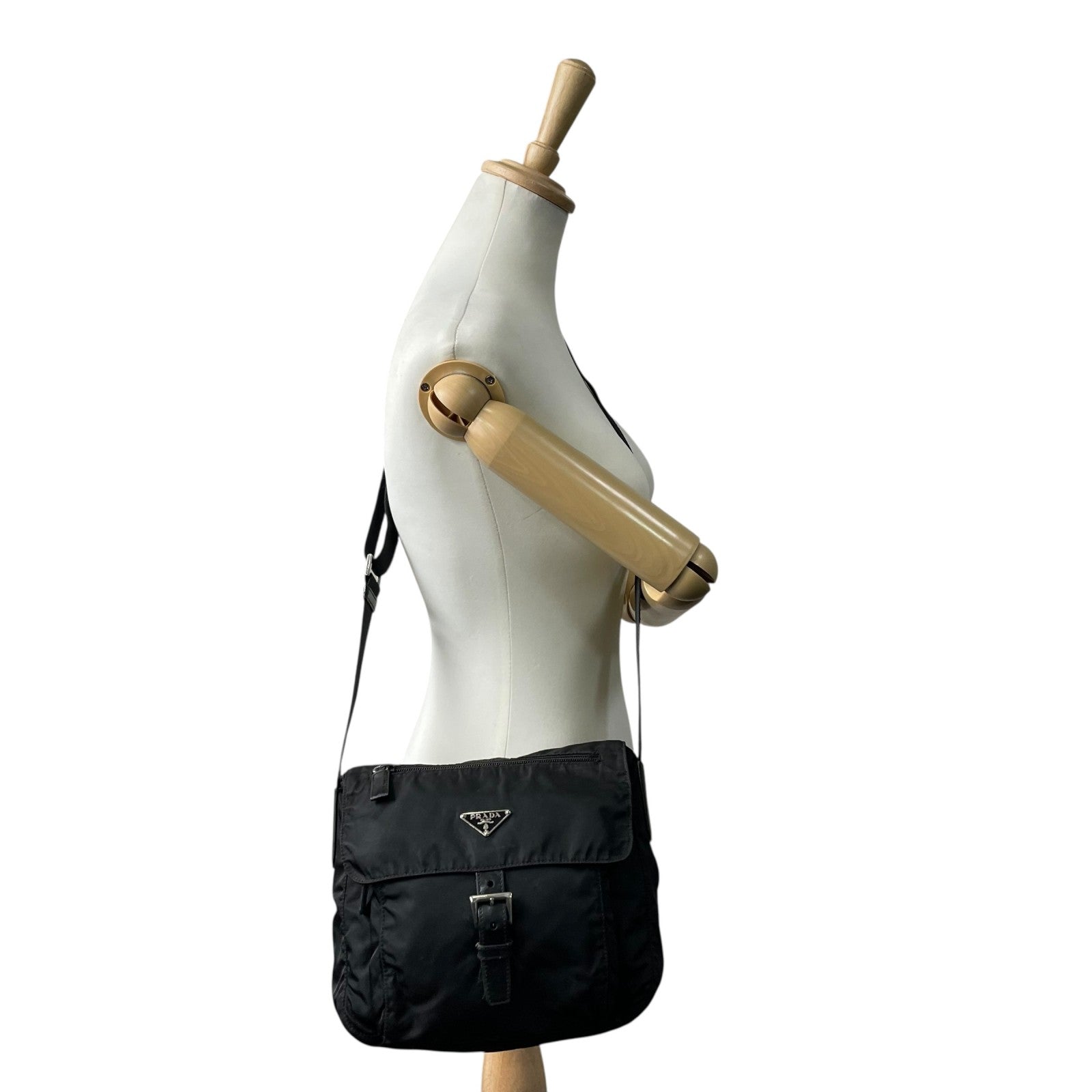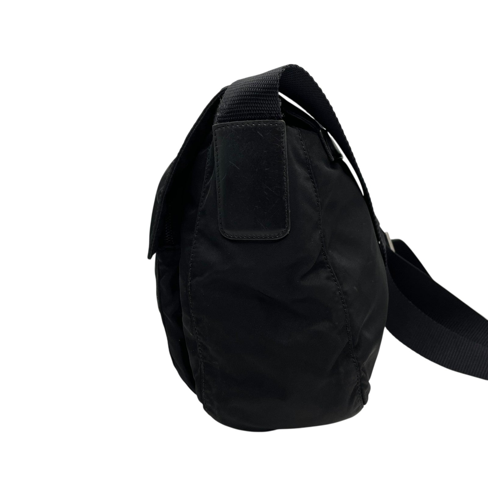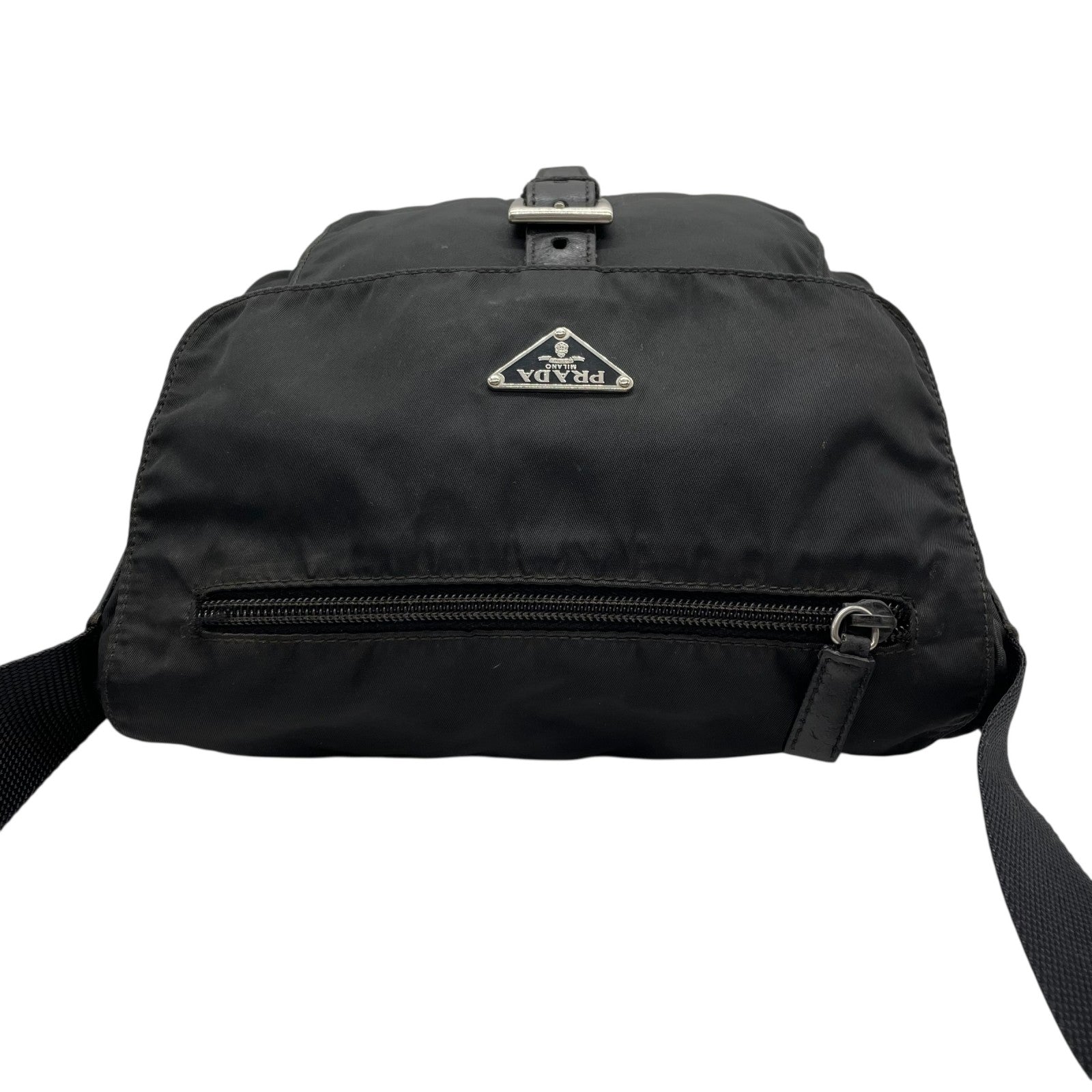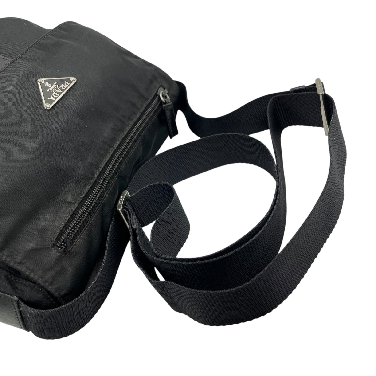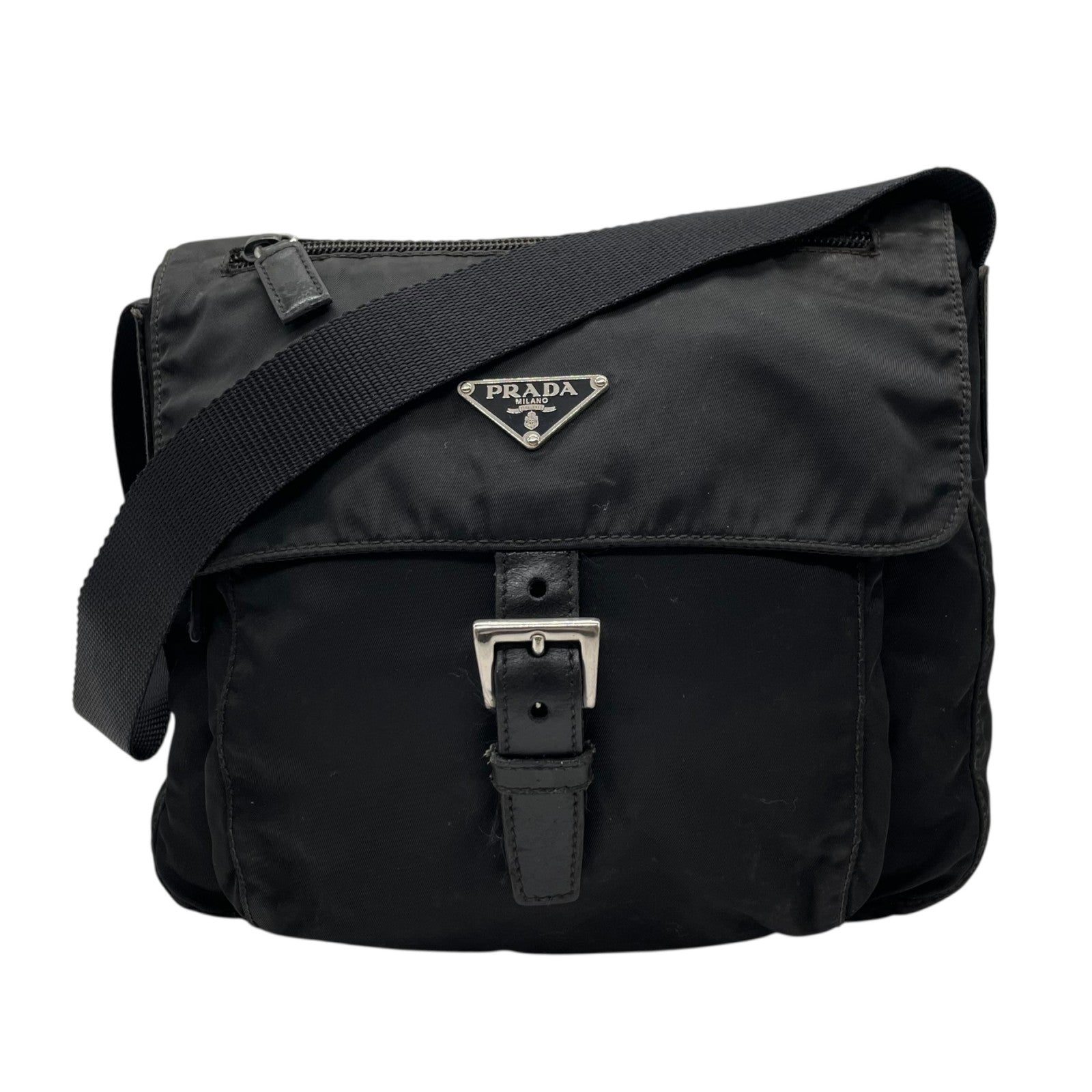 PRADA プラダ ショルダーバッグ 黒 ブラック NERO ナイロン レザー シルバー金具 三角ロゴ 斜め掛け メンズ レディース B3