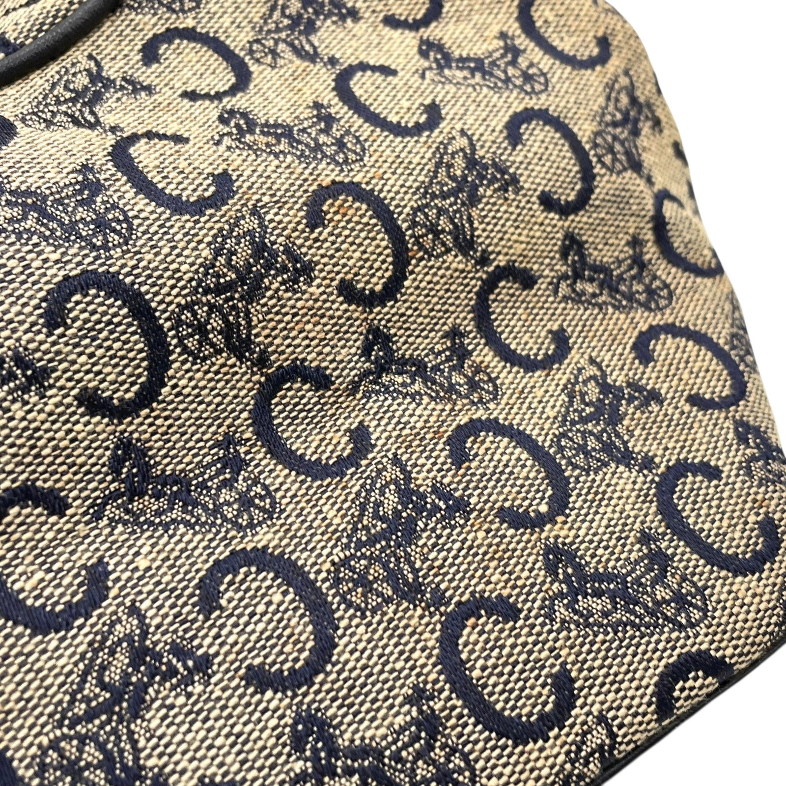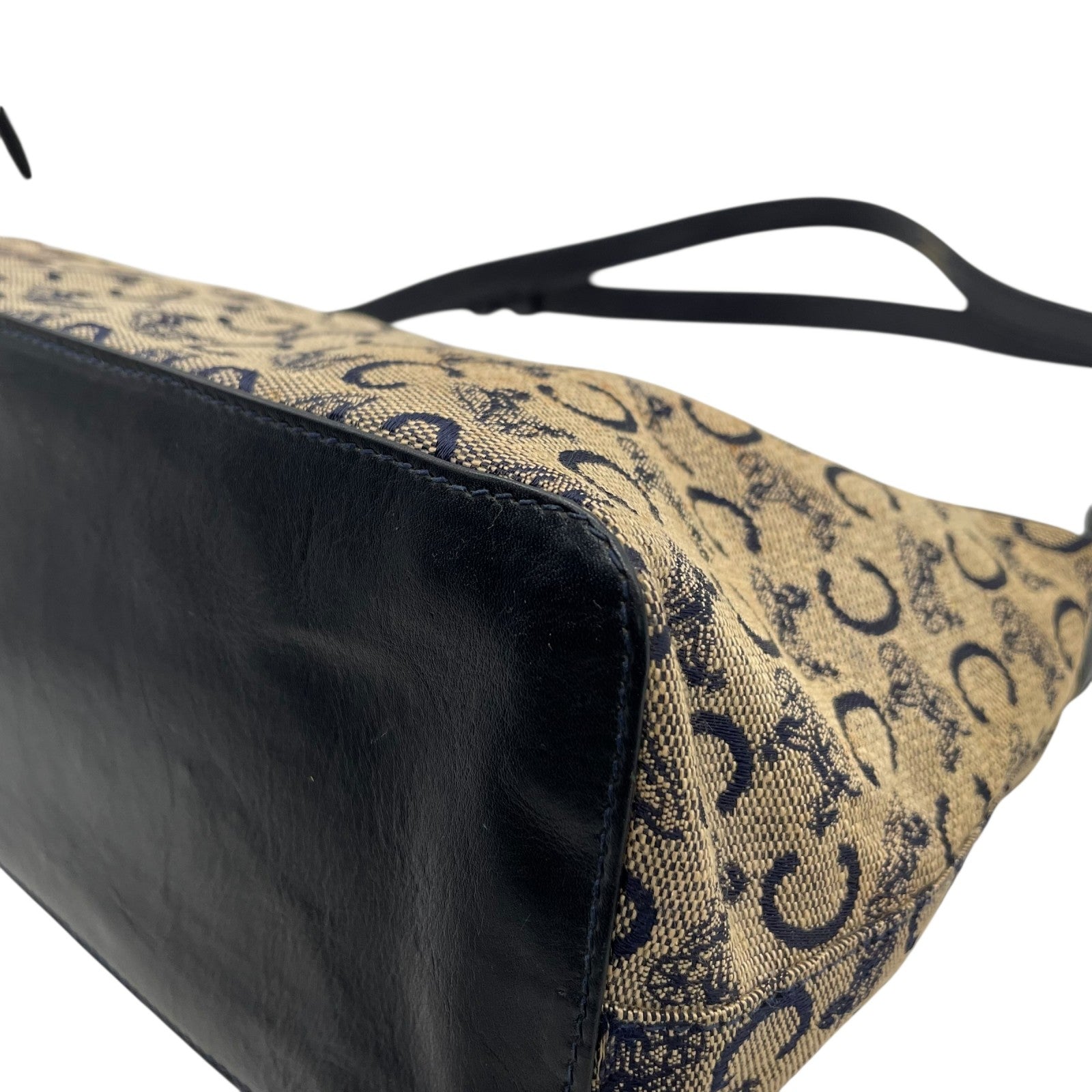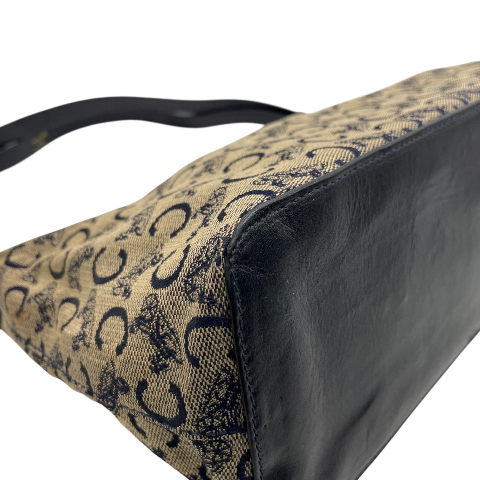CELINE Macadam Triomphe Shoulder Bag, Canvas and Leather, Beige and Black, Women's Vintage Hobo Bag, Authentic