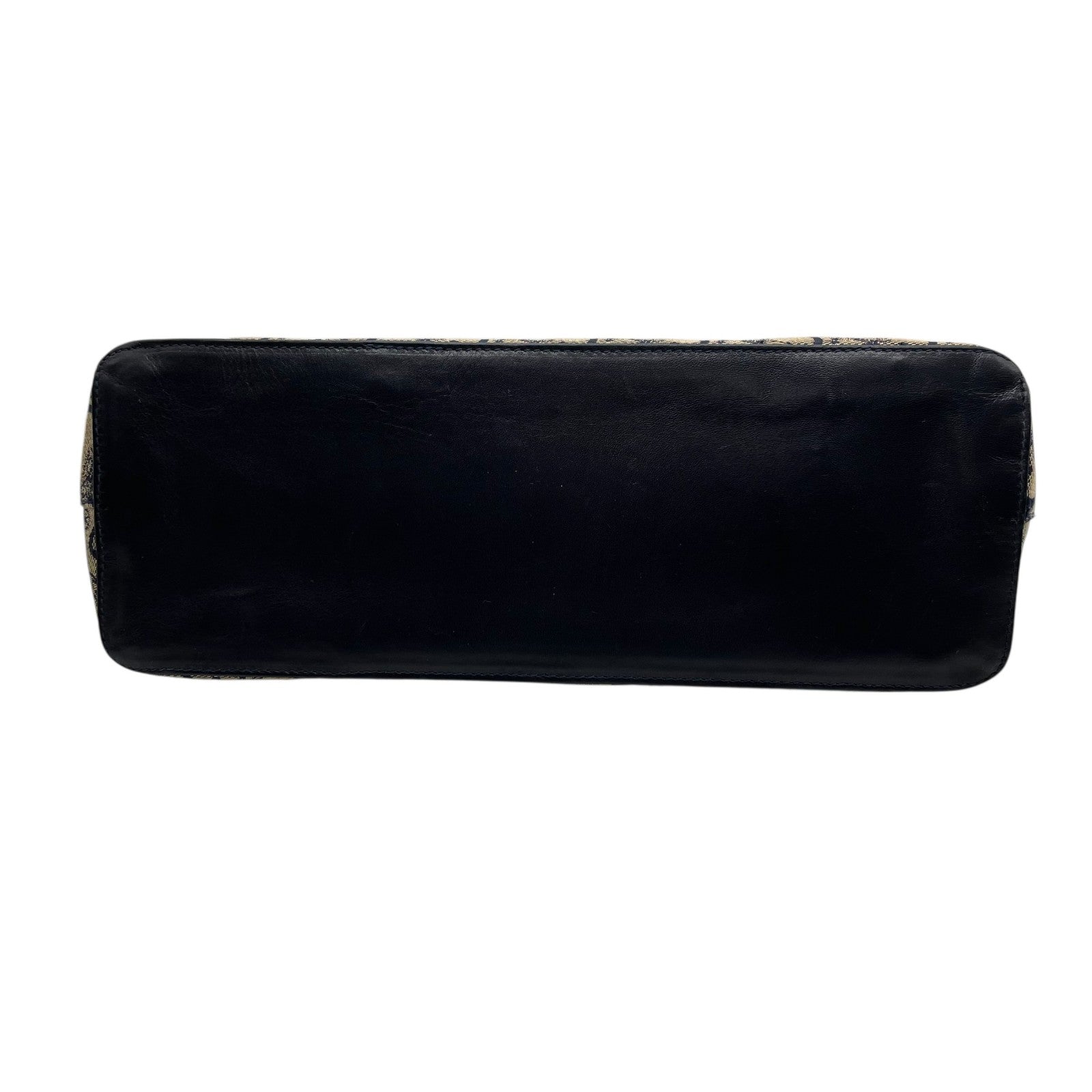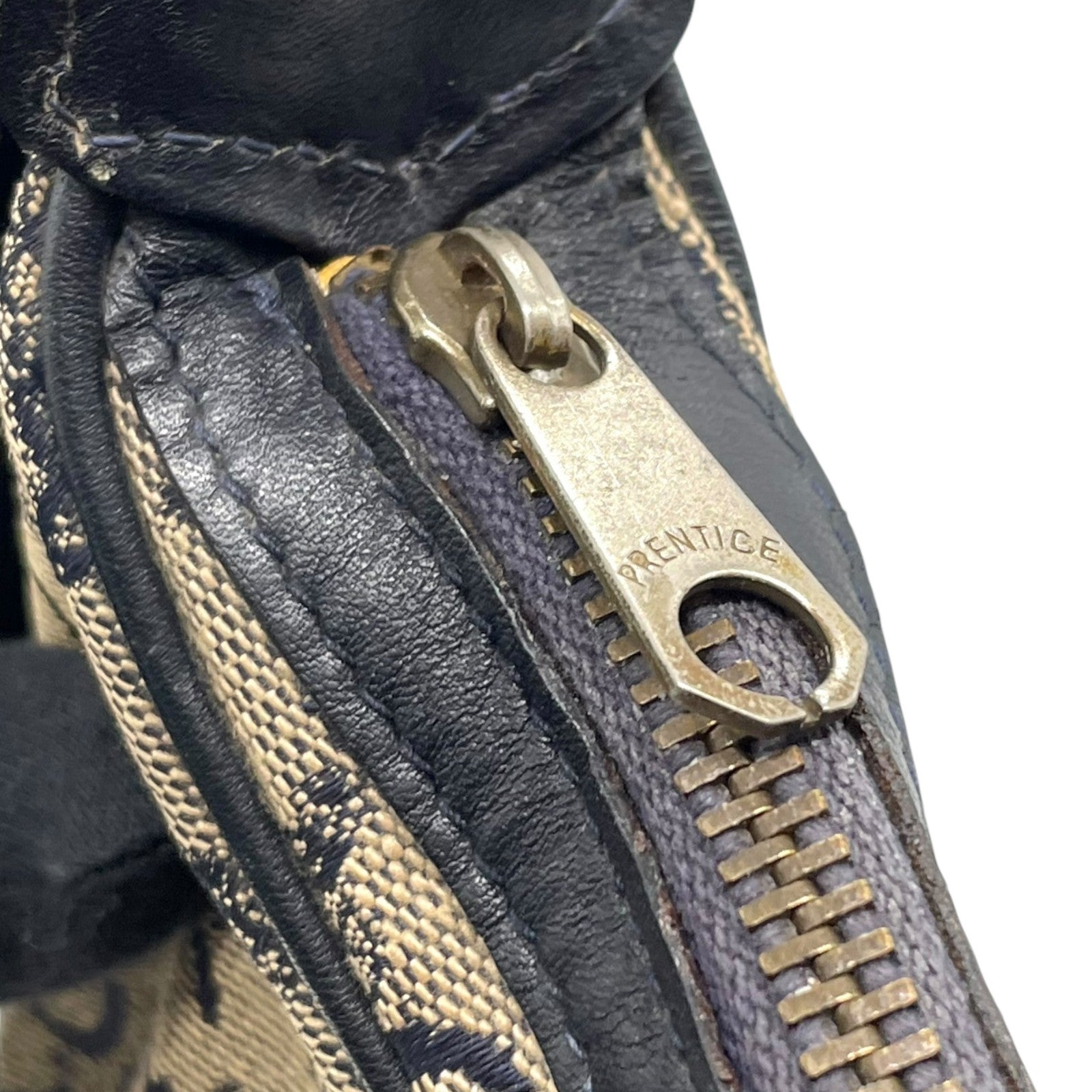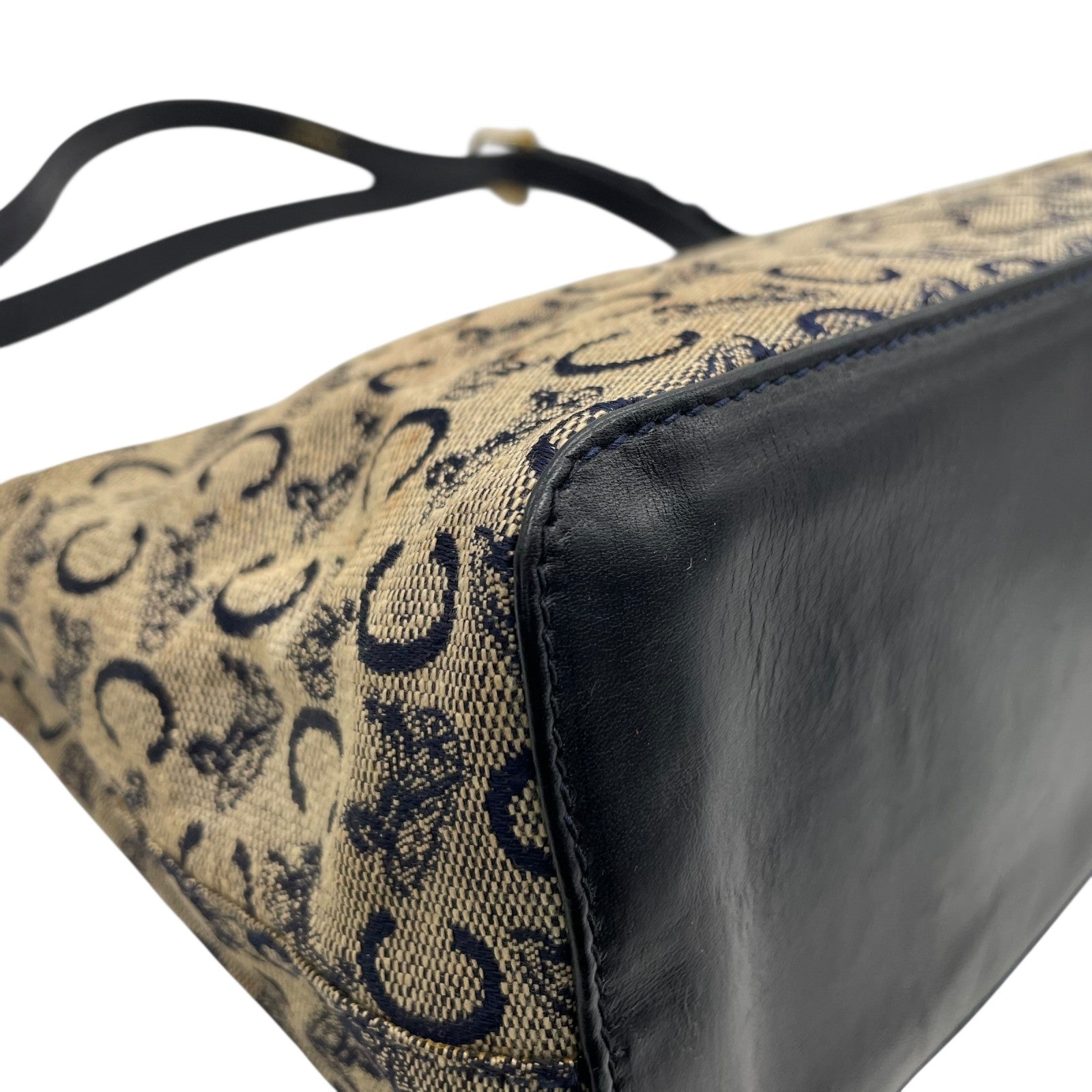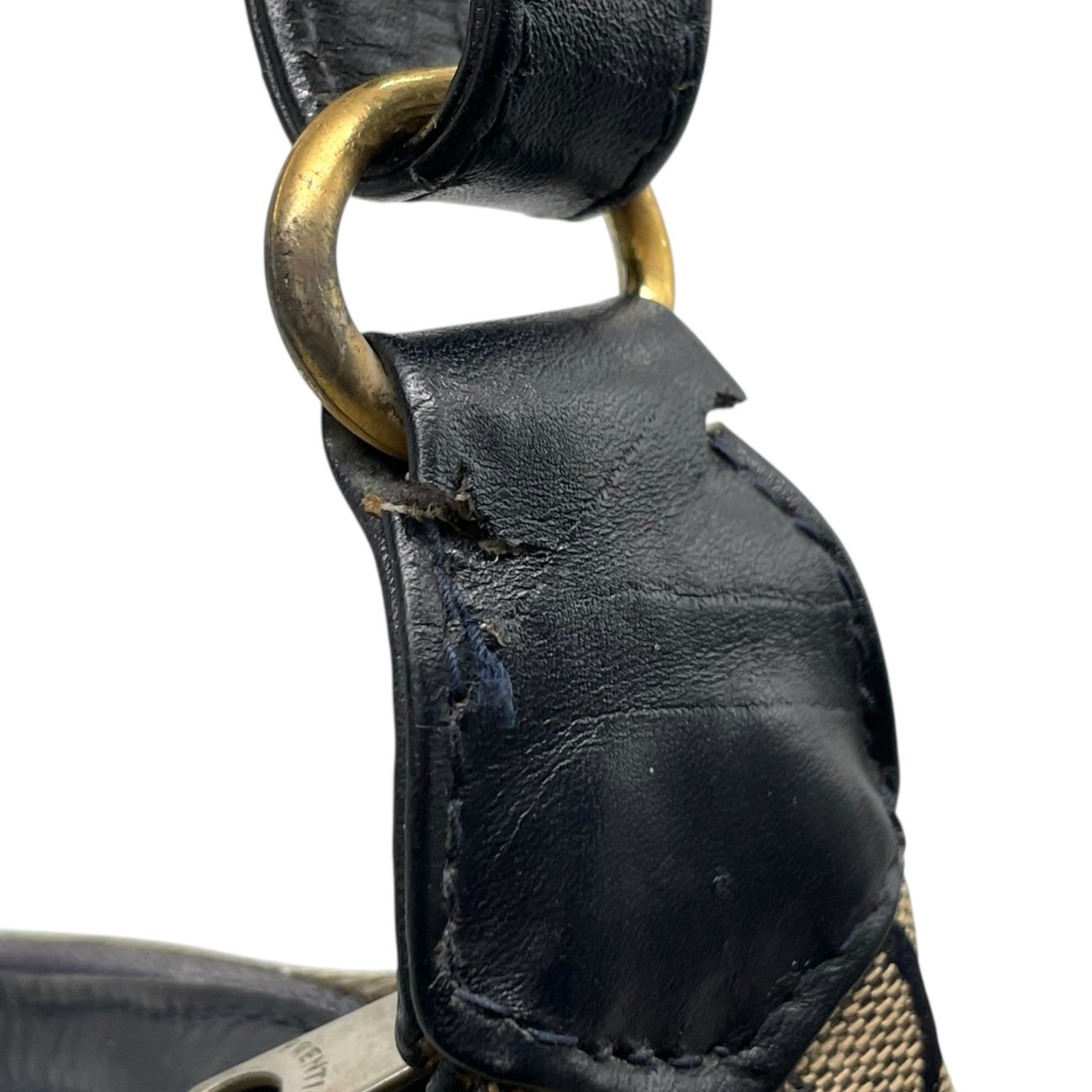CELINE Macadam Triomphe Shoulder Bag, Canvas and Leather, Beige and Black, Women's Vintage Hobo Bag, Authentic