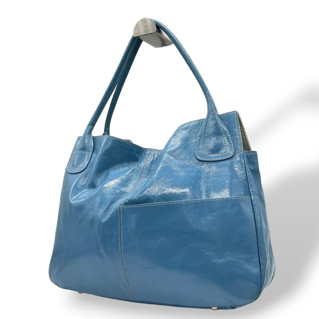 ハマノ トートバッグ 青 ブルー A4収納可 ワンショルダー レザー 本革 ハンドバッグ 自立可 肩掛け可 肩かけ可 ロゴプレート 上品 HAMANO T2