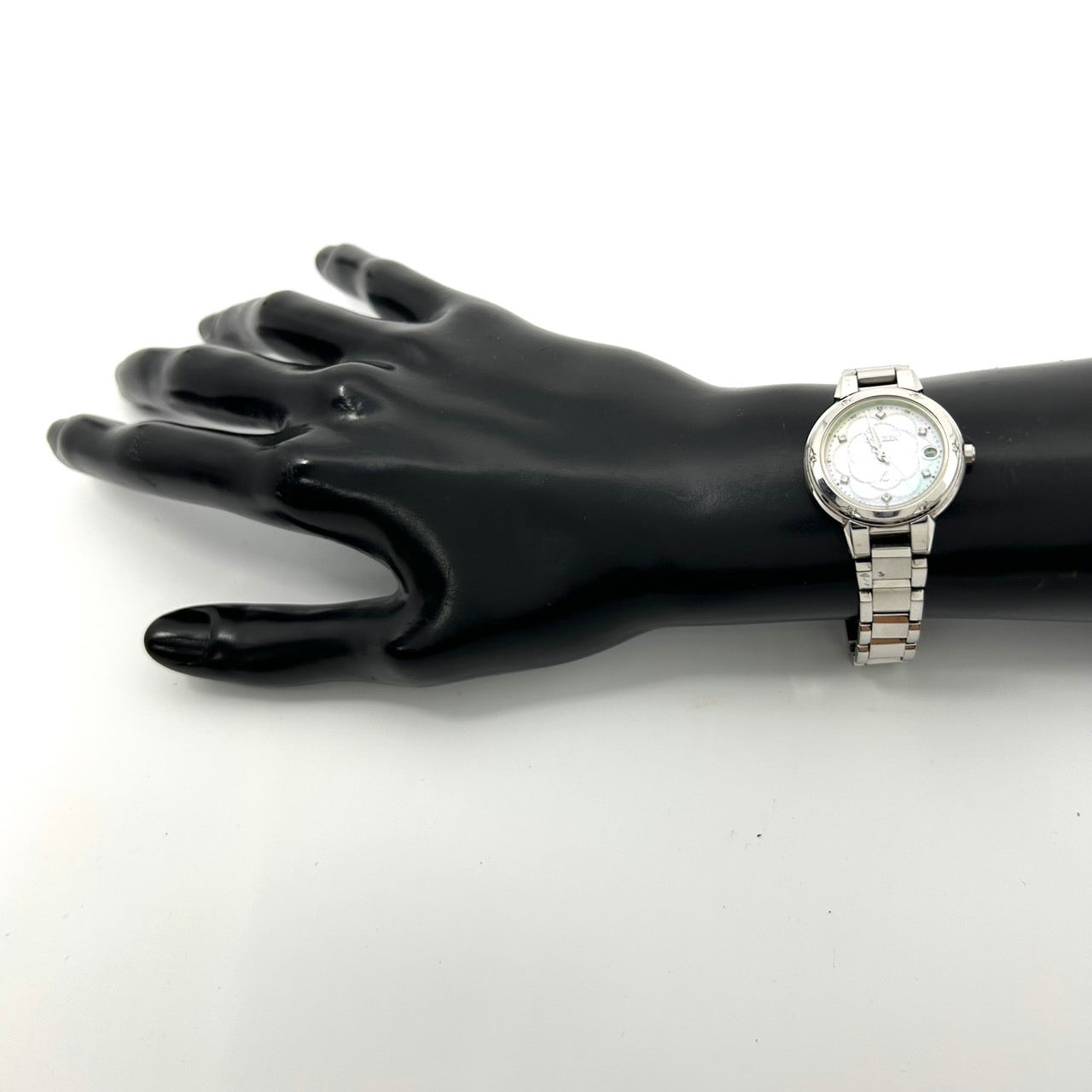 Citizen XC Limited Edition Women's Watch H058-T017011TA, Solar-Powered Eco Drive, Radio-Controlled, Diamond-Plated Shell Dial, Silver Analog Date Display, 10 ATM Water Resistance, Elegant and Feminine, Cleaned.