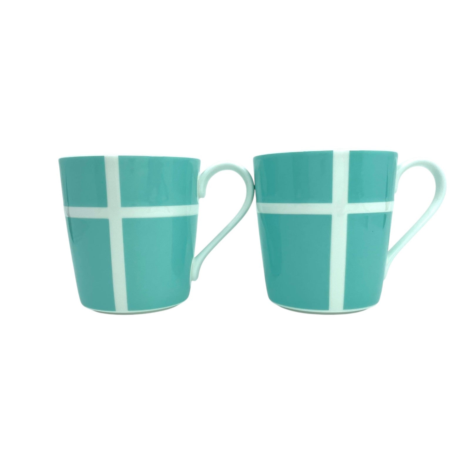 Unused TIFFANY & Co. Blue Box Ribbon Pair Mugs, Bone China, Gift Set with Box, Tableware, CT