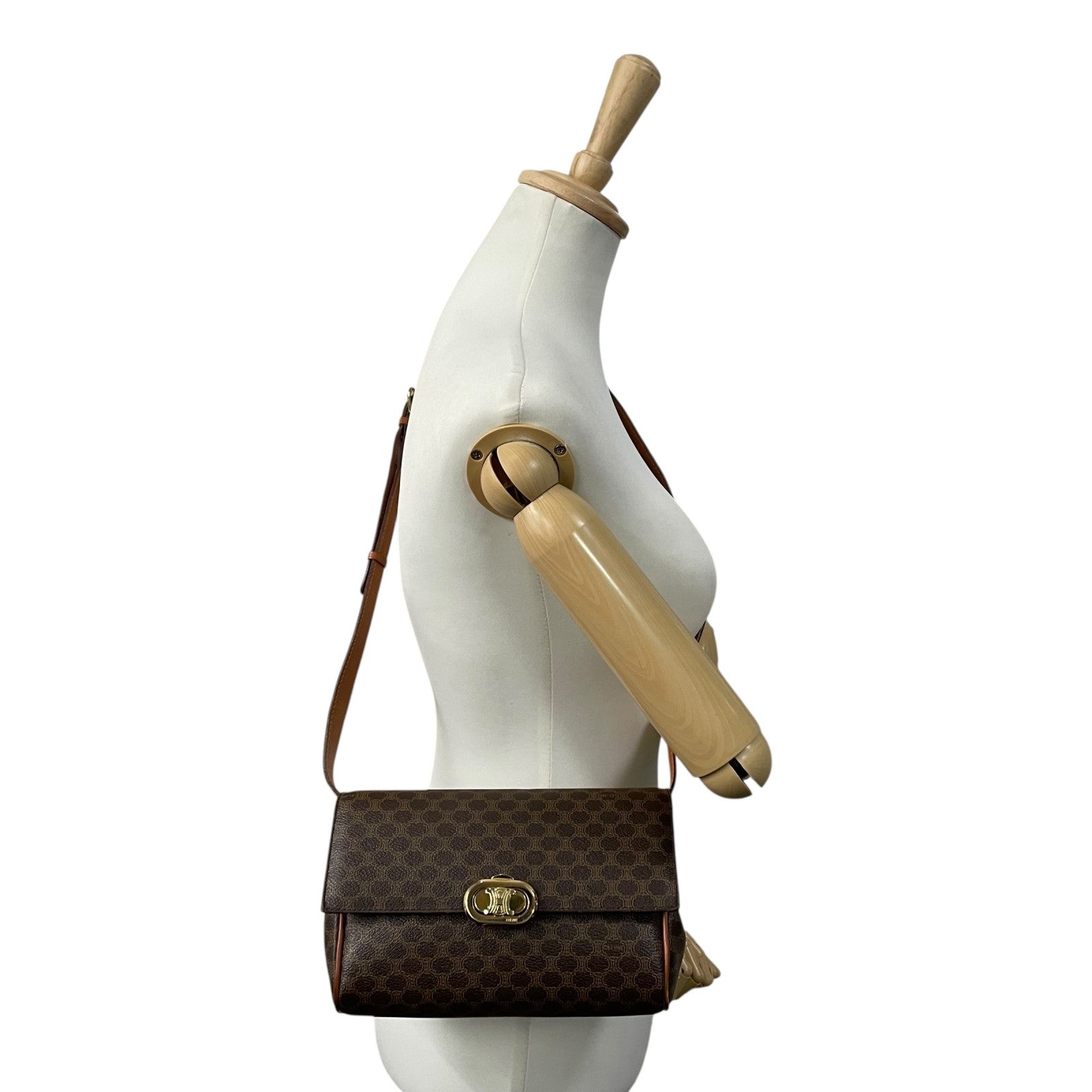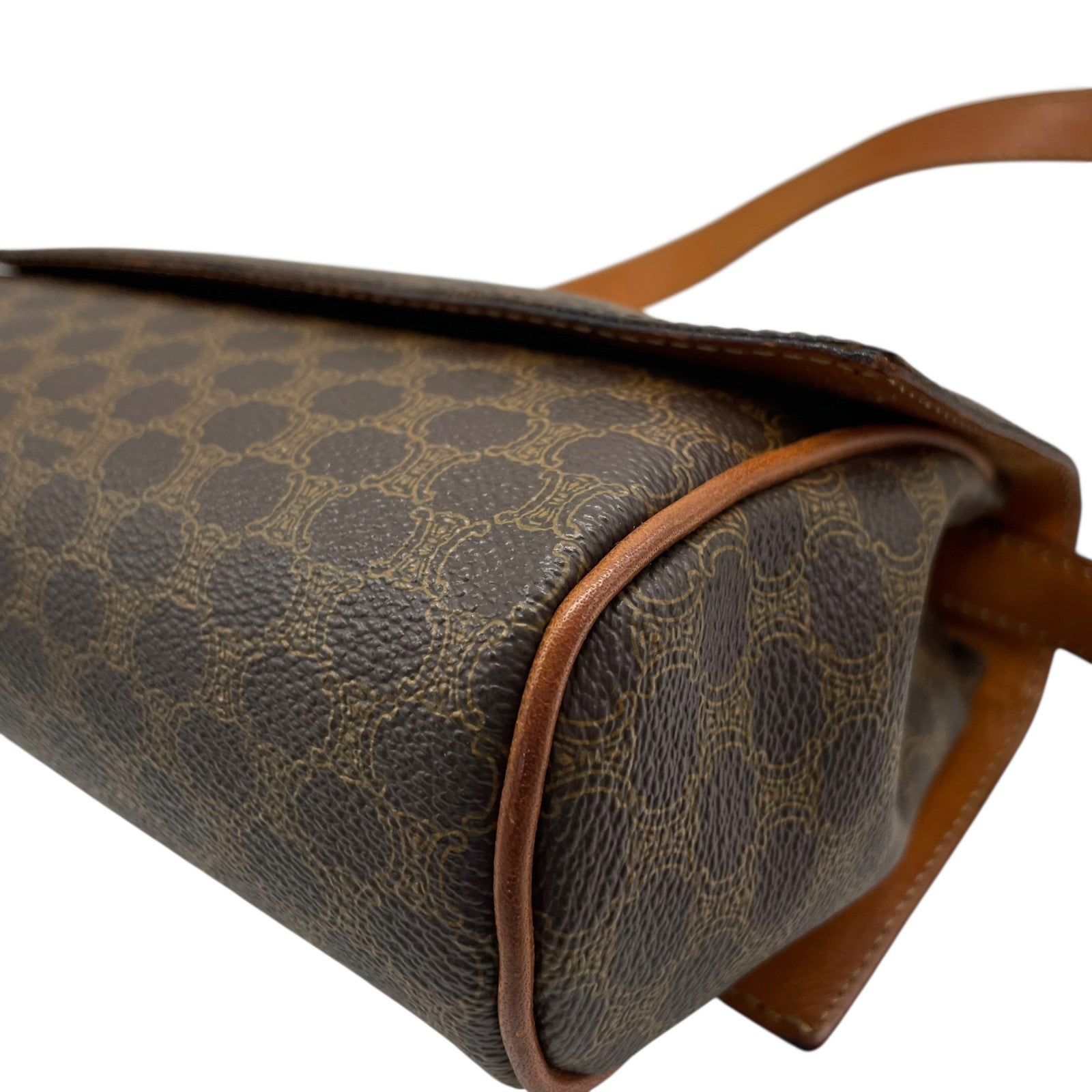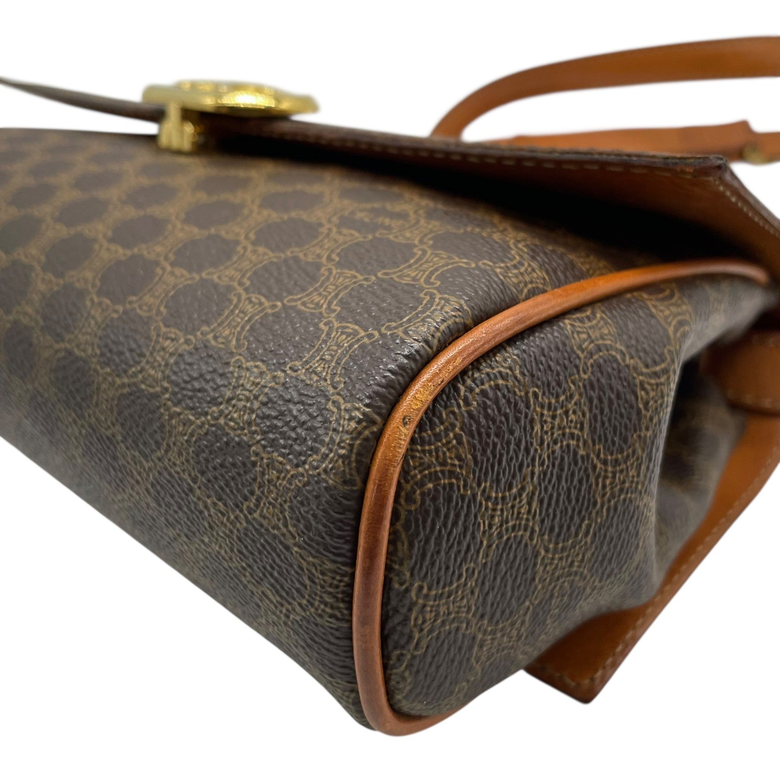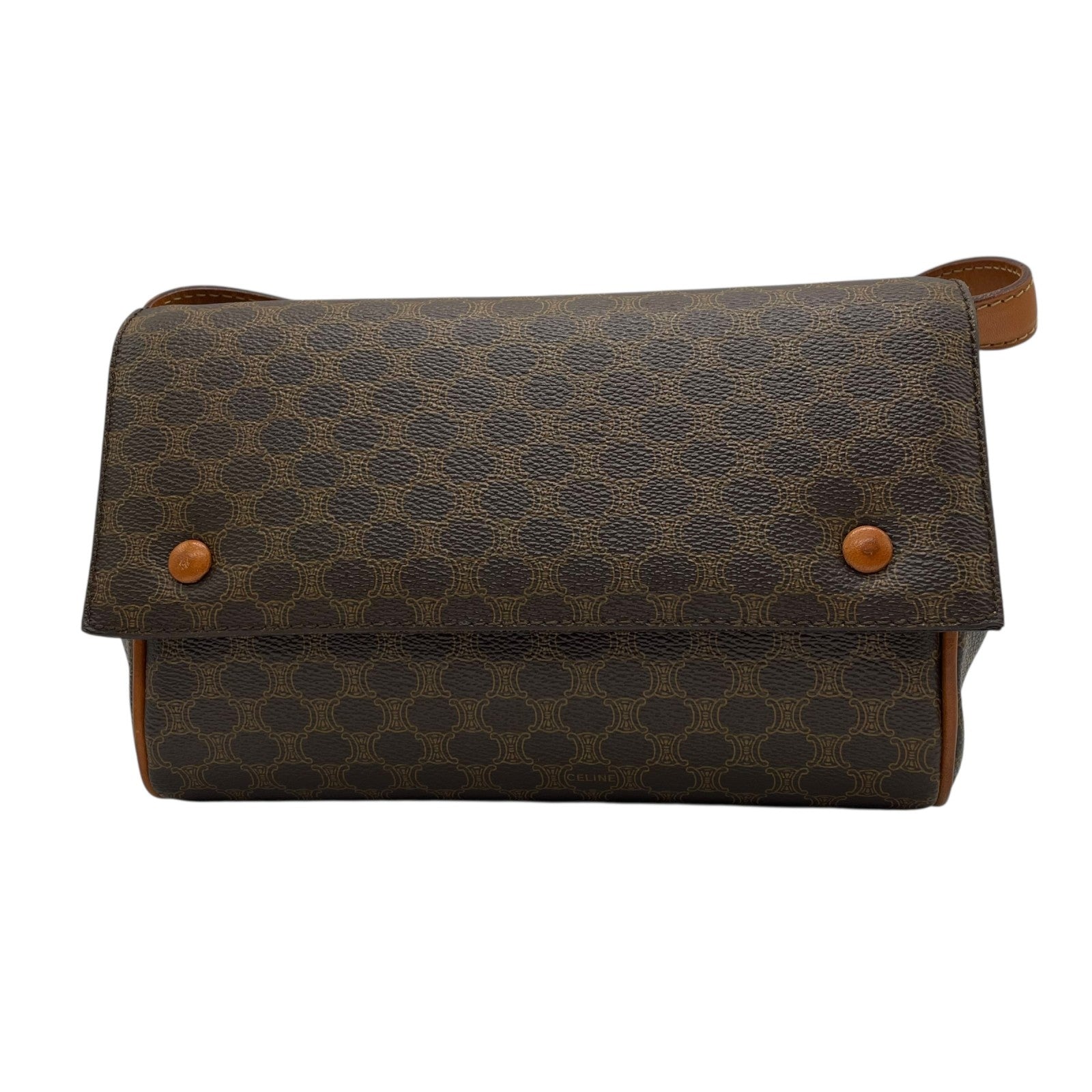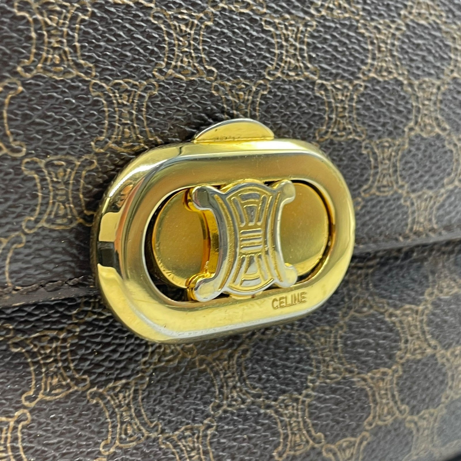 Authentic Old CELINE Macadam Shoulder Bag Brown PVC Leather Logo Vintage Crossbody