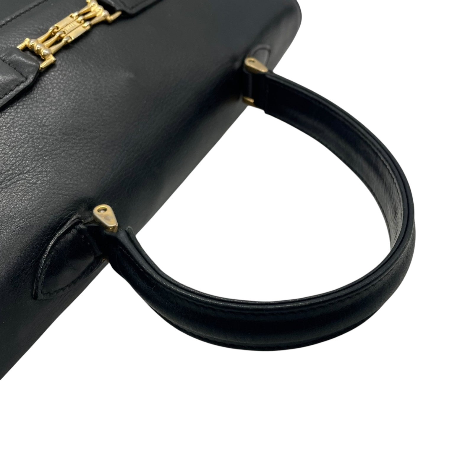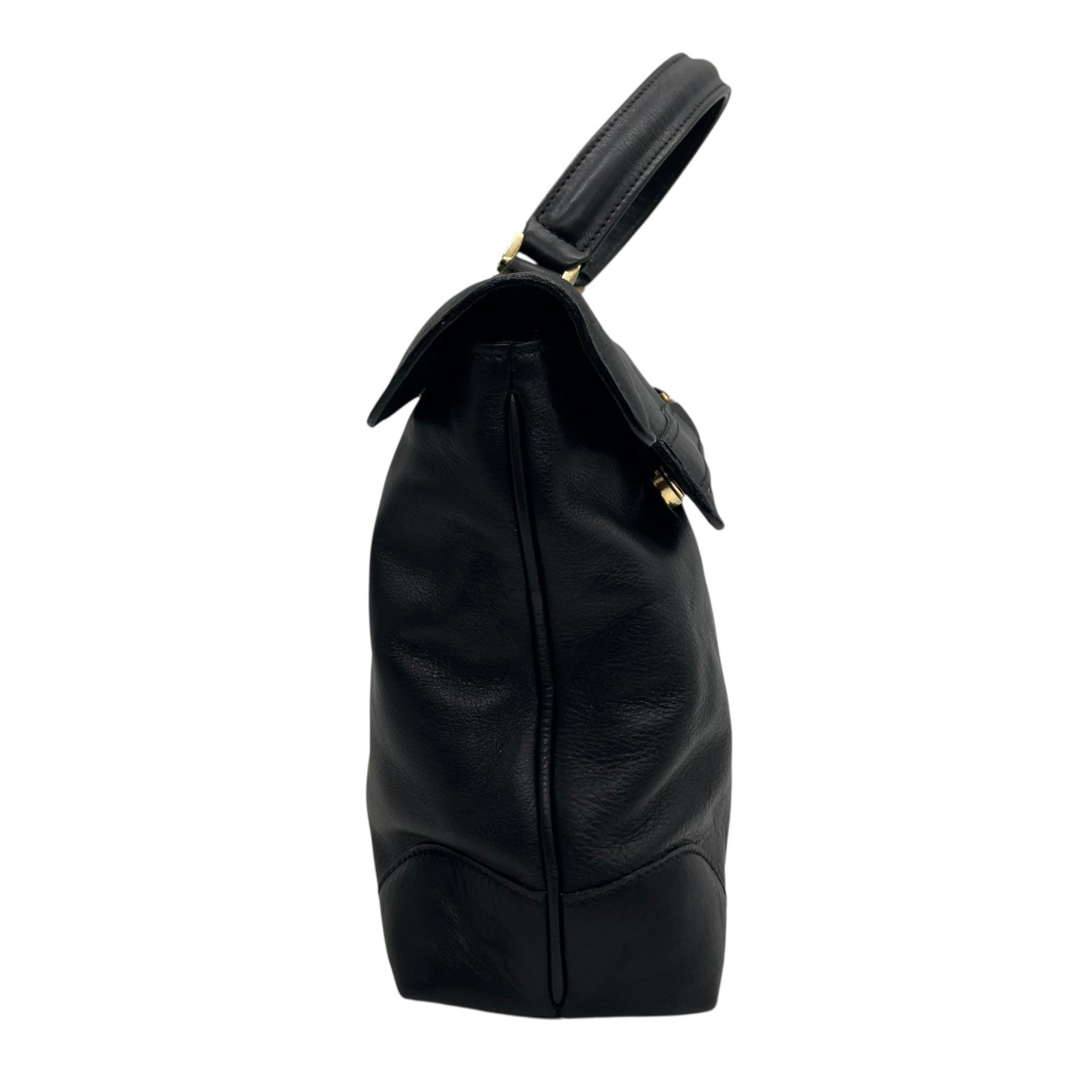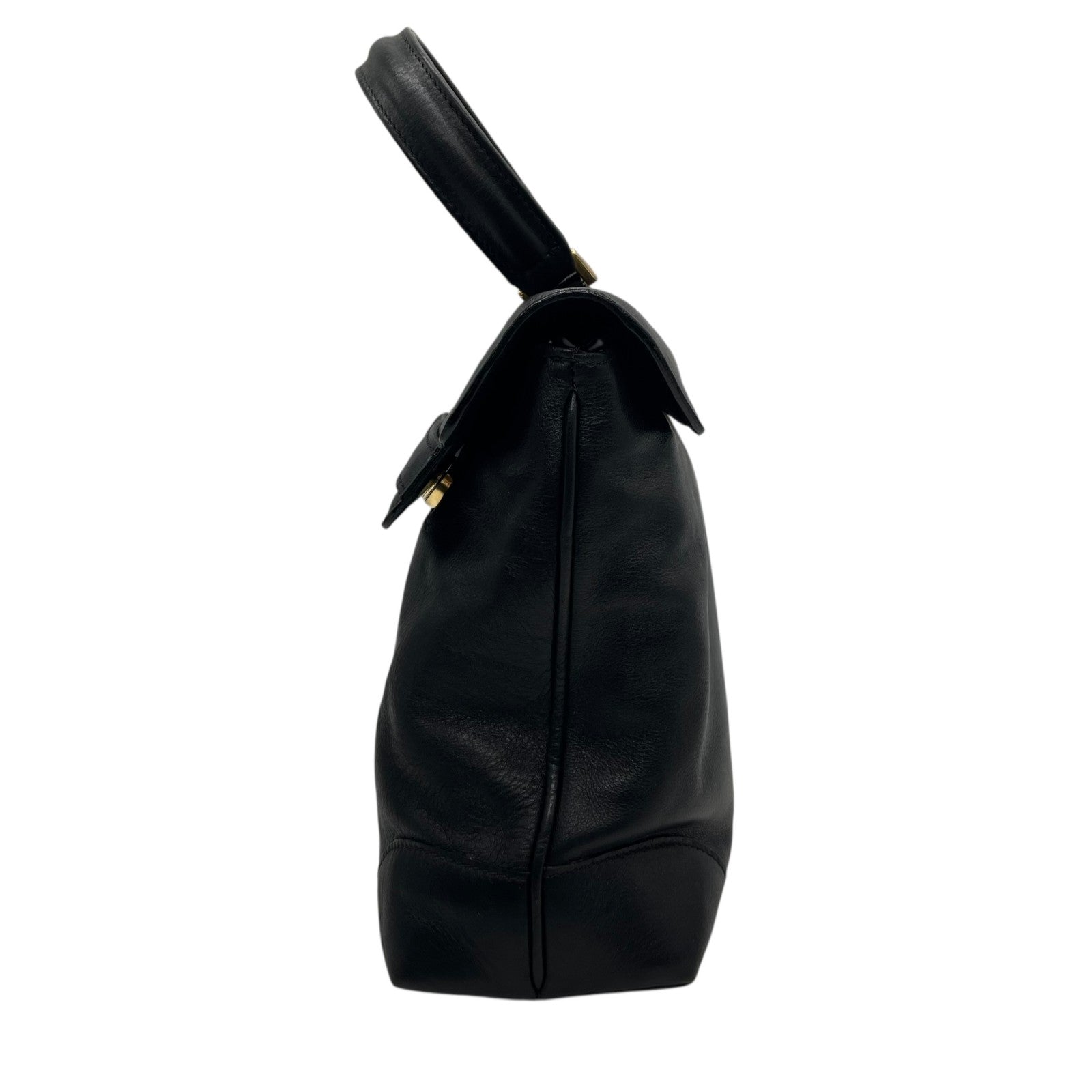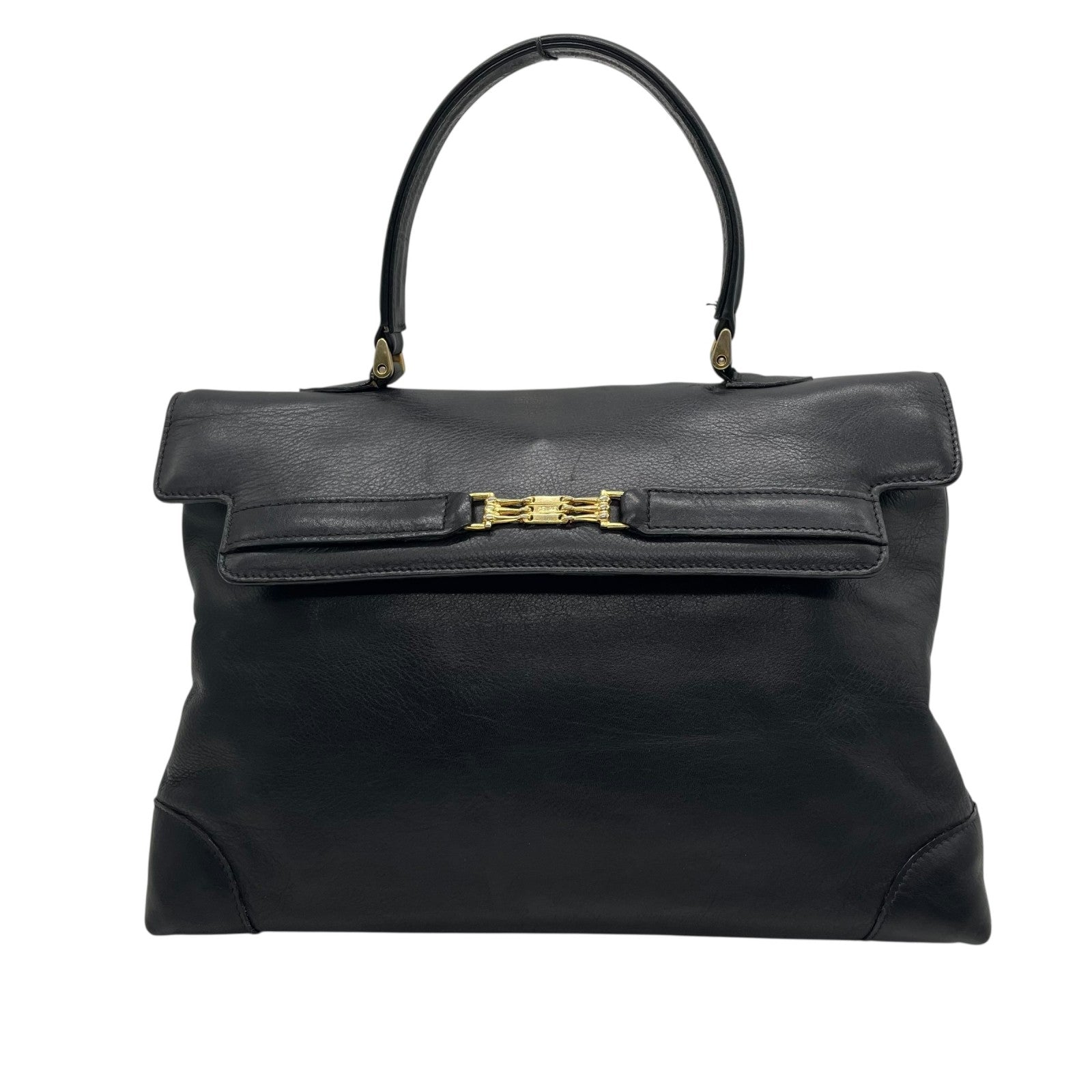 Authentic CELINE Black Leather Vintage Retro Handbag Gold Hardware Belt Design Old Celine Women Formal Bag