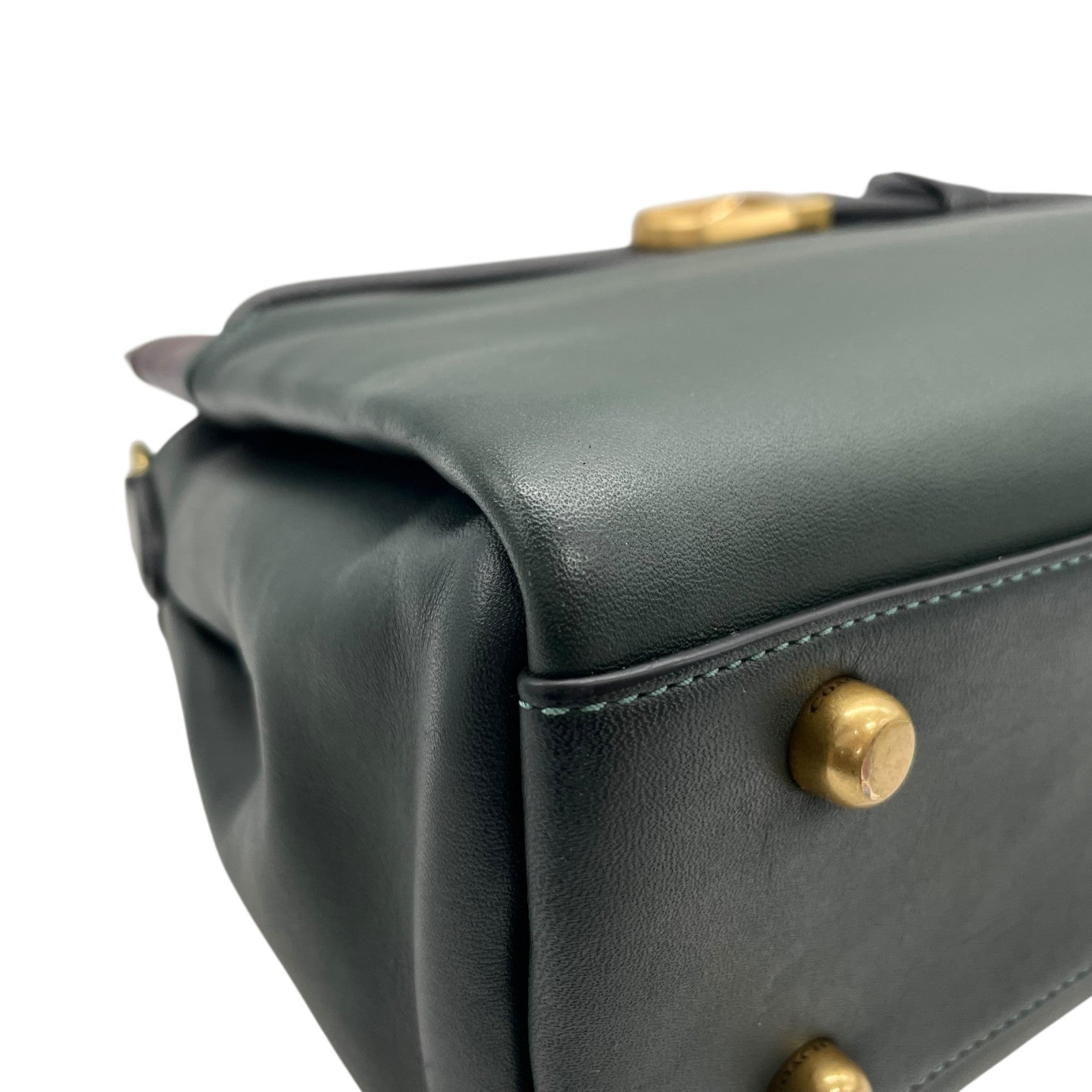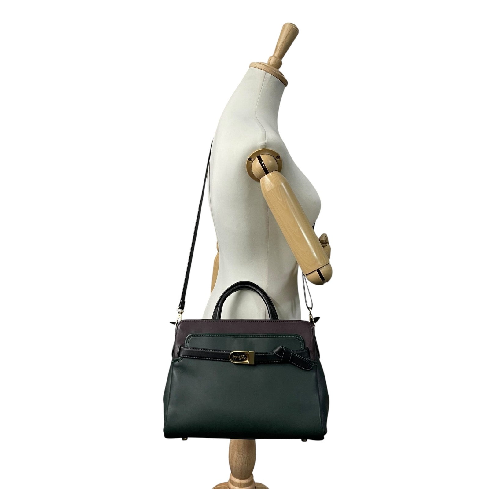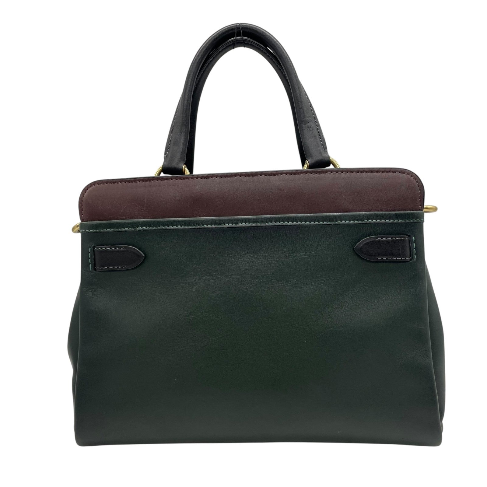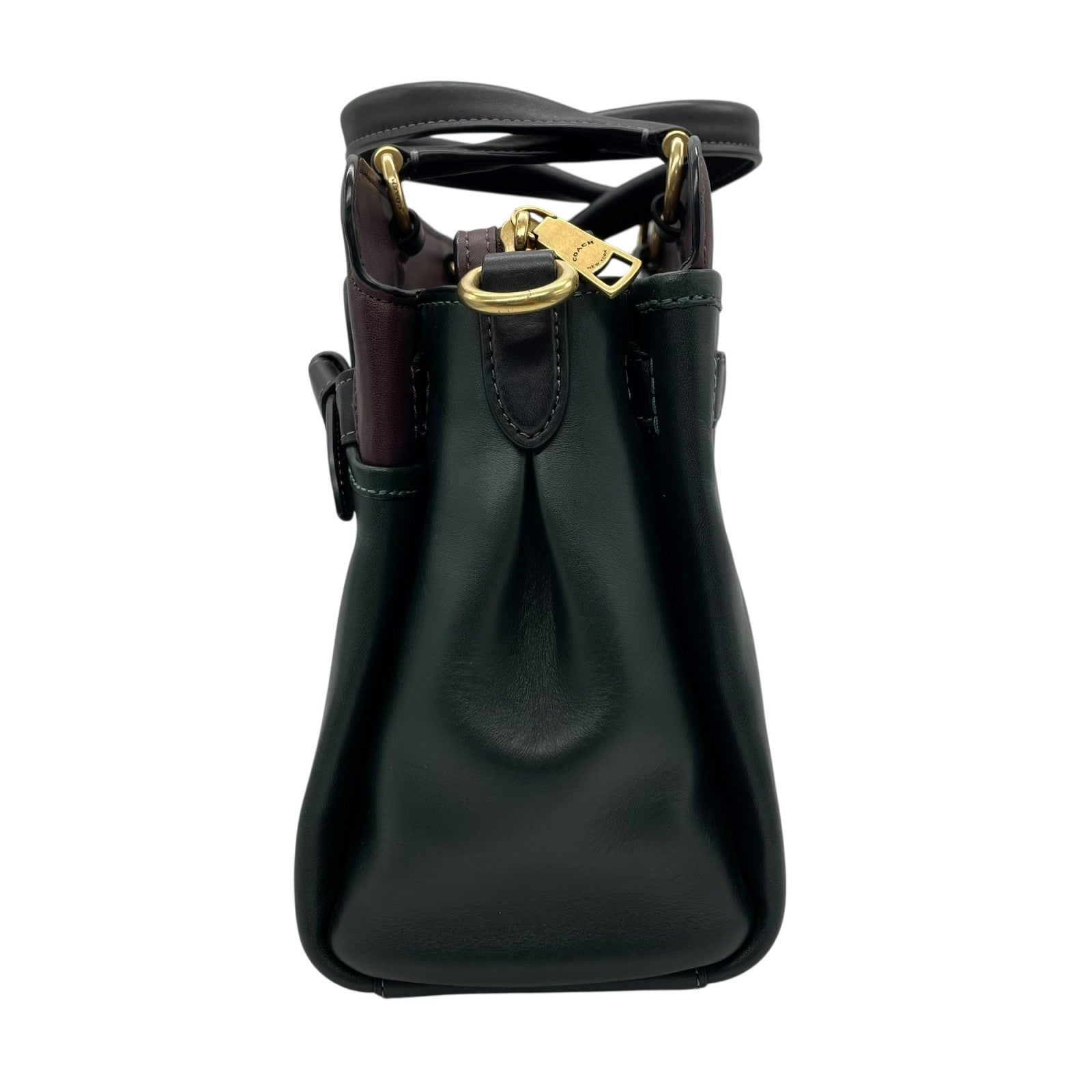 Excellent condition Coach Tate Carryall 2-way handbag/shoulder bag in dark green and black leather with gold metal horse logo. Can be worn crossbody. Women's size C.