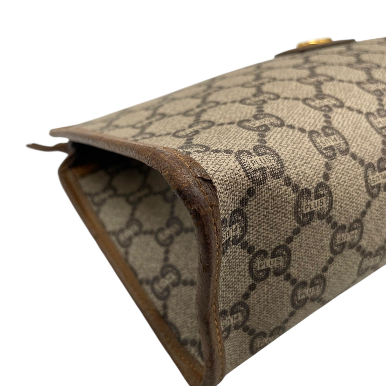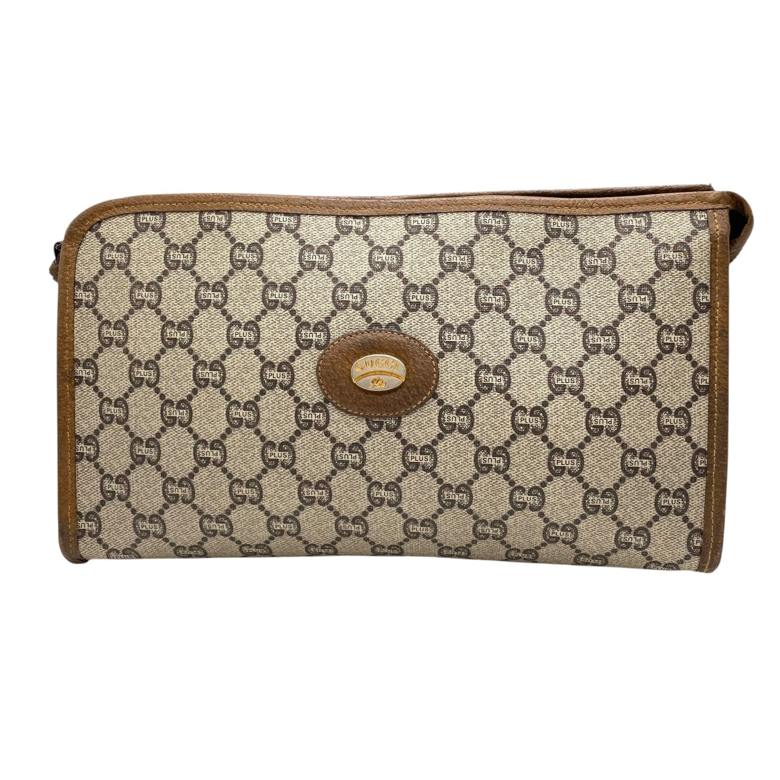 GUCCI グッチ GGプラス グッチプラス クラッチバッグ セカンドバッグ グレー ベージュ PVC レザー ゴールド金具 オールドグッチ ヴィンテージ メンズ レディース K11