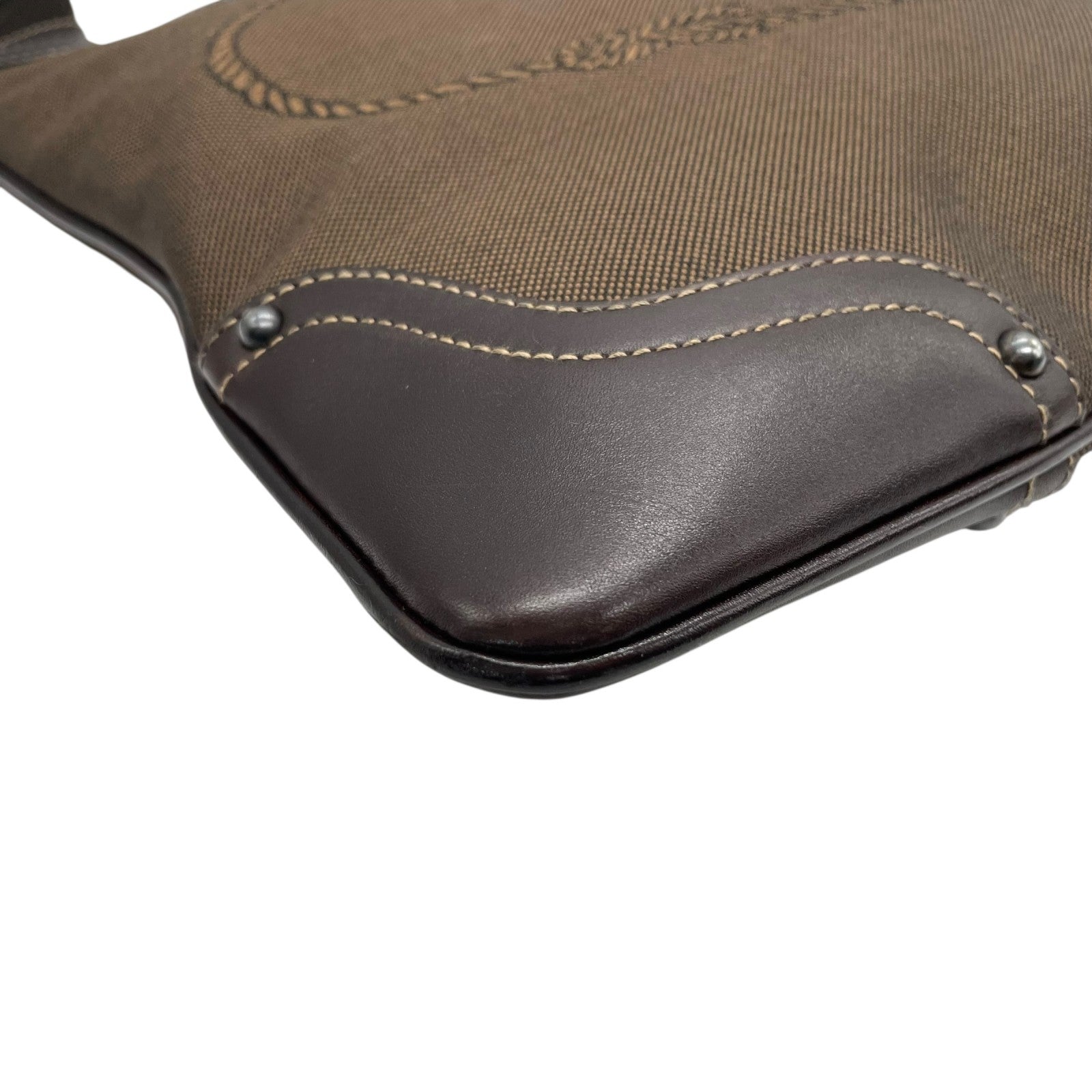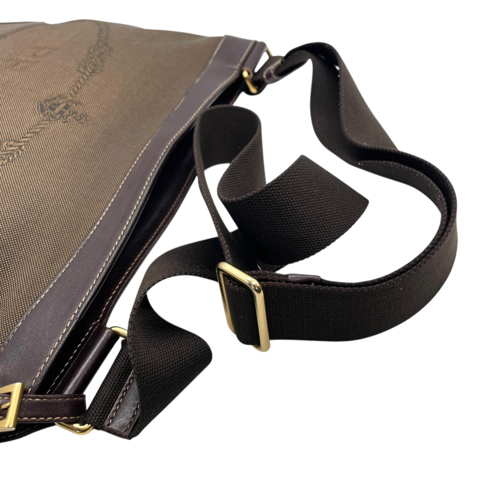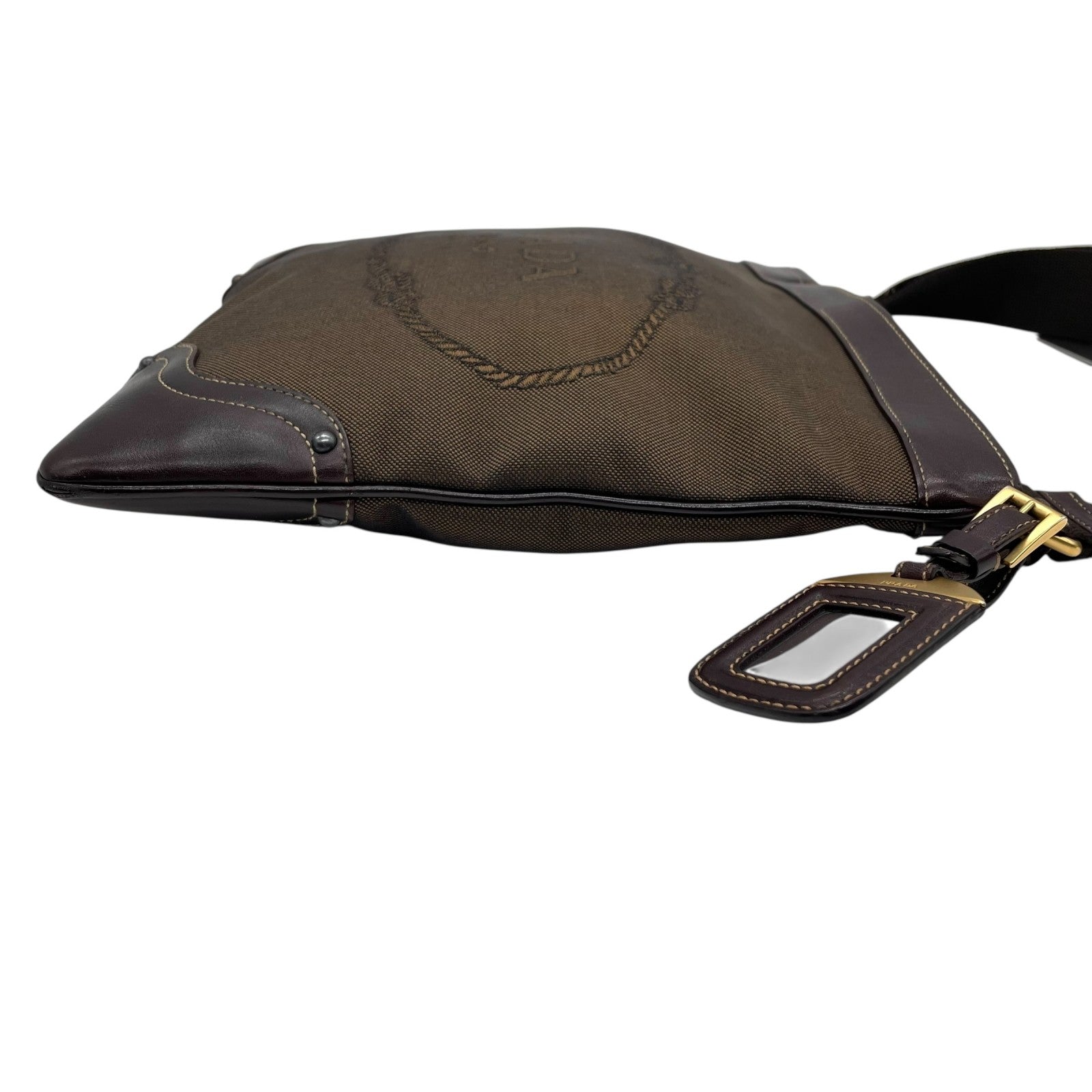 Authentic PRADA Logo Jacquard Large Logo Canvas Leather Shoulder Bag Brown Crossbody Women